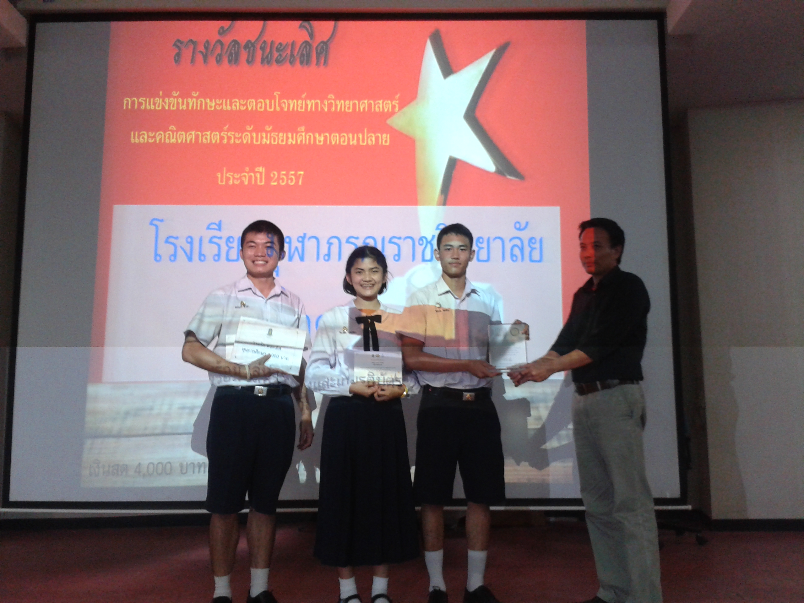 สรุปผลการแข่งขันกิจกรรมวันวิทยาศาสตร์ กลุ่มสาระการเรียนรู้วิทยาศาสตร์ และคณิตศาสตร์ โรงเรียนจุฬาภรณราชวิทยาลัย มุกดาหาร ระหว่างวันที่ 18 – 22 สิงหาคม 2557