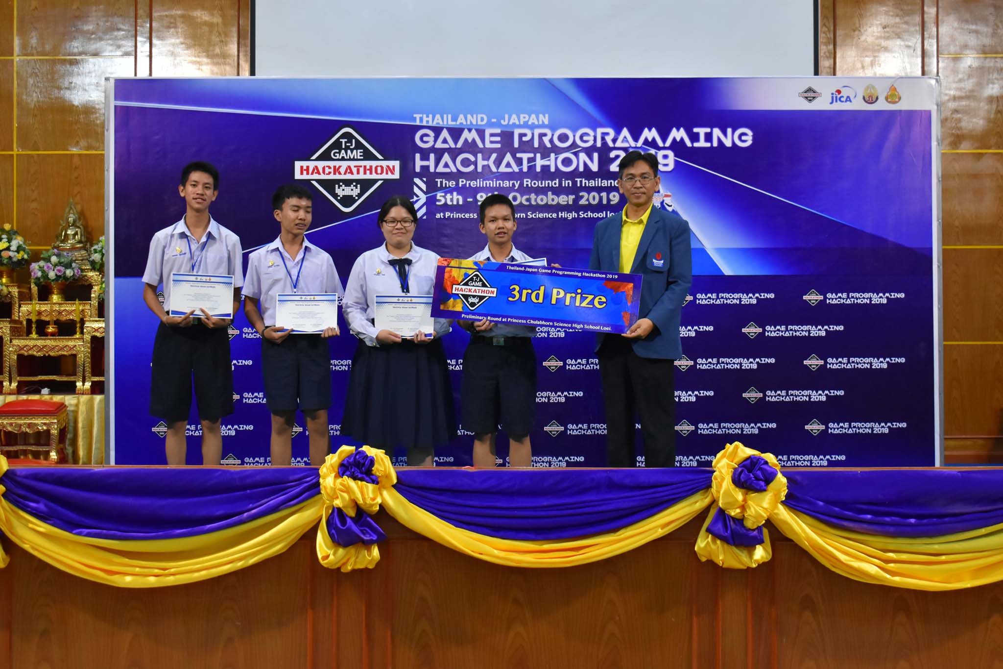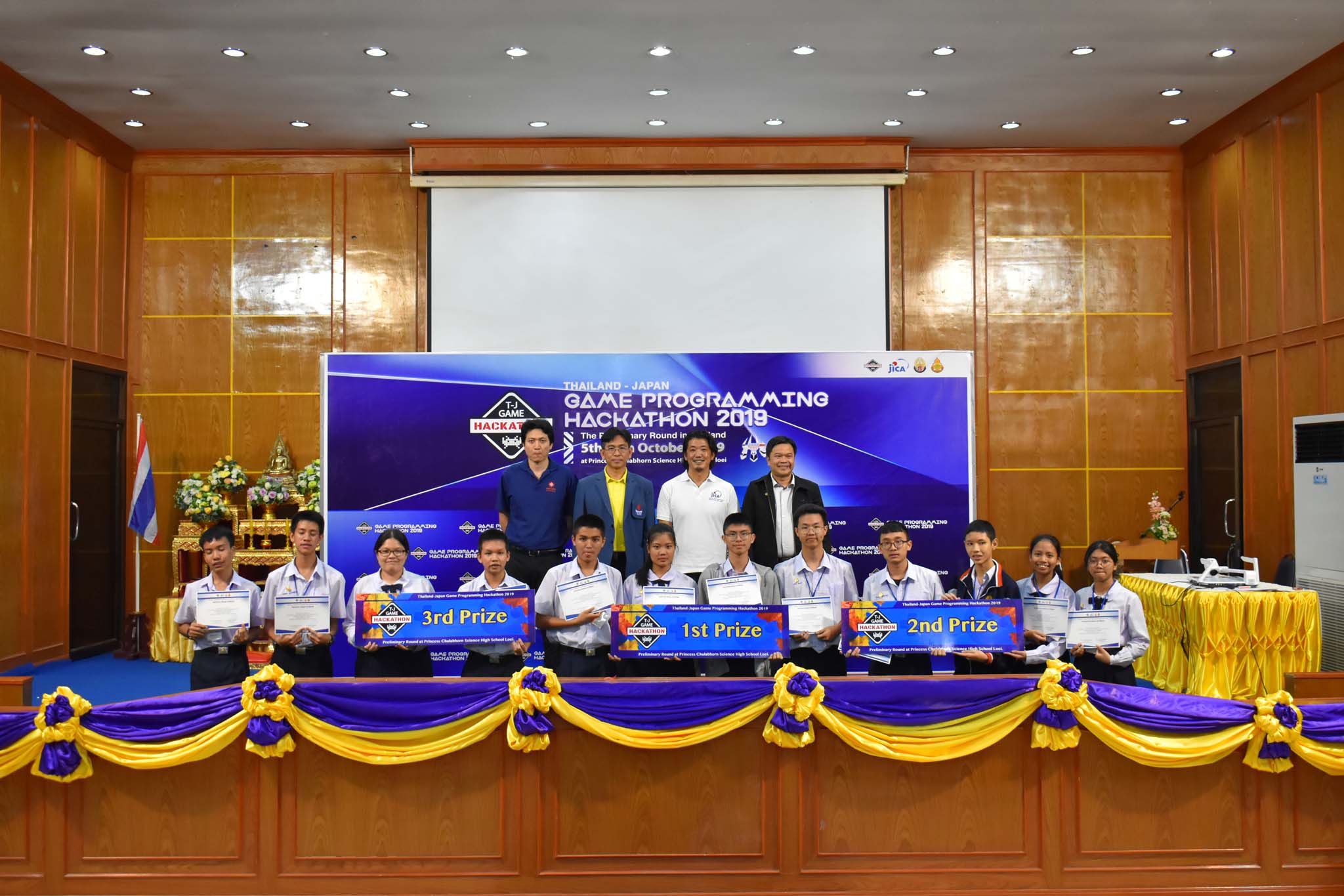 ขอแสดงความยินดีกับนักเรียนที่ได้รับรางวัลรองชนะเลิศอันดับที่ 2 นายมาฟีญวัชณ์ ทรงสมบูรณ์ นักเรียนชั้นมัธยมศึกษาปีที่ 4 ในการแข่งขันการออกแบบเกมส์ของนักเรียนโรงเรียนวิทยาศาสตร์จุฬาภรณราชวิทยาลัย ซึ่งเป็นการแข่งขันการออกแบบเกมส์โดยใช้โปรแกรม Unity สำหรับนักเรียนชั้นมัธยมศึกษาปีที่ 4 ของโรงเรียนวิทยาศาสตร์จุฬาภรณราชวิทยาลัย Thailand-Japan Game Programming Hackathon 2019 วันที่ 5-9 ตุลาคม 2019 ณ โรงเรียนวิทยาศาสตร์จุฬาภรณราชวิทยาลัย เลย โดยการคัดเลือกนักเรียนจาก 12 โรงเรียนวิทยาศาสตร์จุฬาภรณราชวิทยาลัย โรงเรียนละ 4 คน และมาจับเป็นกลุ่มใหม่แบบคละโรงเรียน เพื่อฝึกทักษะการทำงานร่วมกัน นักเรียนต้องออกแบบเกมส์โดยใช้โปรแกรม Unity โดยปีนี้มีหัวข้อเรื่อง Sustainable Development Goals จาก United Nations นักเรียนจะมีเวลาในการพัฒนาเกมส์จำนวน 2 วันและต้องนำเสนอแนวคิดและสาธิตการเล่นเกมส์เป็นภาษาอังกฤษในเวลา 10 นาที โดยการแข่งขันร อบคัดเลือกนี้จะคัด 3 ทีมจากประเทศไทยเพื่อเข้าร่วมการแข่งขันรอบชิงชนะเลิศกับนักศึกษาชั้นปีที่ 1 ของสถาบันโคเซ็นประเทศญี่ปุ่น โดยประเทศไทยเป็นเจ้าภาพในการจัดการแข่งขัน วันที่ 19-23 ธันวาคม 2019 ณ โรงเรียนวิทยาศาสตร์จุฬาภรณราชวิทยาลัย มุกดาหาร สนับสนุนโดยองค์การความร่วมมือระหว่างประเทศญี่ปุ่น