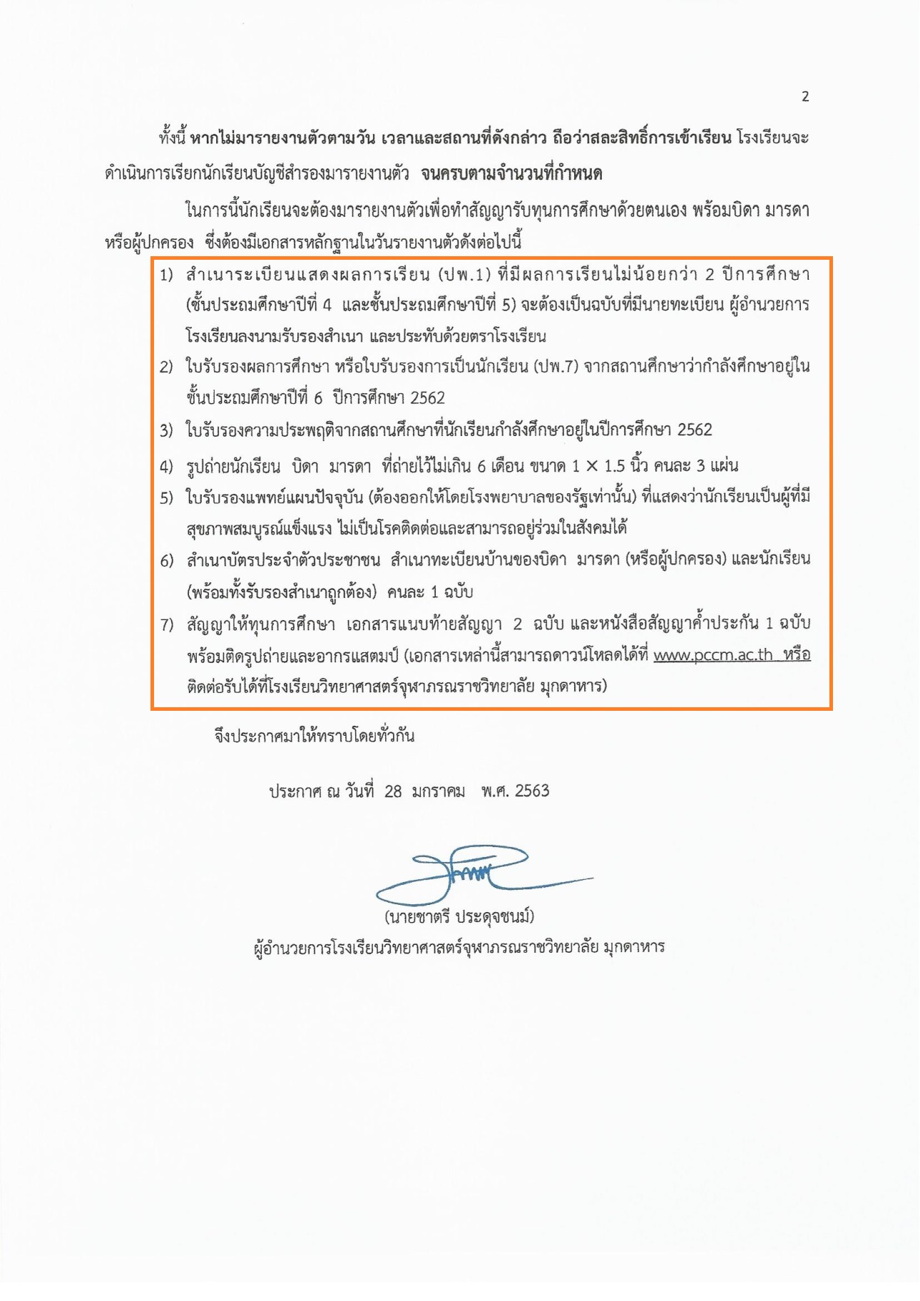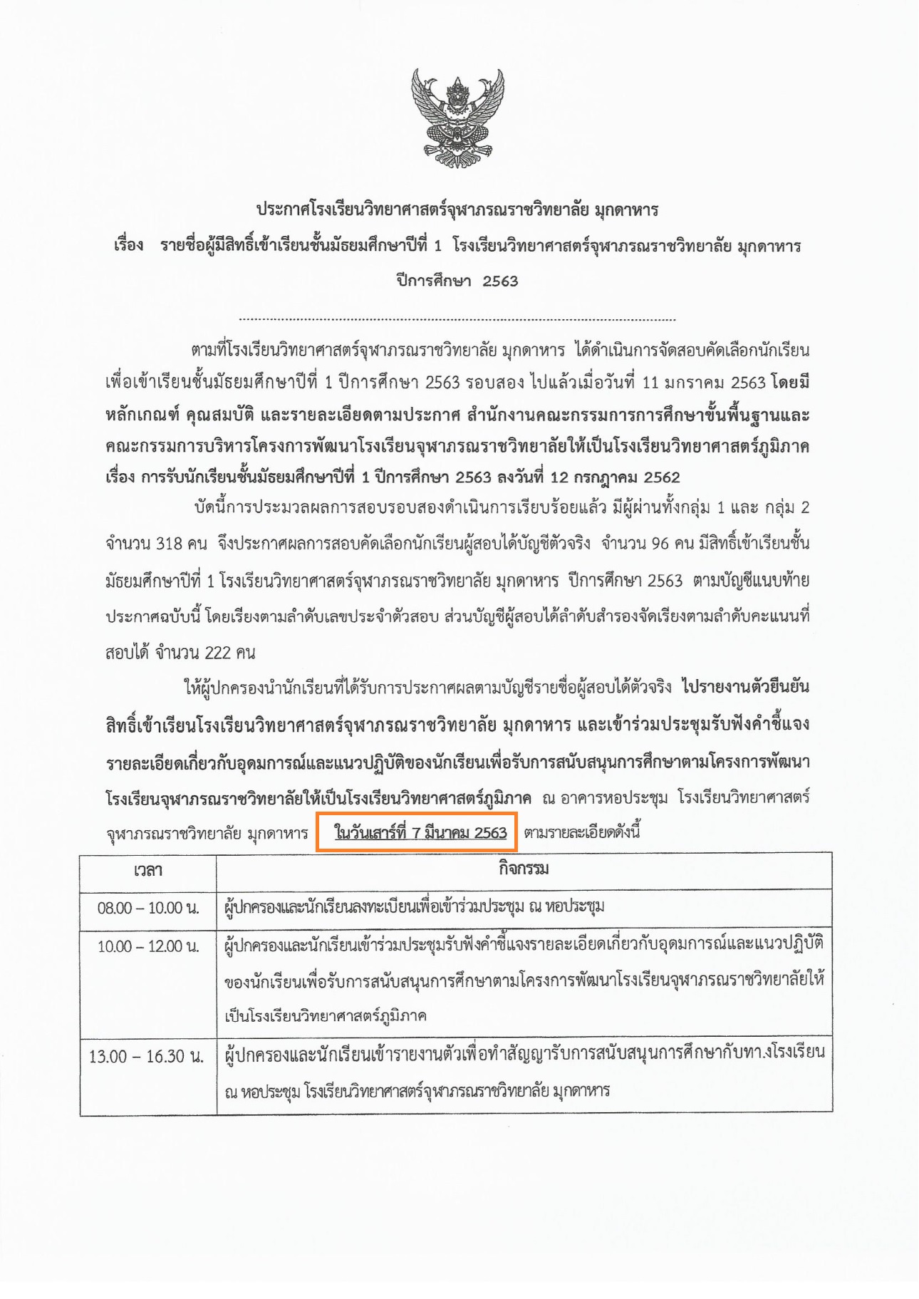 ประกาศรายชื่อผู้มีสิทธิ์เข้าเรียนชั้นมัธยมศึกษาปีที่ 1 ปีการศึกษา 2563
