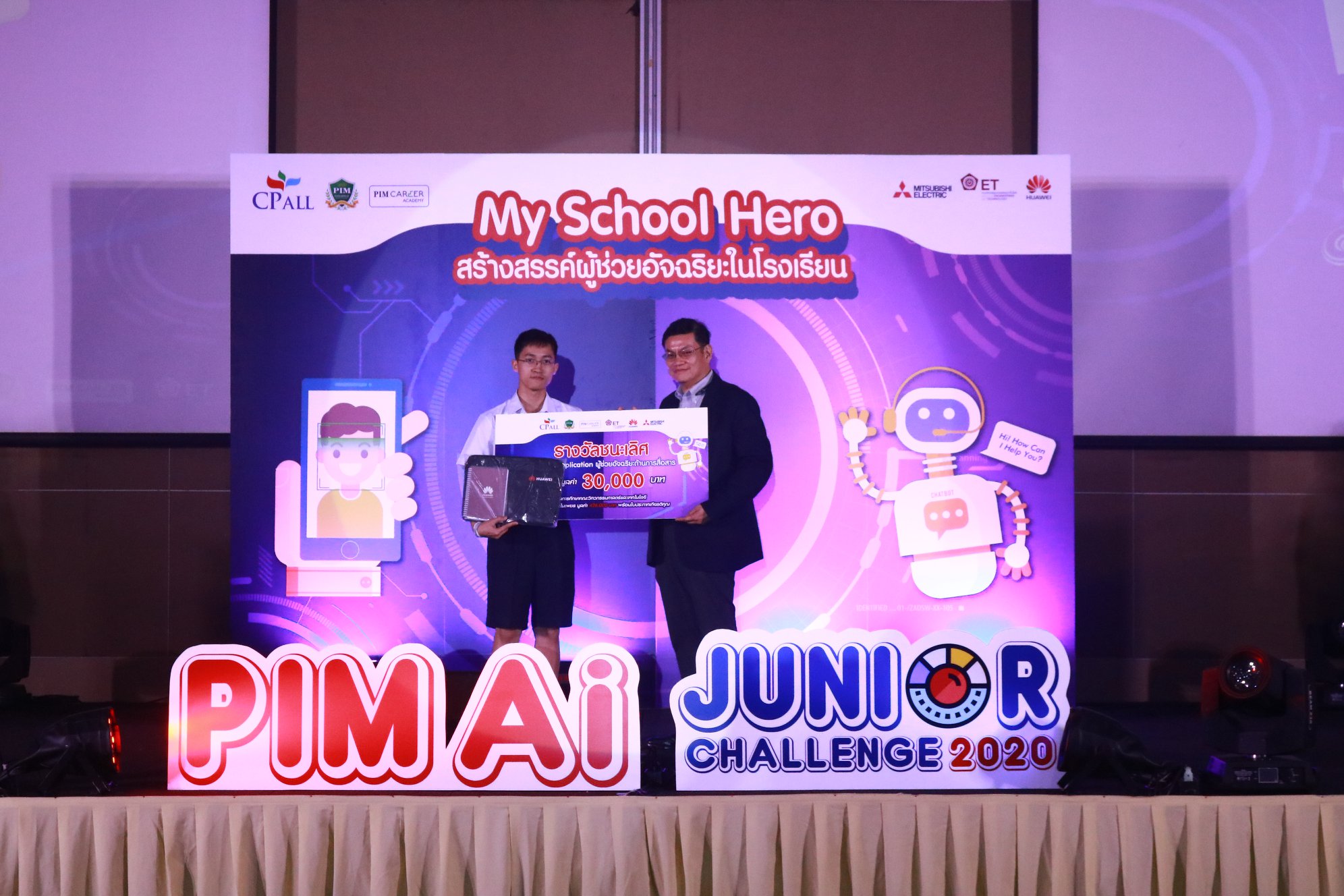 ขอแสดงความยินดีกับ นายคุณานนต์ รัตนโกเศศ นักเรียนที่ได้รับรางวัลชนะเลิศในการแข่งขันโครงการประกวด PIM Ai Junior Challenge 2020 ตอน My School Hero ในวันที่ 12 มกราคม 2563 จัดขึ้น ณ อาคาร Convention Hall 1-6 ชั้น 3 สถาบันการจัดการปัญญาภิวัฒน์ ถนนแจ้งวัฒนะ กรุงเทพมหานครฯ ในการแข่งขันประเภท Chat Bot Application สุดยอดผู้ช่วยอัจฉริยะของโรงเรียนด้านการสื่อสาร ซึ่งทีม DelveiBot โรงเรียนวิทยาศาสตร์จุฬาภรณราชวิทยาลัย มุกดาหาร สามารถคว้ารางวัลชนะเลิศ ได้รับเงินรางวัล 30,000 บาท พร้อมโล่รางวัล และทุนการศึกษาคณะวิศวกรรมศาสตร์และเทคโนโลยี ประเภททุน เจียระไนเพชร มูลค่า 426,000 บาท และเกียรติบัตร