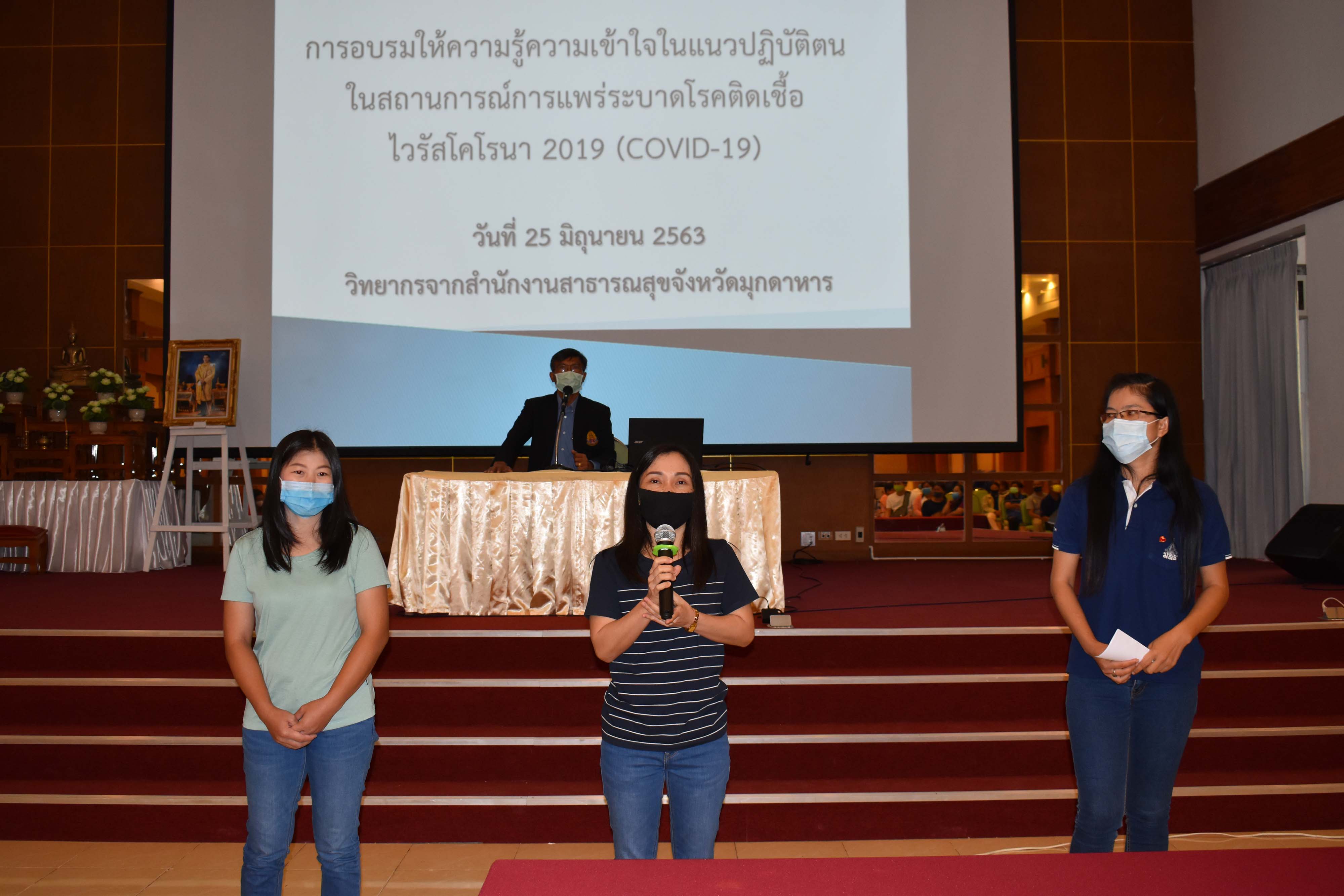 โรงเรียนวิทยาศาสตร์จุฬาภรณราชวิทยาลัย มุกดาหาร จัดประชุมบุคลากร แม่บ้าน นักการ ผู้ประกอบการร้านค้าภายในโรงเรียนเพื่อการเตรียมความพร้อมก่อนเปิดภาคเรียนที่ 1/2563 ในสถานการณ์ที่ไม่ปกติ COVID-19 ขึ้น ณ หอประชุมโรงเรียน ในวันที่ 25 มิถุนายน 2563 เวลา 9.00-12.00 น.