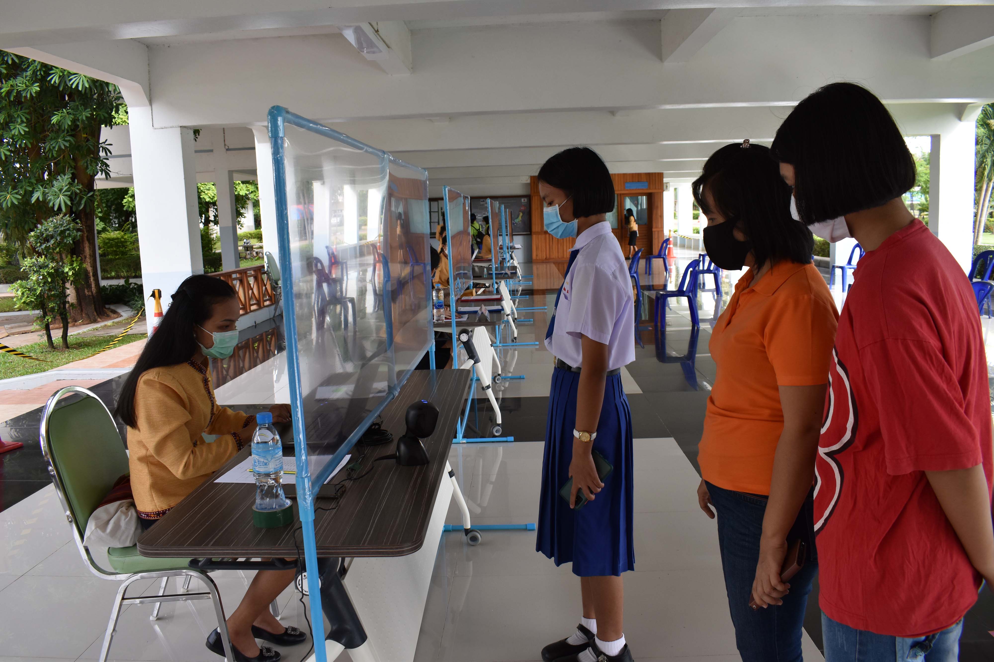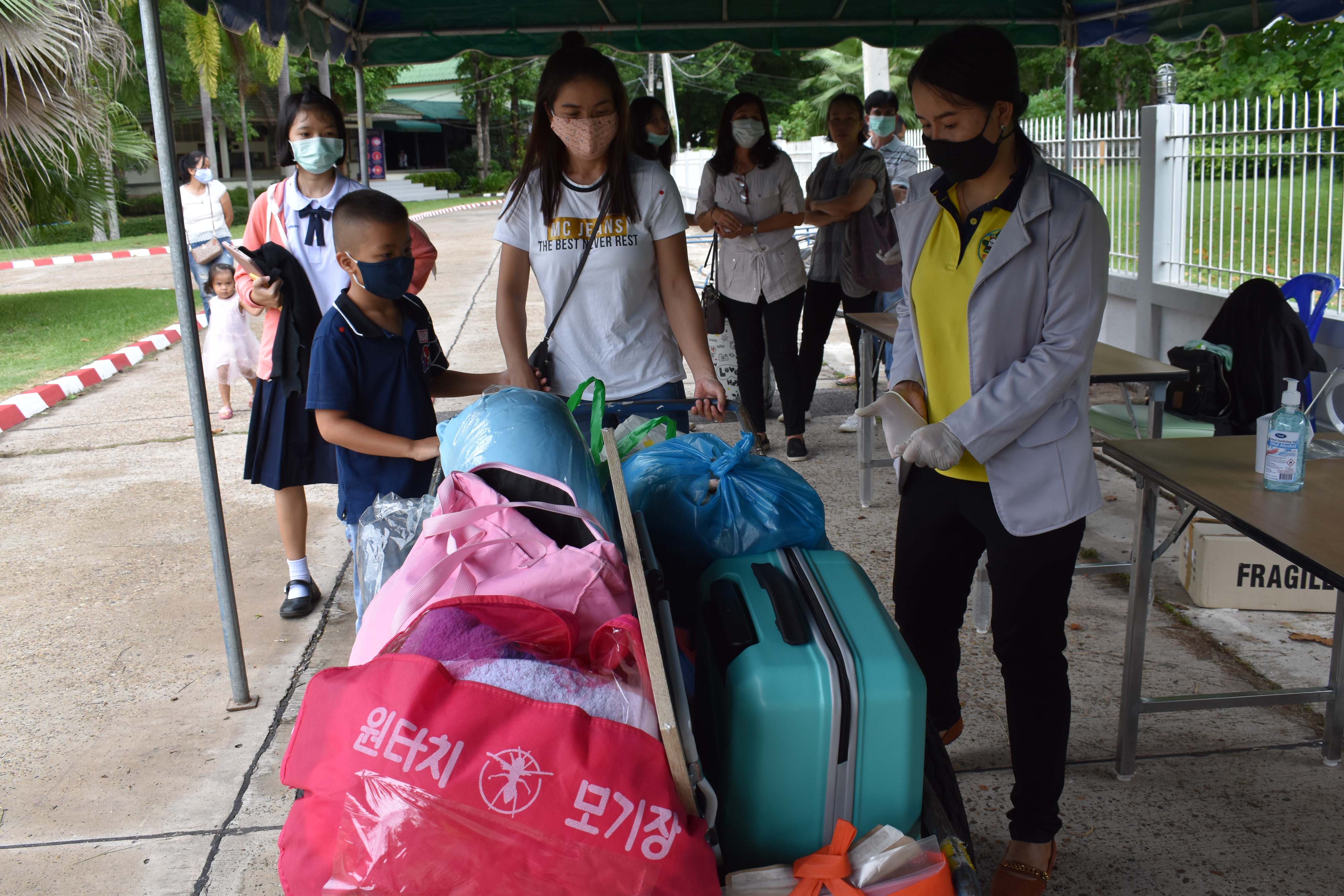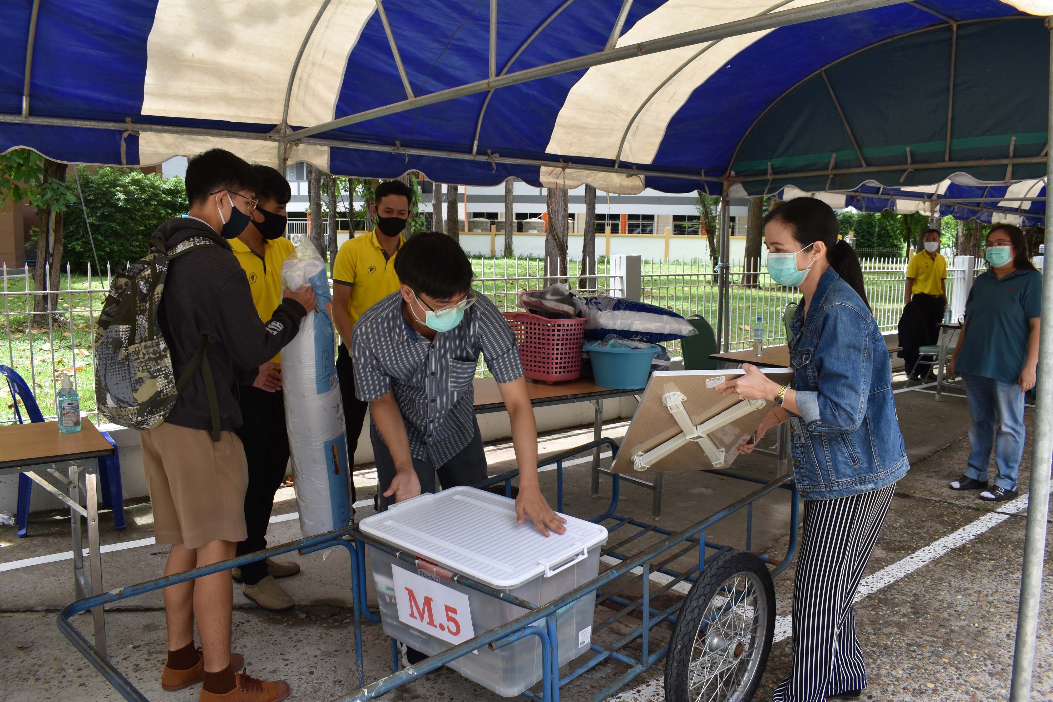 บรรยากาศการรับนักเรียนเข้าเรือนพักนักเรียนประจำ ในสถานการณ์ COVID-19 ของนักเรียนชั้นมัธยมศึกษาปีที่ 1 และ 4