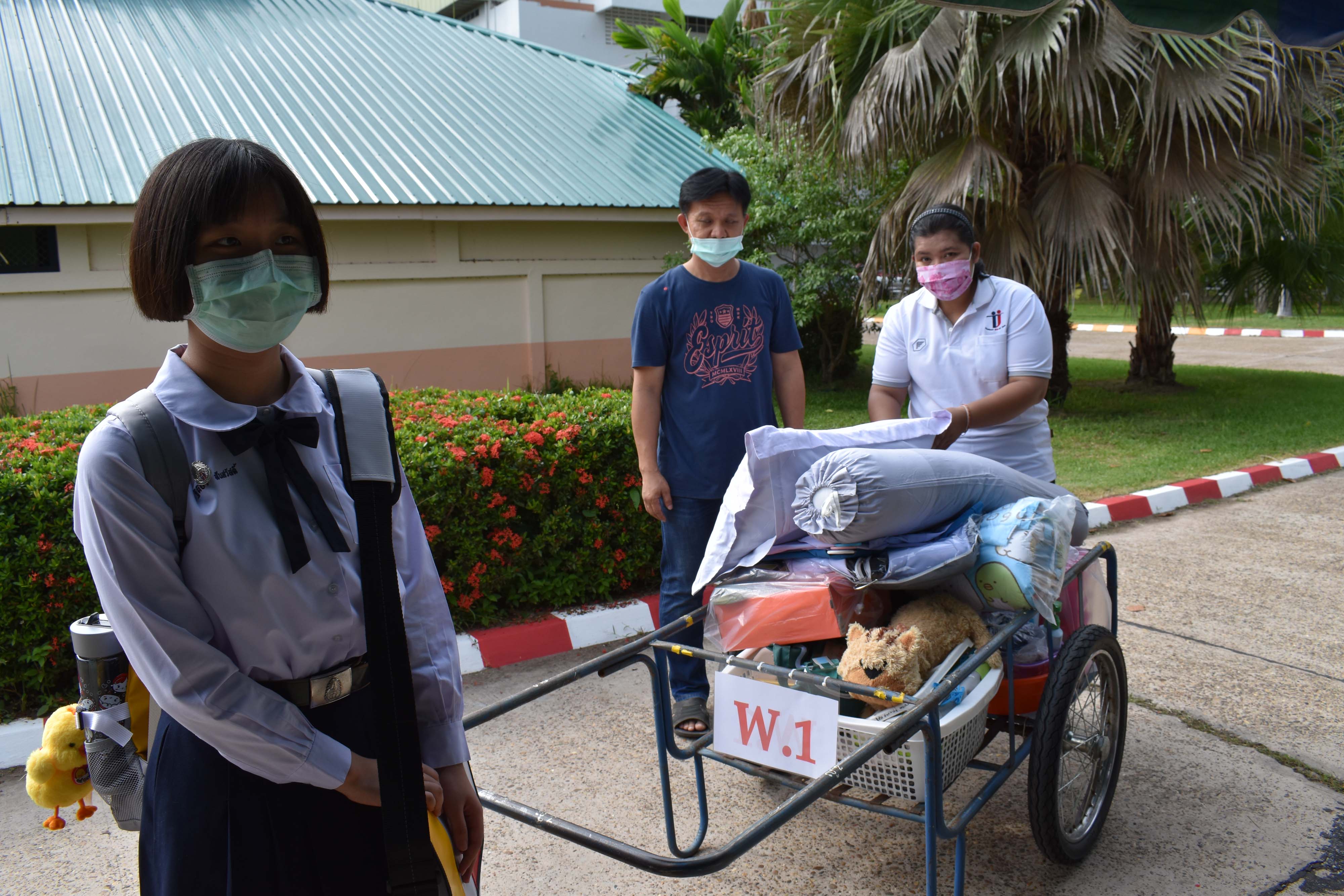 บรรยากาศการรับนักเรียนเข้าเรือนพักนักเรียนประจำ ในสถานการณ์ COVID-19 ของนักเรียนชั้นมัธยมศึกษาปีที่ 2, 3, 5, 6 และ 4