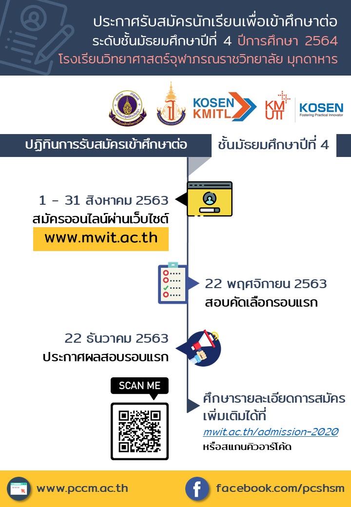 - สมัครทางเว็บไซต์ https://apply.mwit.ac.th