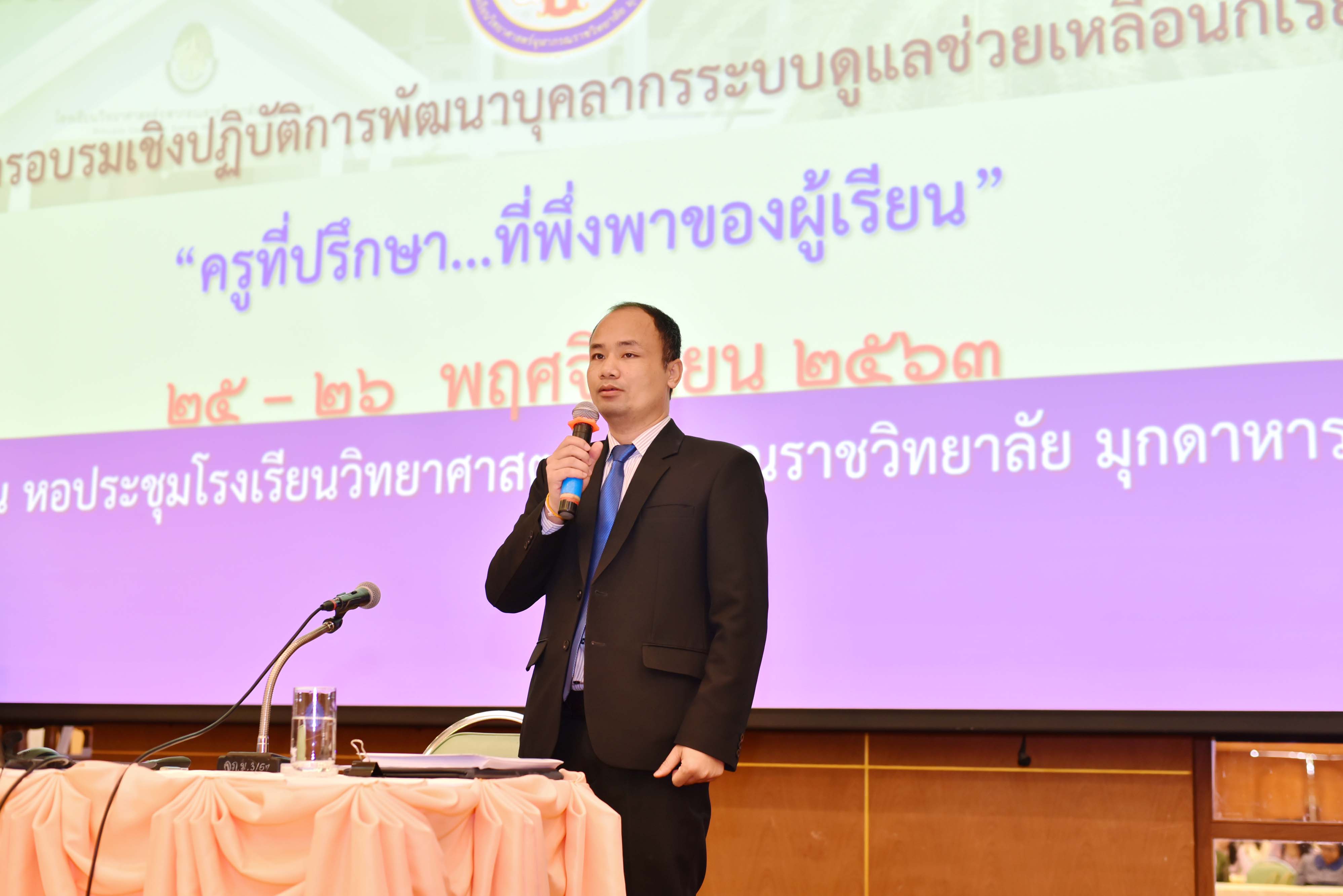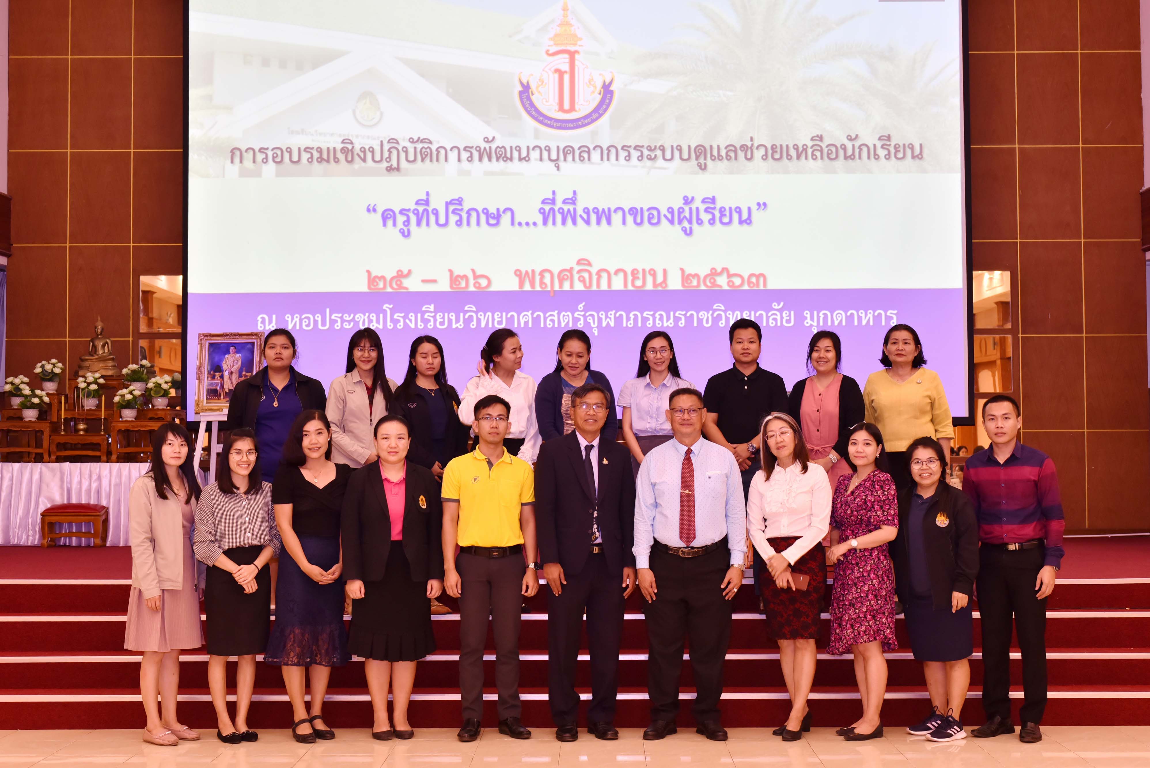 การอบรมเชิงปฏิบัติการพัฒนาบุคลากรระบบดูแลช่วยเหลือนักเรียน หัวข้อ ครูที่ปรึกษาที่พึ่งพาของผู้เรียน วันที่ 25-26 พฤศจิกายน 2563 ณ หอประชุมโรงเรียนวิทยาศาสตร์จุฬาภรณราชวิทยาลัย มุกดาหาร