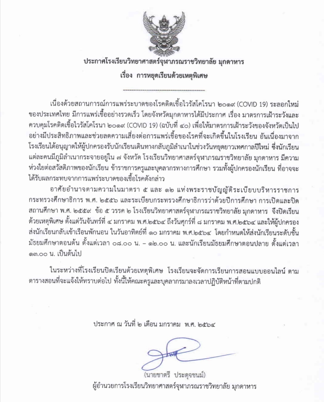 ประกาศหยุดเรียนด้วยเหตุพิเศษ