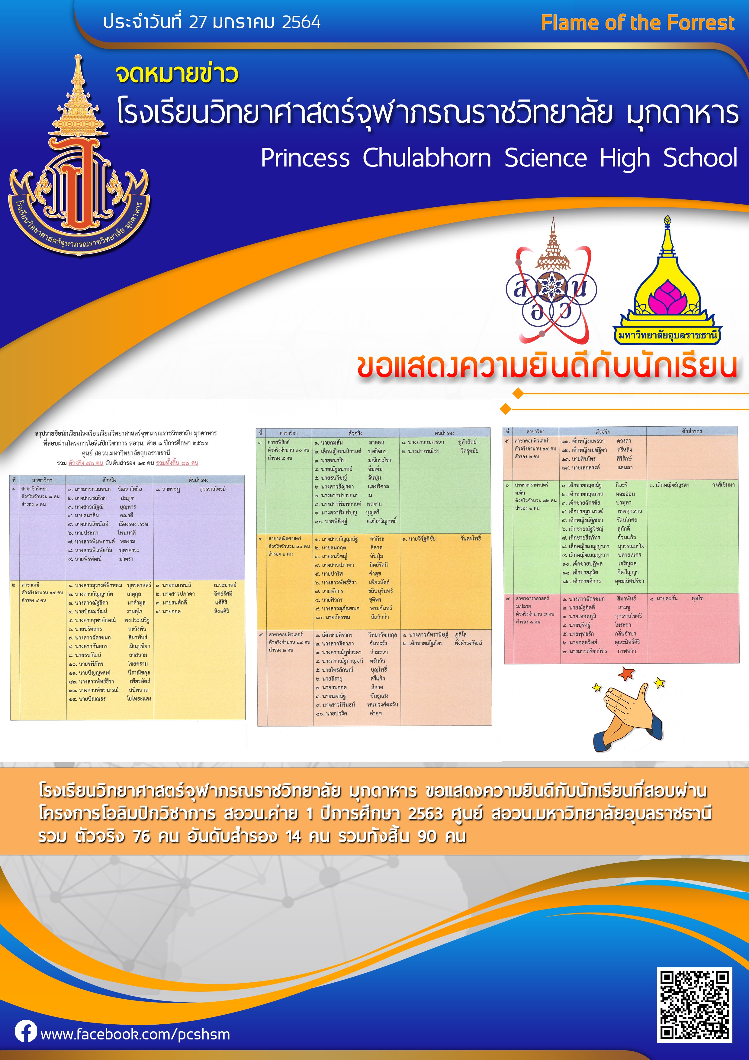จดหมายข่าวโรงเรียนวิทยาศาสตร์จุฬาภรณราชวิทยาลัย มุกดาหาร ประจำวันที่ 27 มกราคม 2564