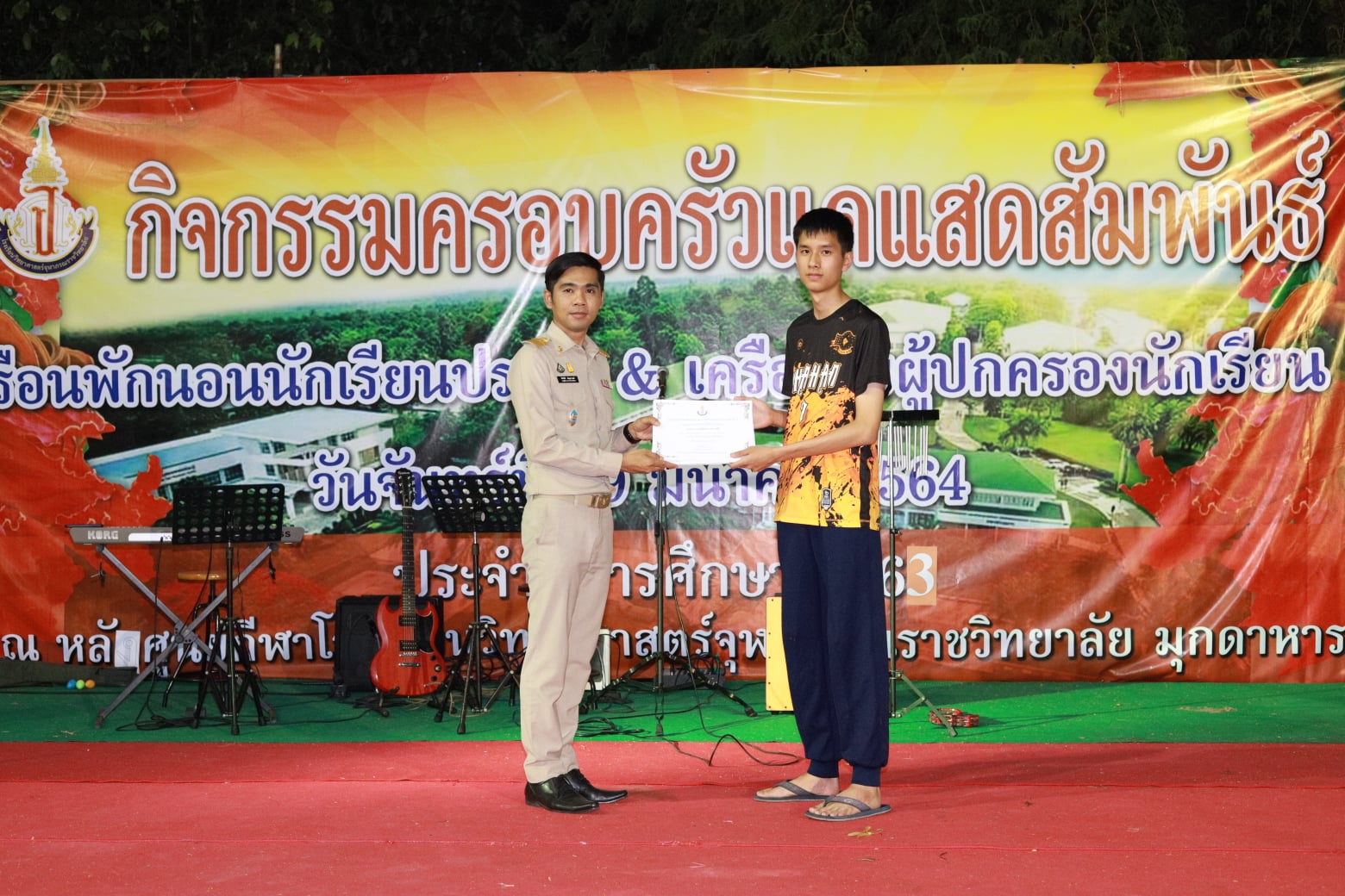 โรงเรียนวิทยาศาสตร์จุฬาภรณราชวิทยาลัย มุกดาหาร ร่วมกับเครือข่ายผู้ปกครองจัดกิจกรรมครอบครัวแคแสดสัมพันธ์ ประจำปีการศึกษา 2563 วันจันทร์ ที่ 29 มีนาคม พ.ศ. 2564 เวลา 17.00-22.00 น.