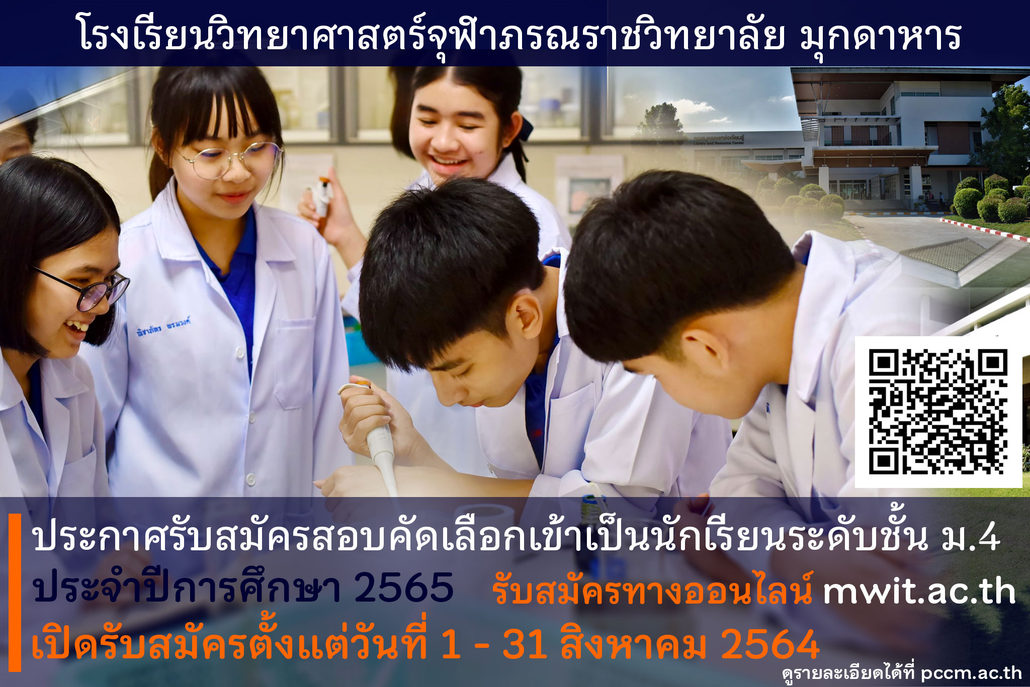 โรงเรียนวิทยาศาสตร์จุฬาภรณราชวิทยาลัย มุกดาหาร ประกาศรับสมัครสอบคัดเลือกเข้าเป็นนักเรียนระดับชั้น ม.4 ประจำปีการศึกษา 2565