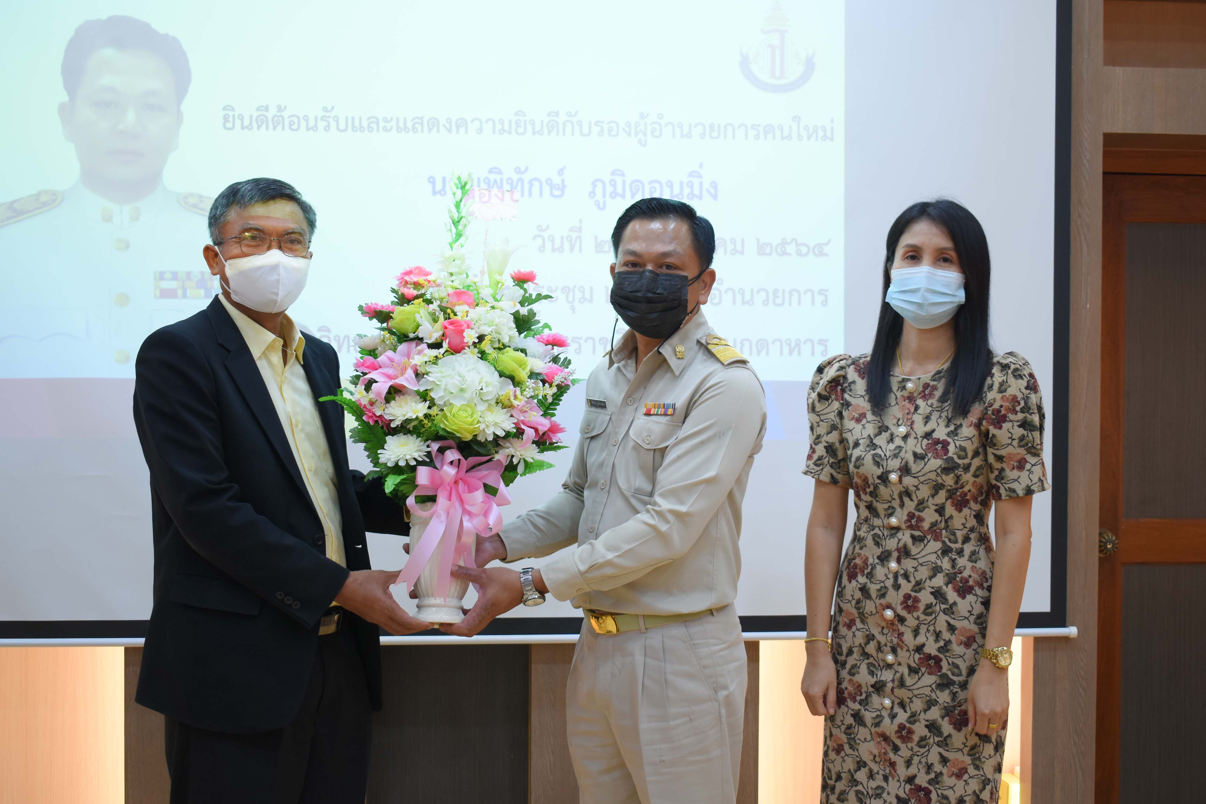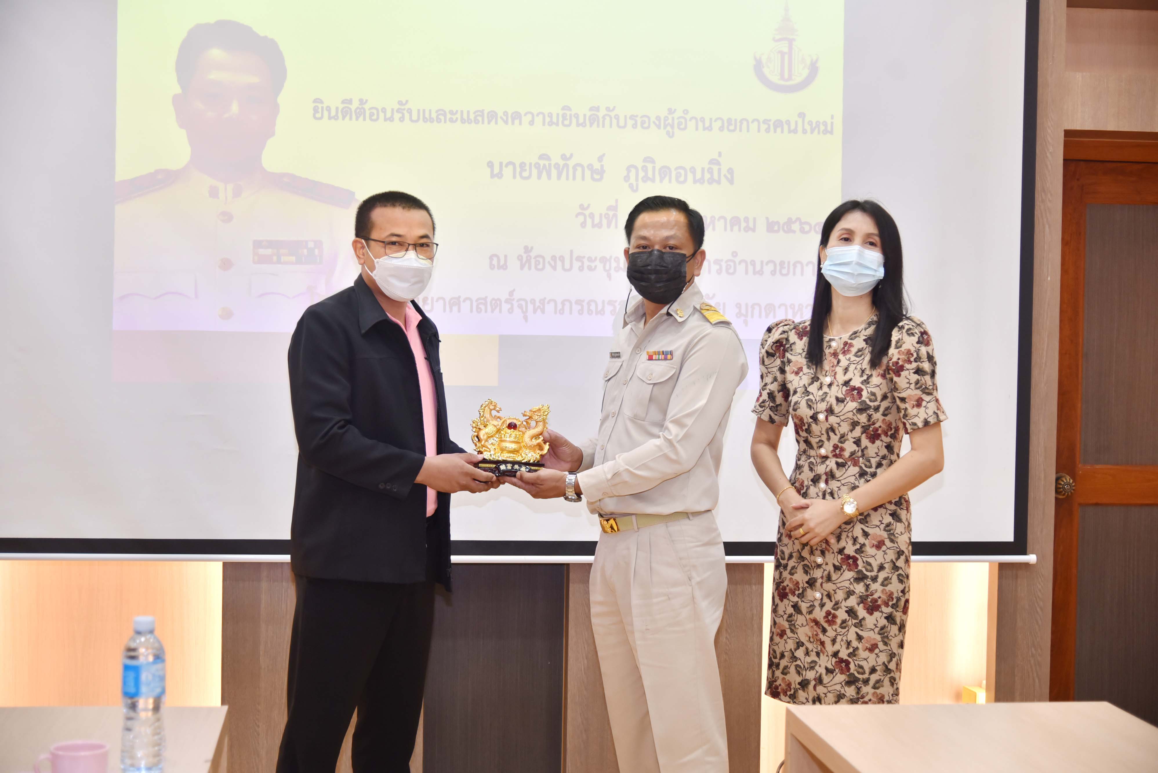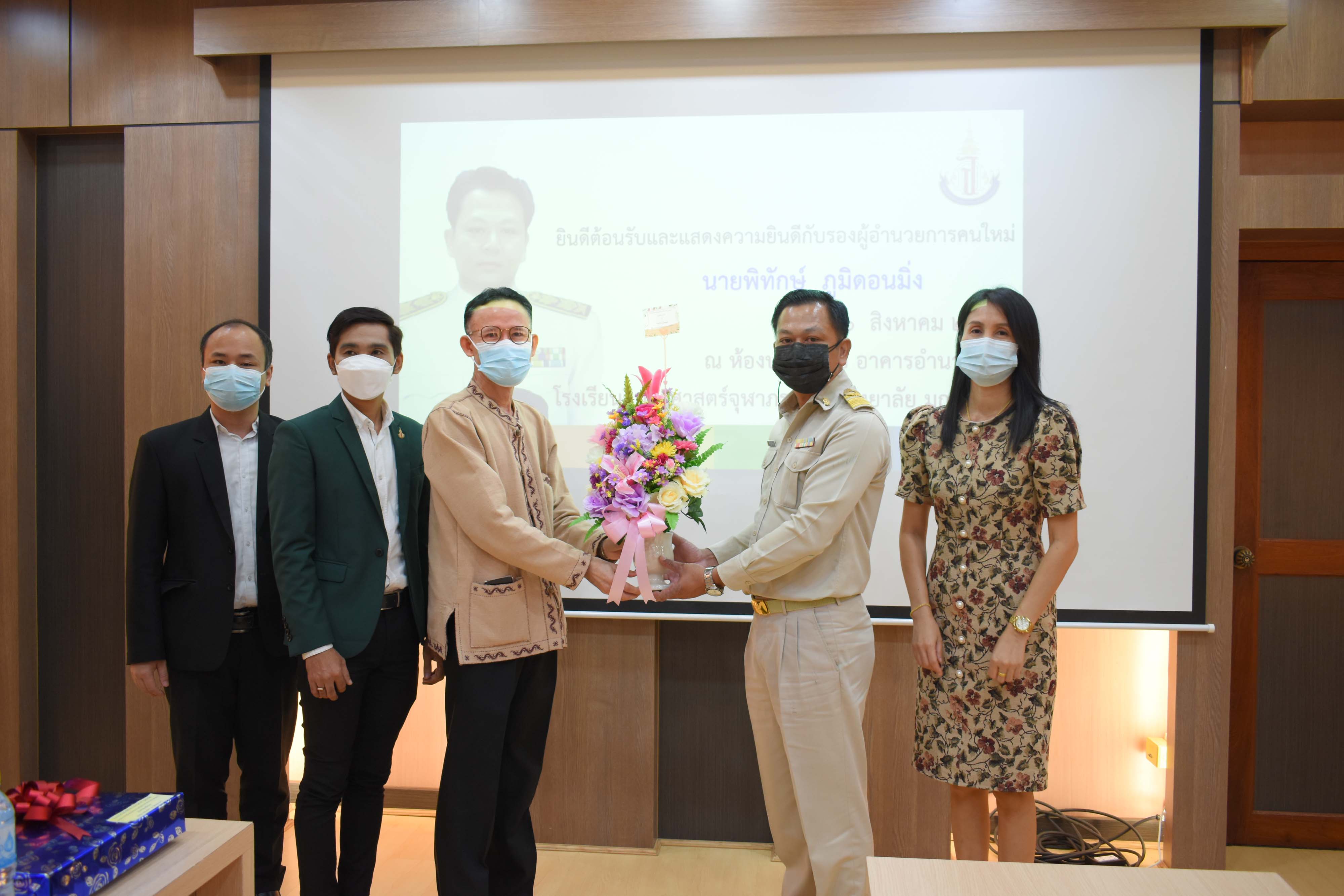 คณะผู้บริหาร ครูและบุคลากร โรงเรียนวิทยาศาสตร์จุฬาภรณราชวิทยาลัย มุกดาหาร ร่วมต้อนรับรองผู้อำนวยการสถานศึกษาคนใหม่ นายพิทักษ์ ภูมิดอนมิ่ง และคณะผู้ติดตาม ในวันพฤหัสบดีที่ 26 สิงหาคม 2564 ณ หอประชุม 2 โรงเรียนวิทยาศาสตร์จุฬาภรณราชวิทยาลัย มุกดาหาร