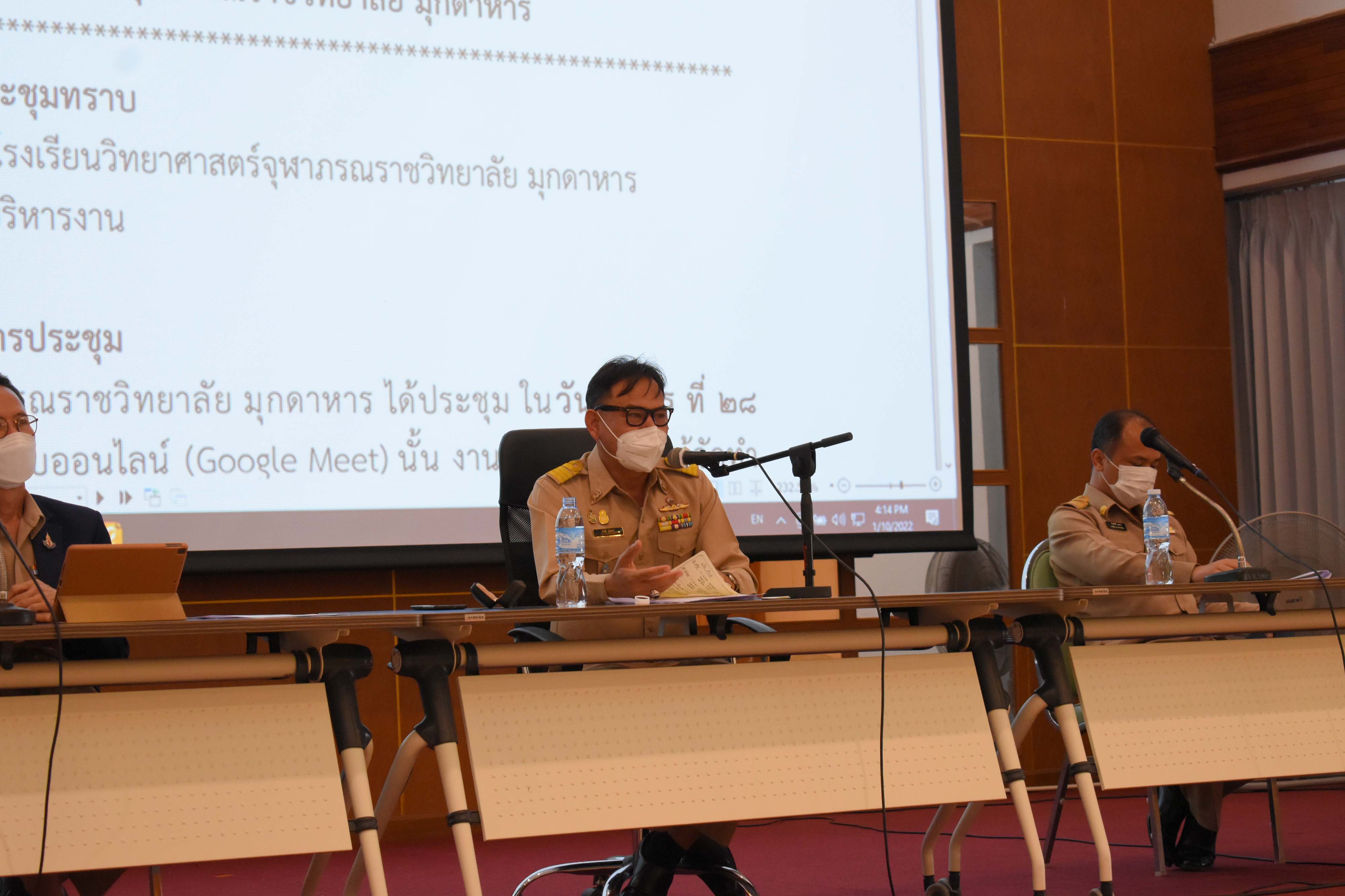 โรงเรียนวิทยาศาสตร์จุฬาภรณราชวิทยาลัย มุกดาหาร จัดประชุมข้าราชการครูและบุคลากรประจำเดือนมกราคม 2565 เวลา 16.00 น. เป็นต้นไป โดยท่านผู้อำนวยการโรงเรียน นายศักดิ์ รุ่งแสง ได้แจ้งนโยบายการบริหารงานโรงเรียน และการปรับโครงสร้างการบริหารงาน หลังจากเข้ารับตำแหน่งผู้อำนวยการโรงเรียนในวันที่ 6 มกราคม พุทธศักราช 2565 ให้ข้าราชการครูได้เข้าใจและถือเป็นแนวทางปฏิบัติงานให้สอดคล้องกับนโยบายต่อไปต่อไป