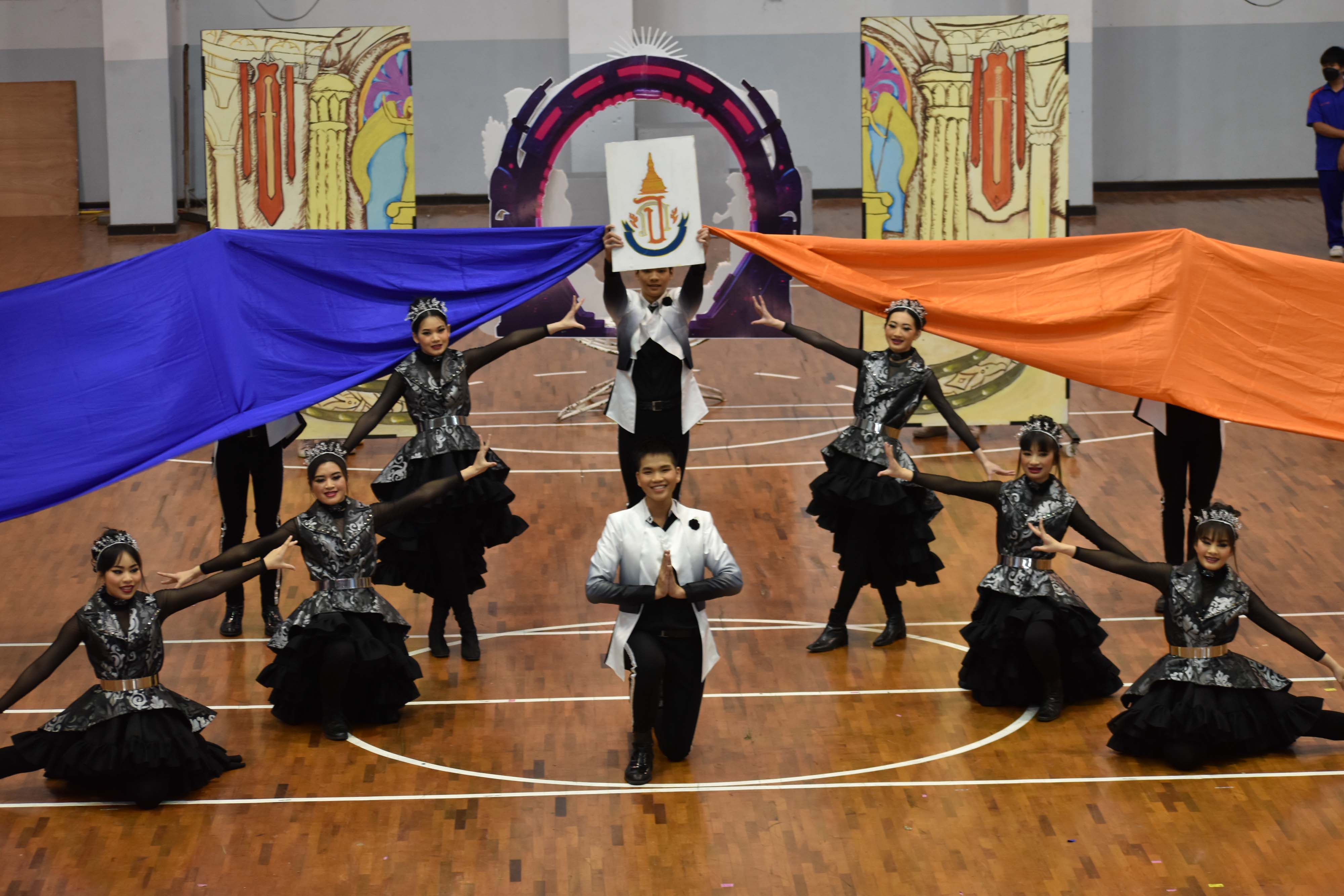 การแสดงเชียร์ลีดเดอร์รวมสีระหว่างสีฟ้าและสีแดง