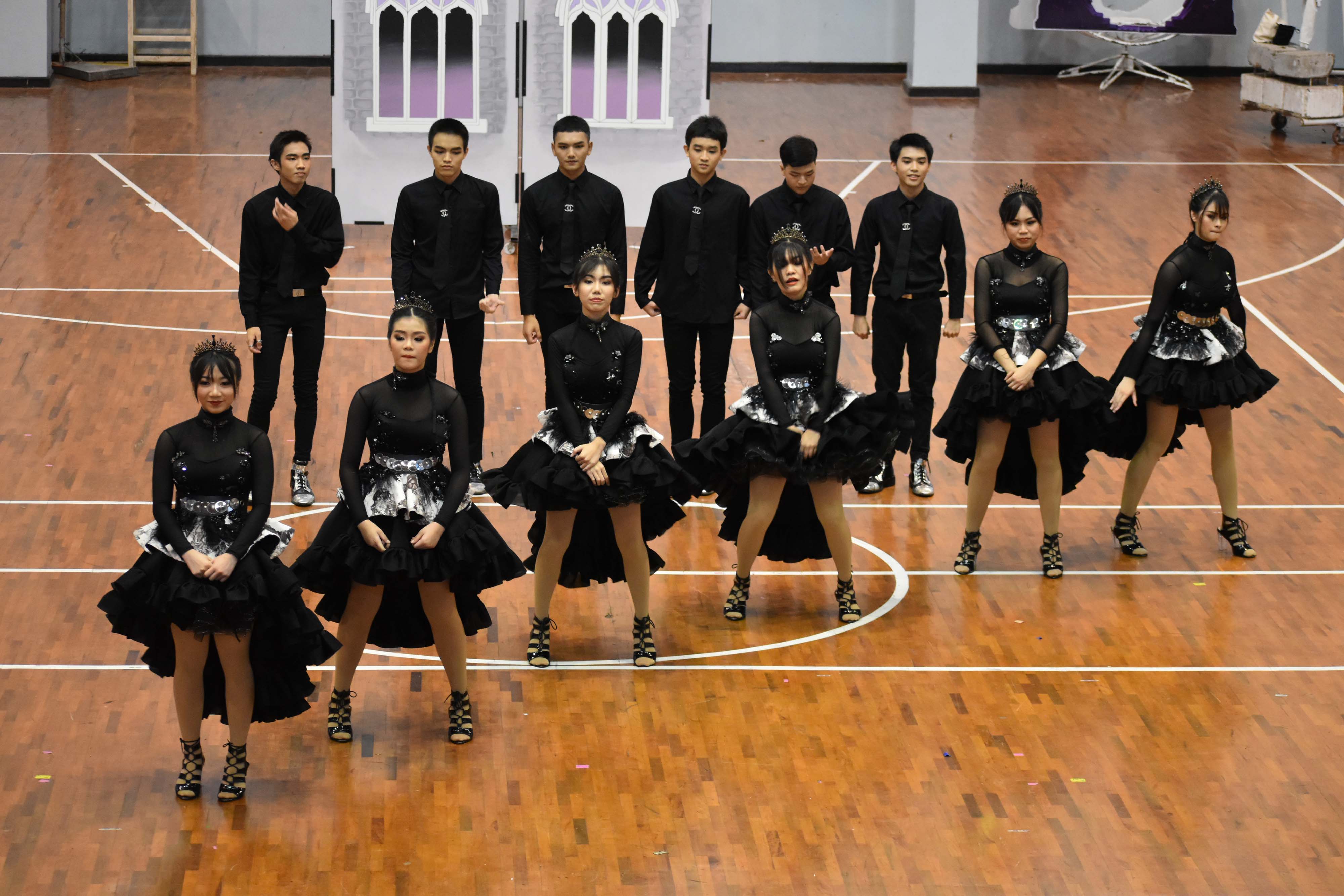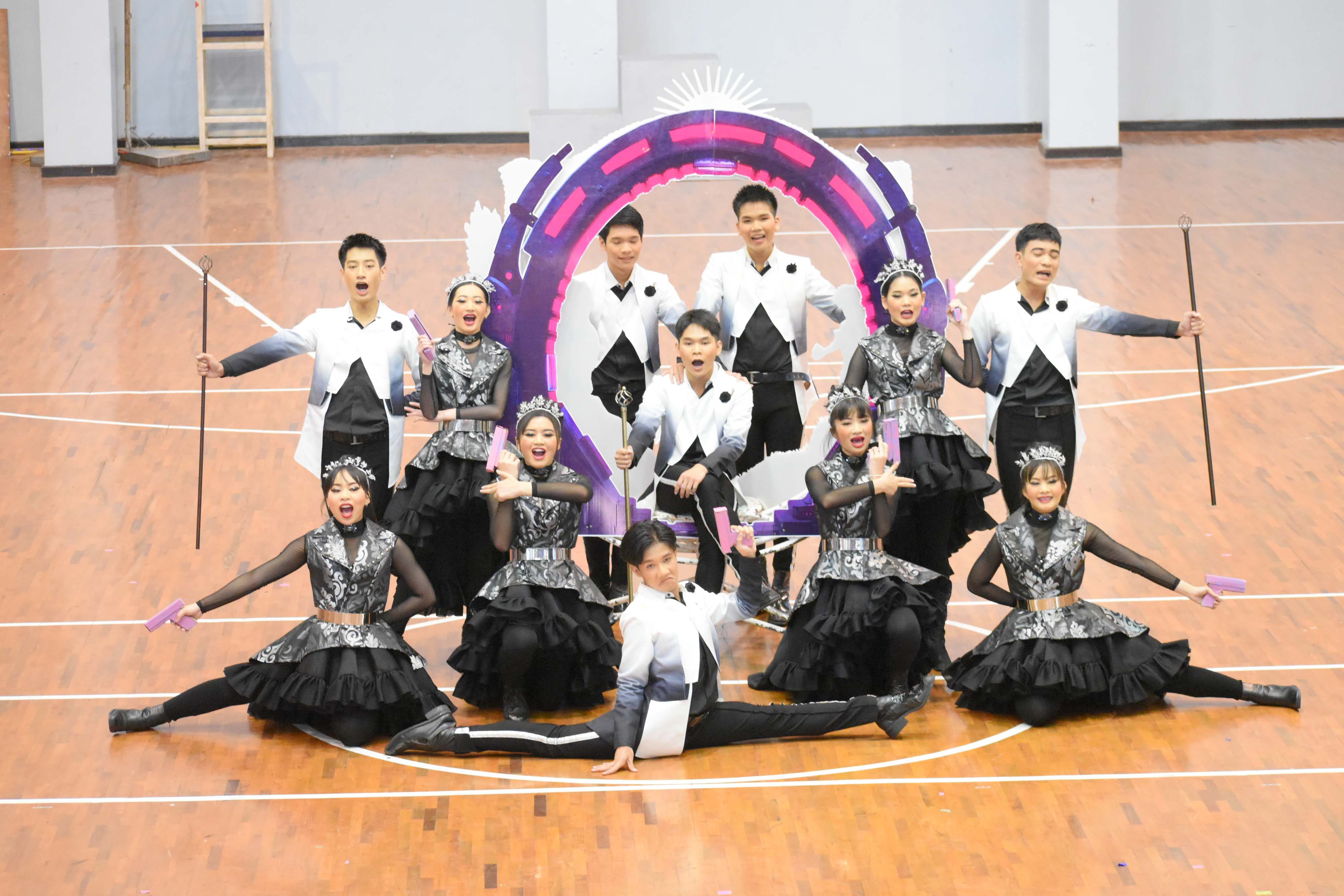การแสดงเชียร์ลีดเดอร์รวมสีระหว่างสีชมพูและสีเหลือง