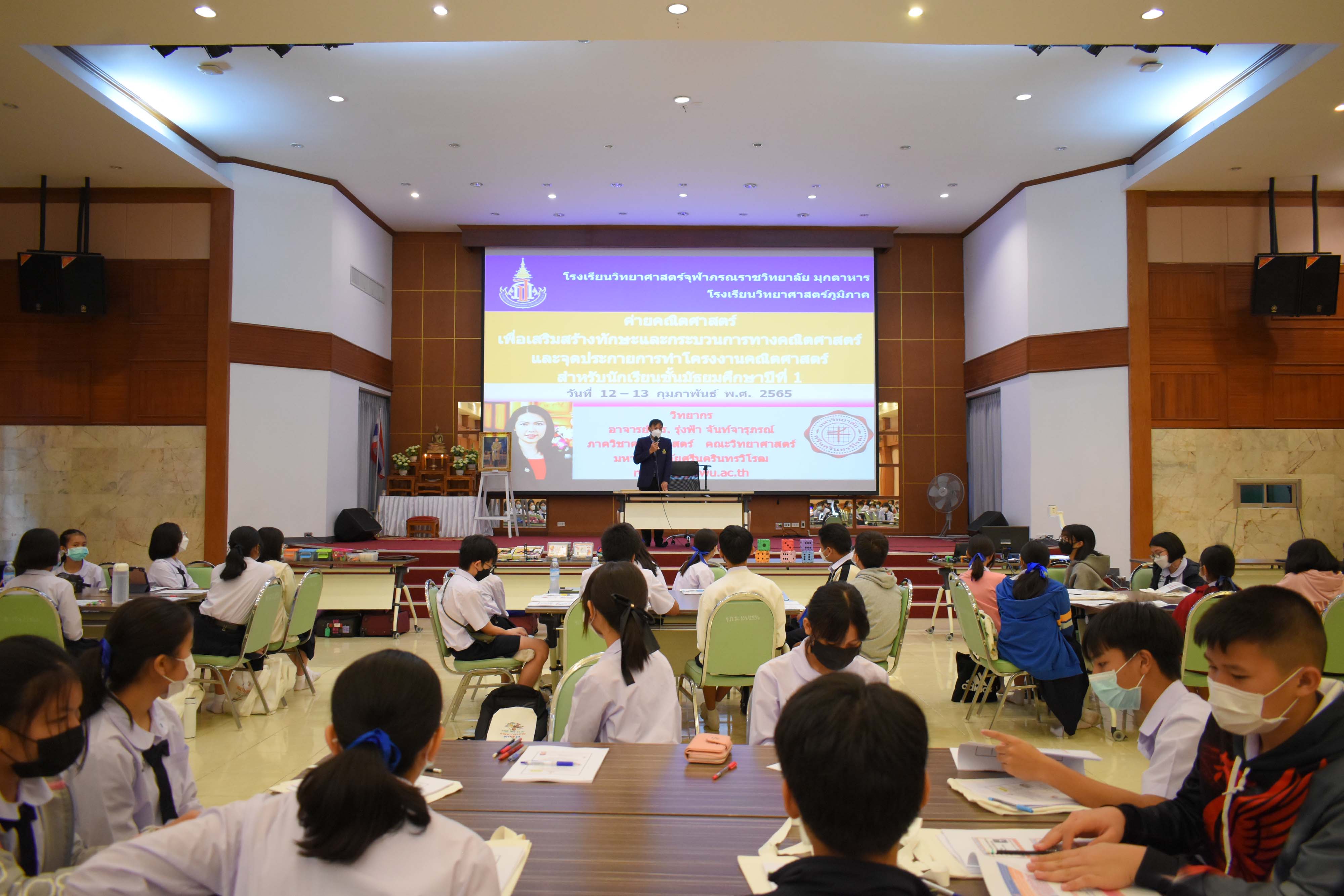 โรงเรียนวิทยาศาสตร์จุฬาภรณราชวิทยาลัย มุกดาหาร จัดกิจกรรมค่ายคณิตศาสตร์เพื่อส่งเสริมทักษะและกระบวนการทางคณิตศาสตร์และจุดประกายการทำโครงงานคณิตศาสตร์สำหรับนักเรียนชั้นมัธยมศึกษปีที่ 1 ระหว่างวันที่ 12-13 กุมภาพันธ์ พ.ศ. 2565 เวลา 08.00-21.00 น. ณ อาคารหอประชุมโรงเรียน