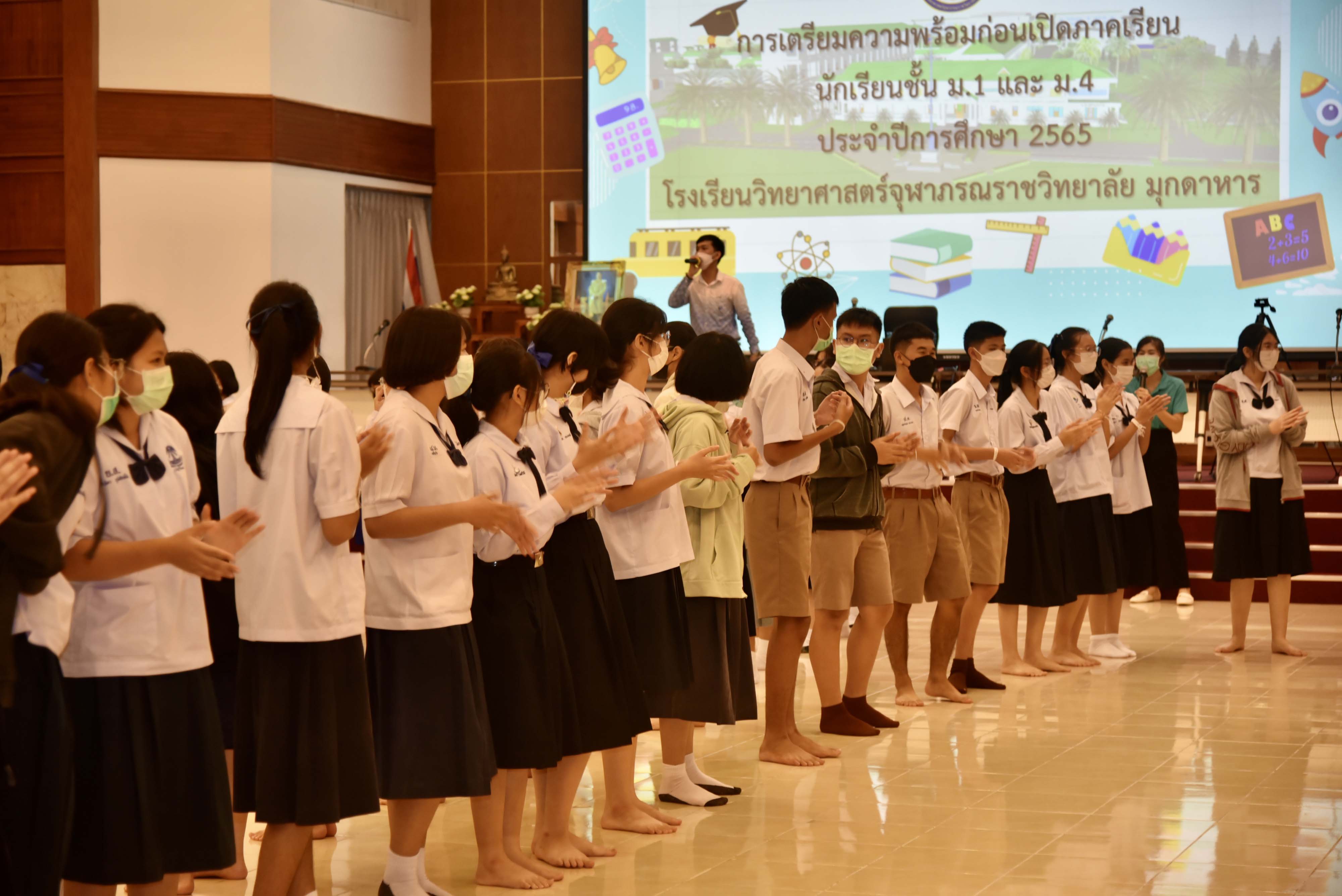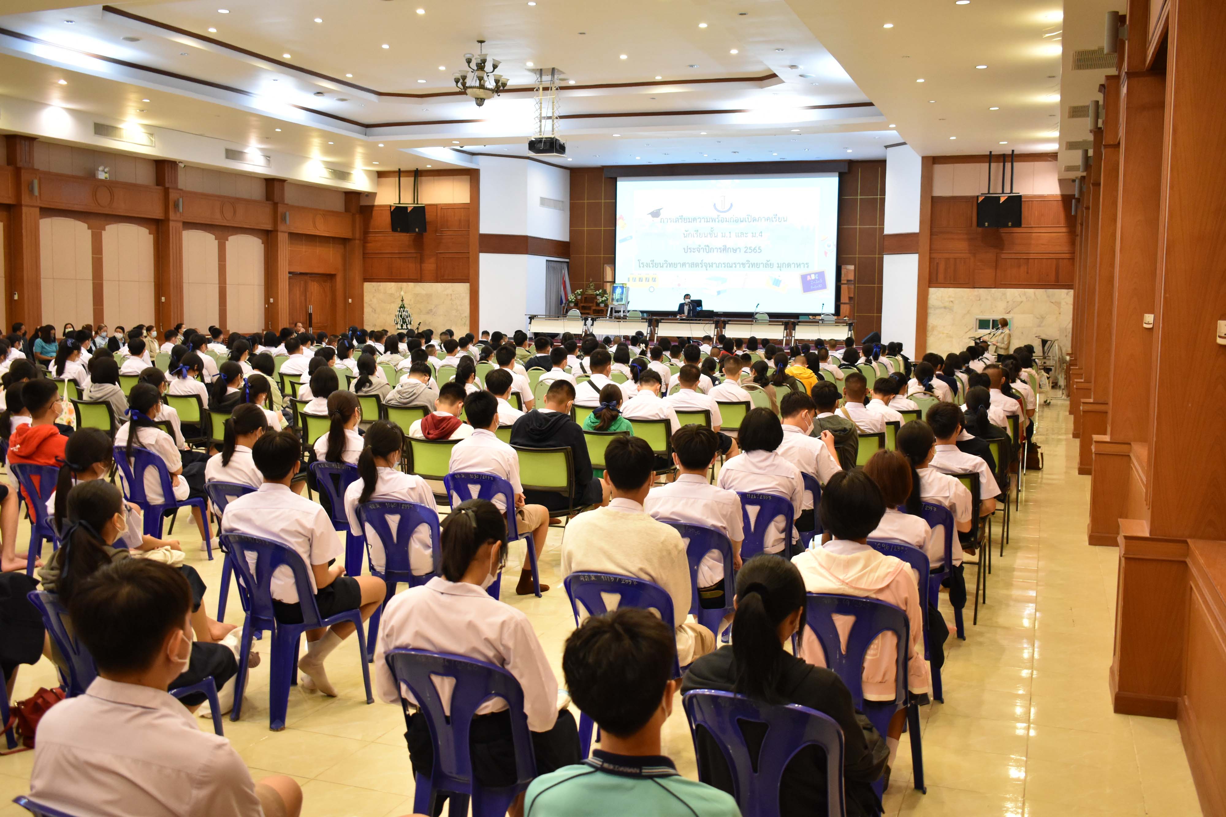 โรงเรียนวิทยาศาสตร์จุฬาภรณราชวิทยาลัย มุกดาหาร จัดกิจกรรมค่ายเตรียมความพร้อมสำหรับนักเรียนชั้นมัธยมศึกษาปีที่ 1 และ 4 เข้าใหม่ ก่อนเริ่มเปิดภาคเรียน ที่ 1/2565 ในวันที่ 16 พฤษภาคม พ.ศ. 2565 ณ อาคารหอประชุมโรงเรียน