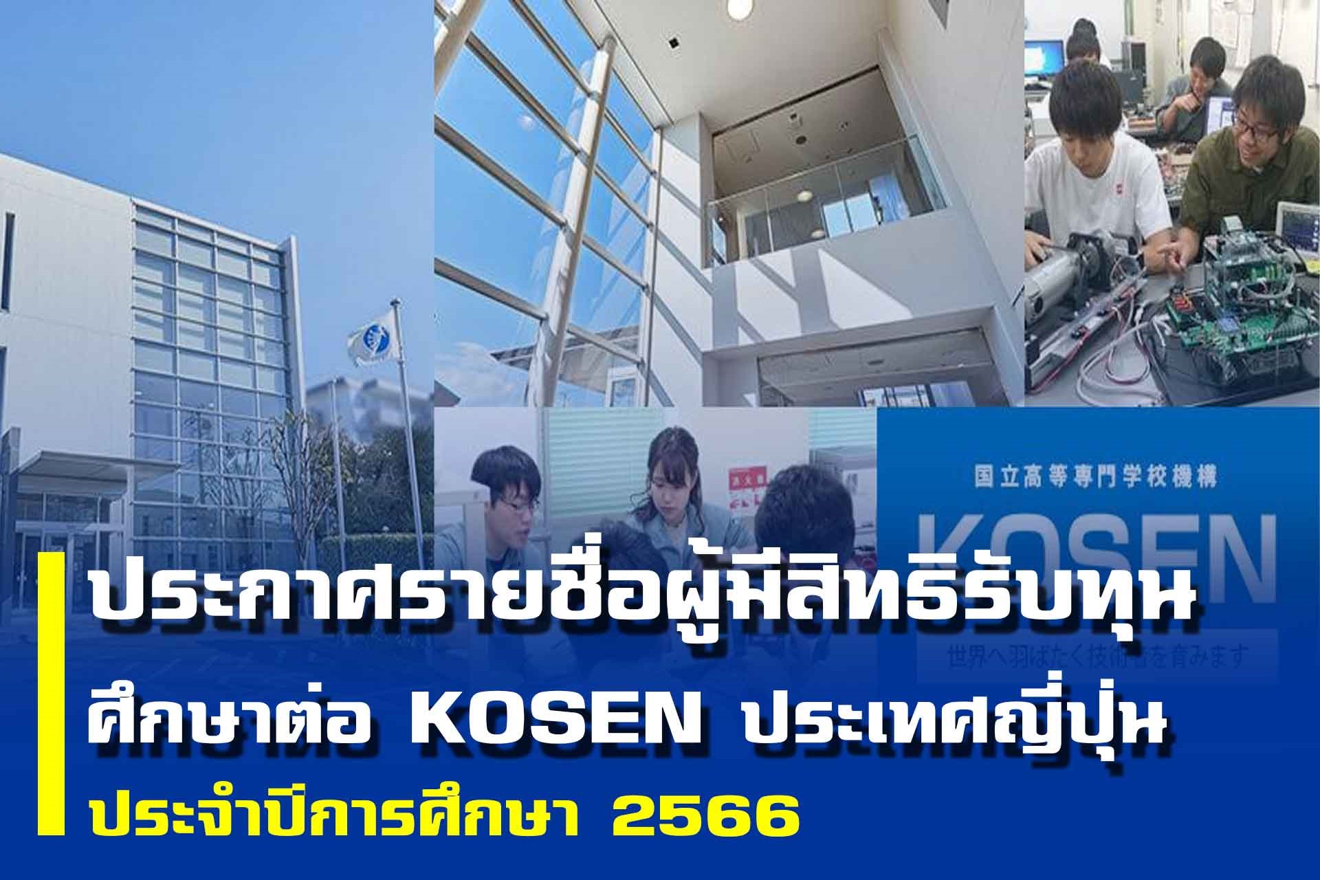 ประกาศรายชื่อผู้มีสิทธิรับทุนศึกษาต่อสำหรับนักเรียนโรงเรียนวิทยาศาสตร์จุฬาภรณราชวิทยาลัย ไปศึกษาต่อ ณ National Institute of Technology (KOSEN) ประเทศญี่ปุ่น ประจำปีการศึกษา 2566