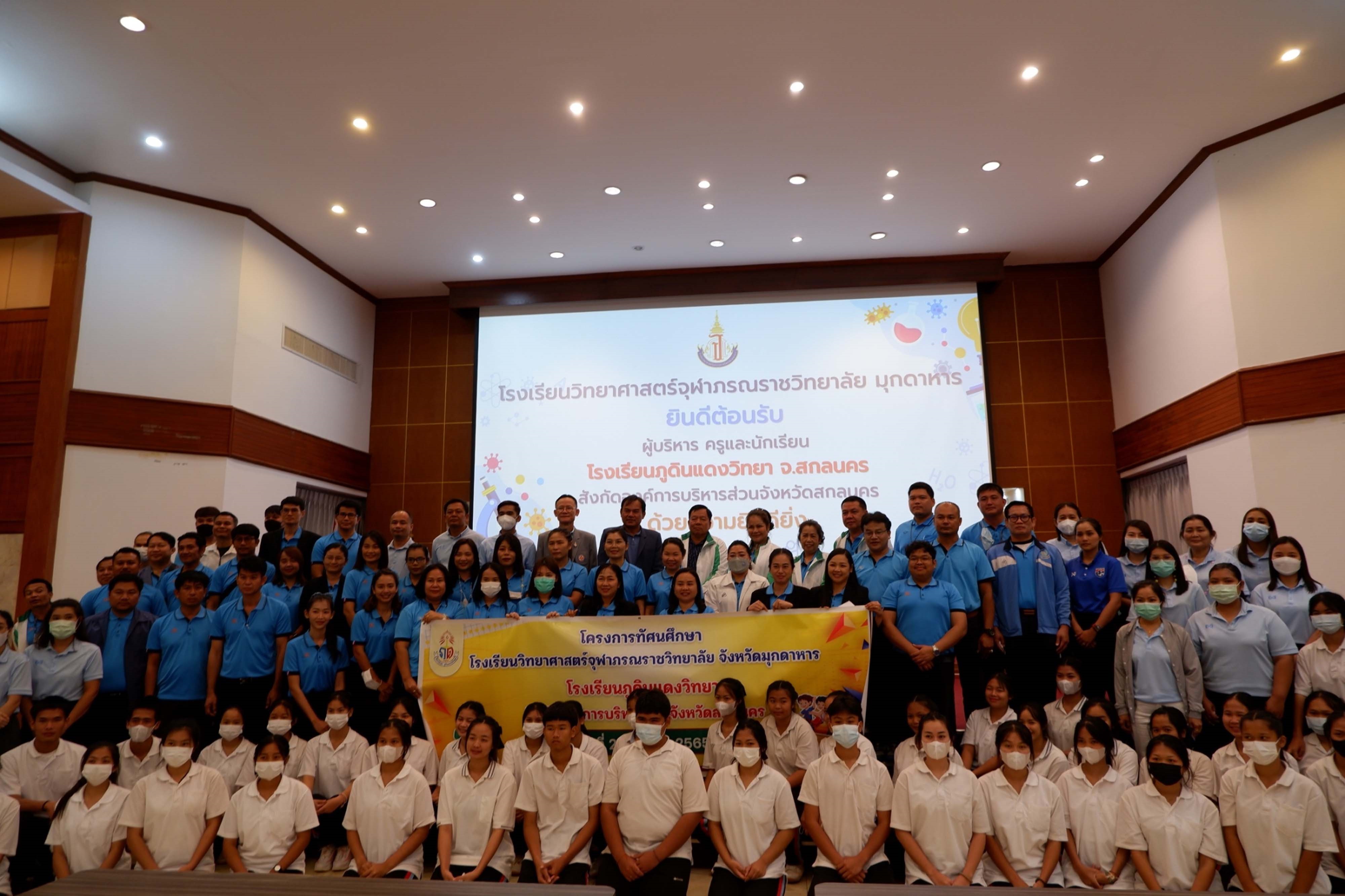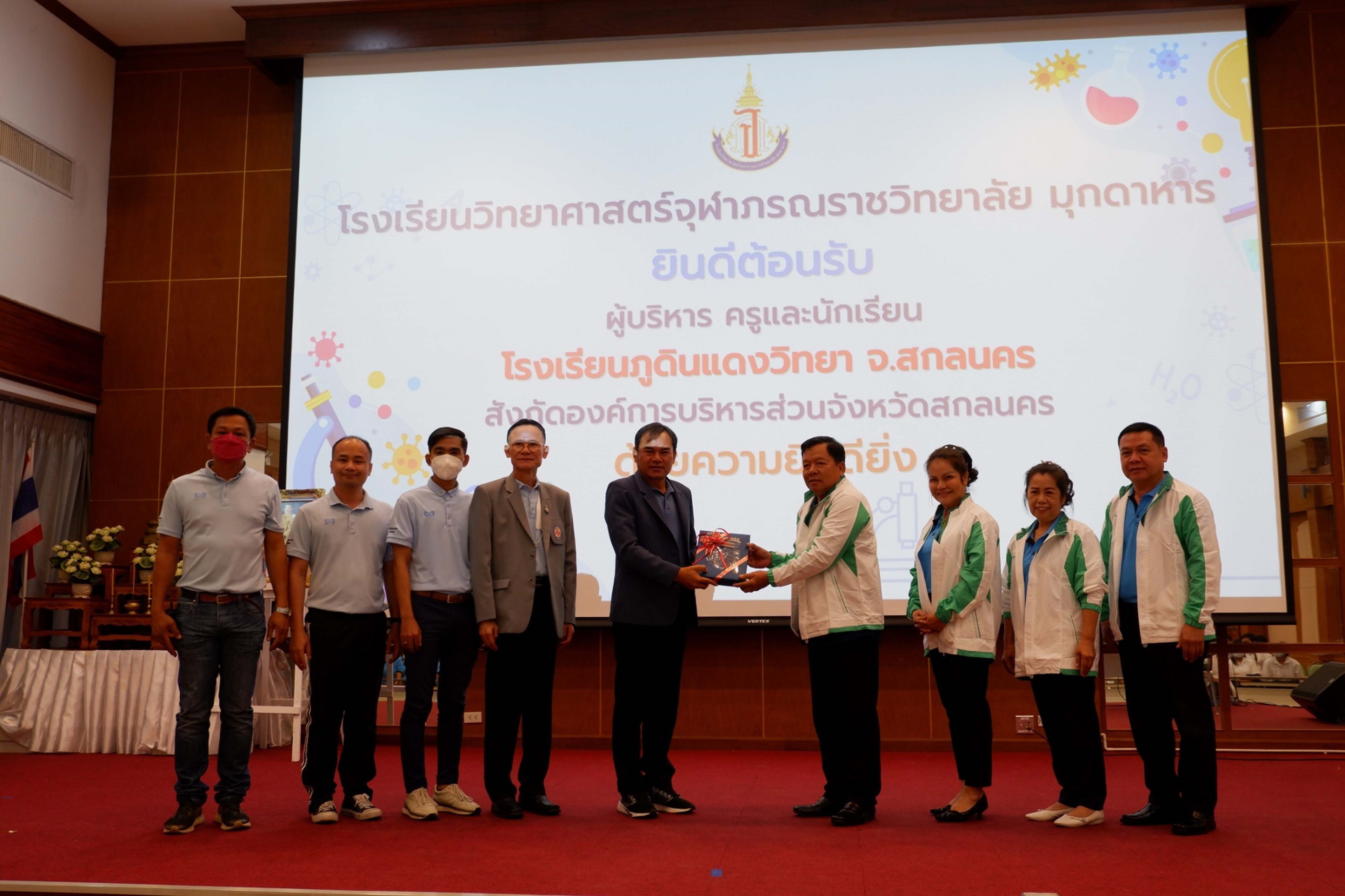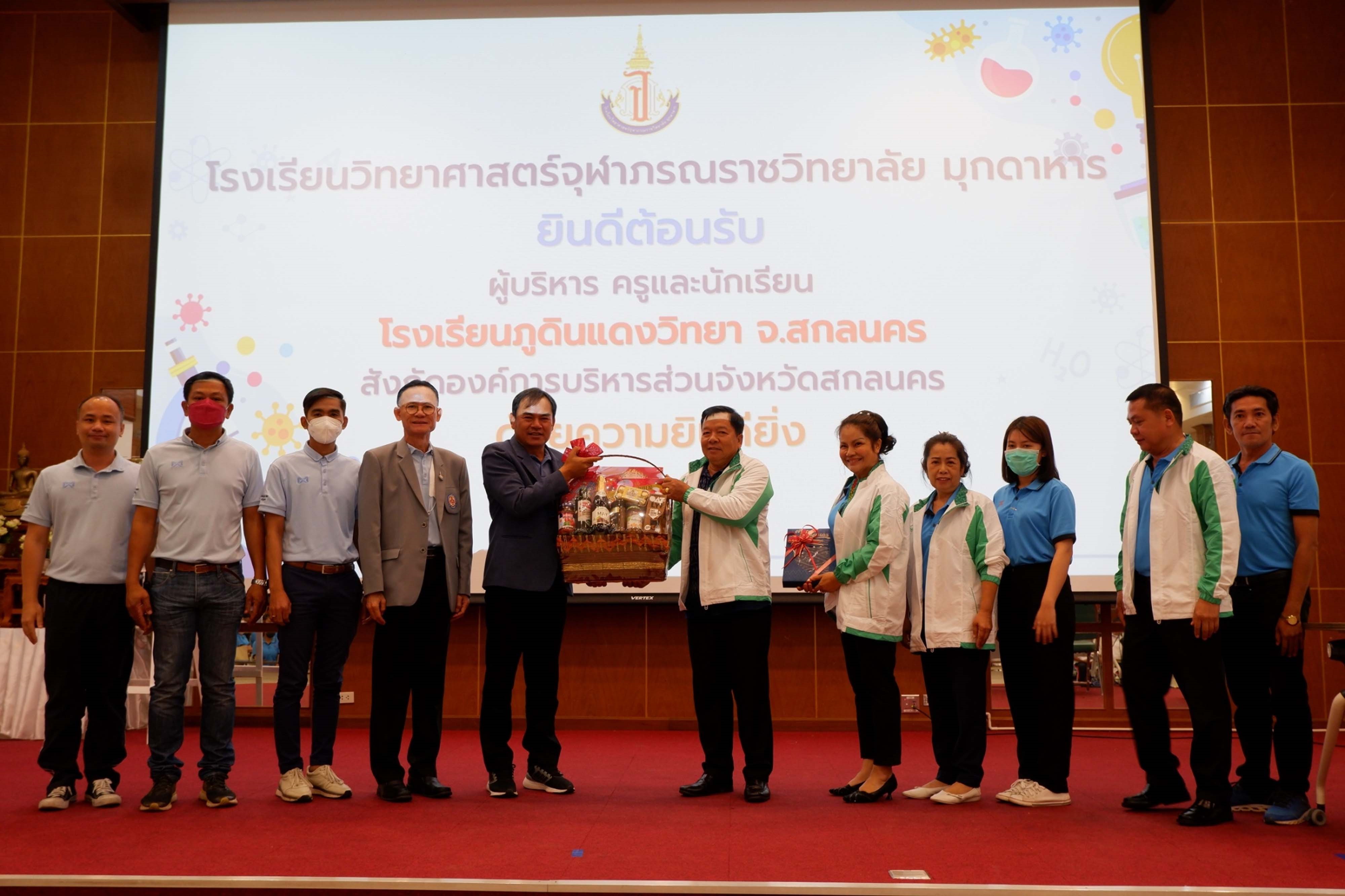 คณะผู้บริหาร ครูบุคลากรโรงเรียนวิทยาศาสตร์จุฬาภรณราชวิทยาลัย มุกดาหาร ร่วมต้อนรับคณะผู้บริหาร ครูและบุคลากรศึกษาดูงานโรงเรียนภูดินแดงวิทยา จังหวัดสกลนคร ในวันที่ 2 ธันวาคม 2565 เวลา 10.00-12.00 น.
