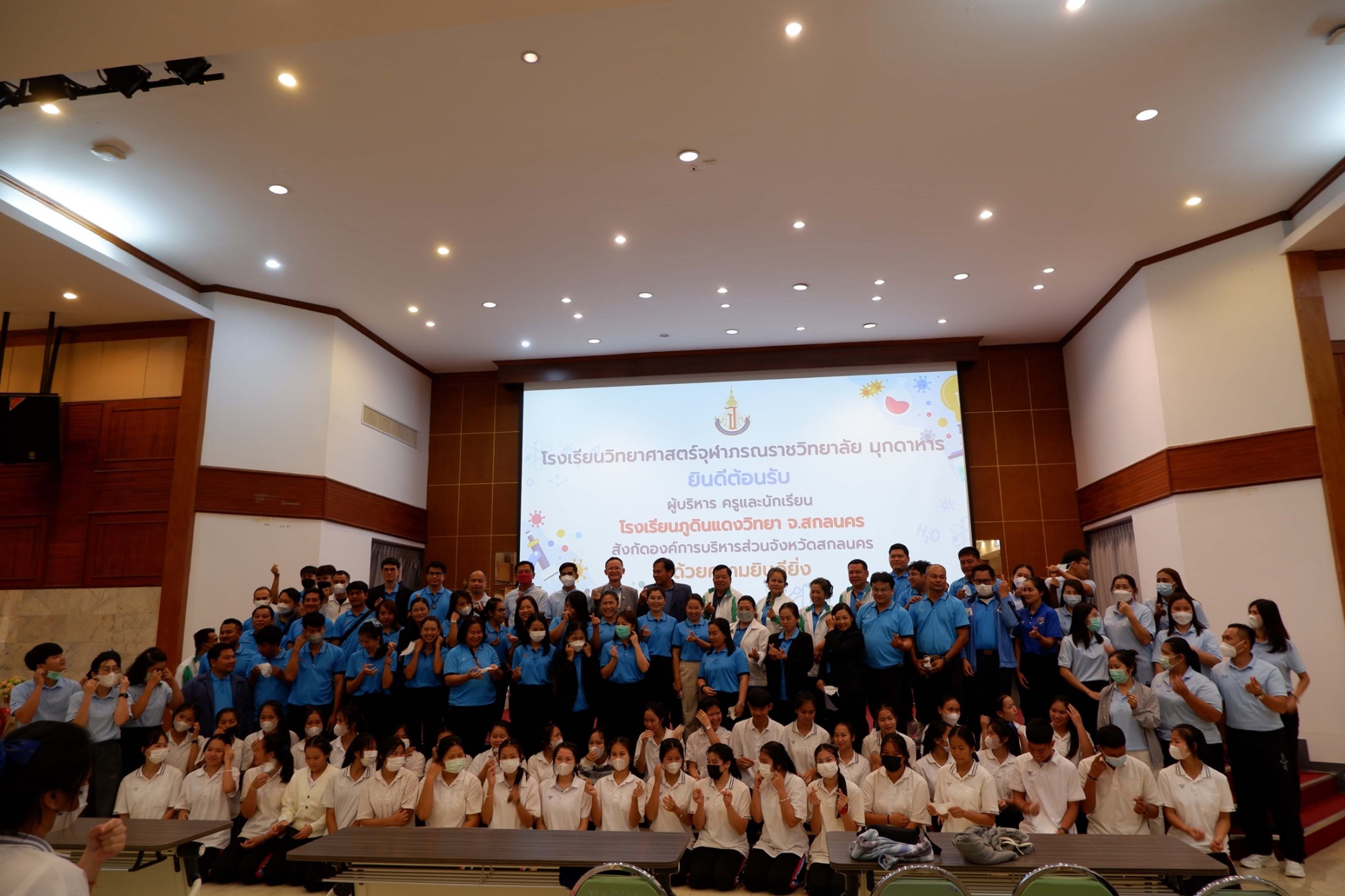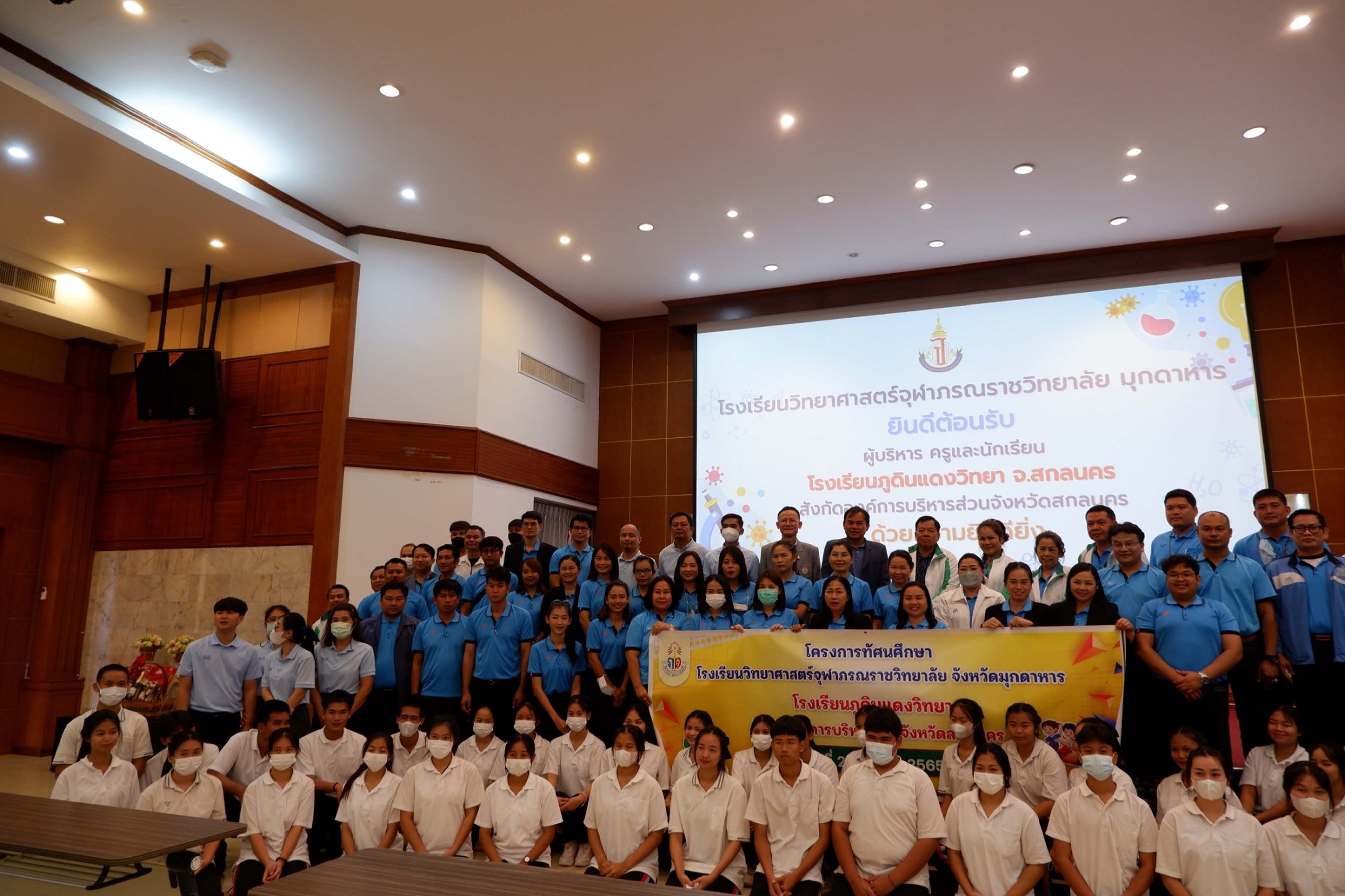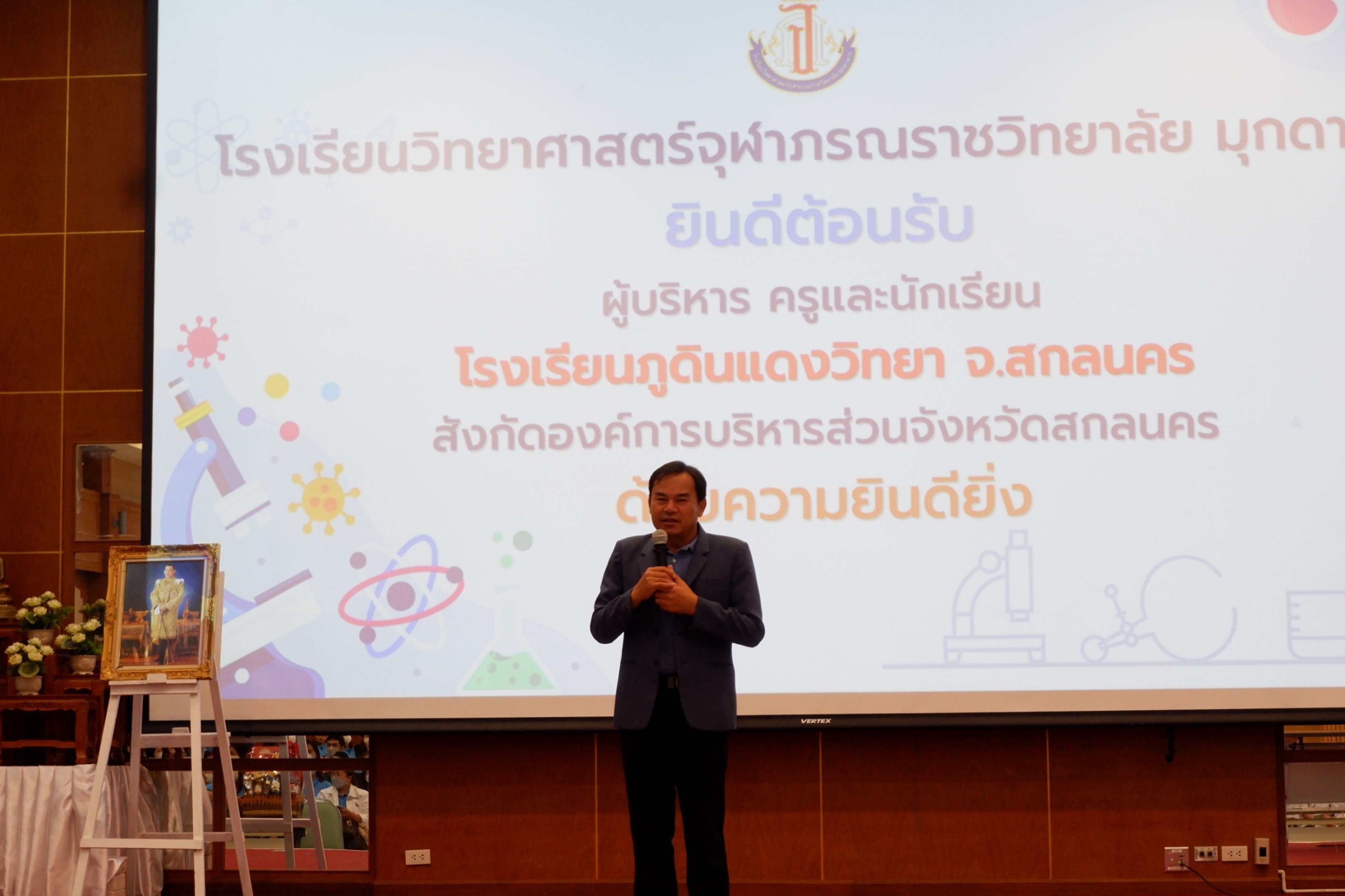 คณะผู้บริหาร ครูบุคลากรโรงเรียนวิทยาศาสตร์จุฬาภรณราชวิทยาลัย มุกดาหาร ร่วมต้อนรับคณะผู้บริหาร ครูและบุคลากรศึกษาดูงานโรงเรียนภูดินแดงวิทยา จังหวัดสกลนคร ในวันที่ 2 ธันวาคม 2565 เวลา 10.00-12.00 น.