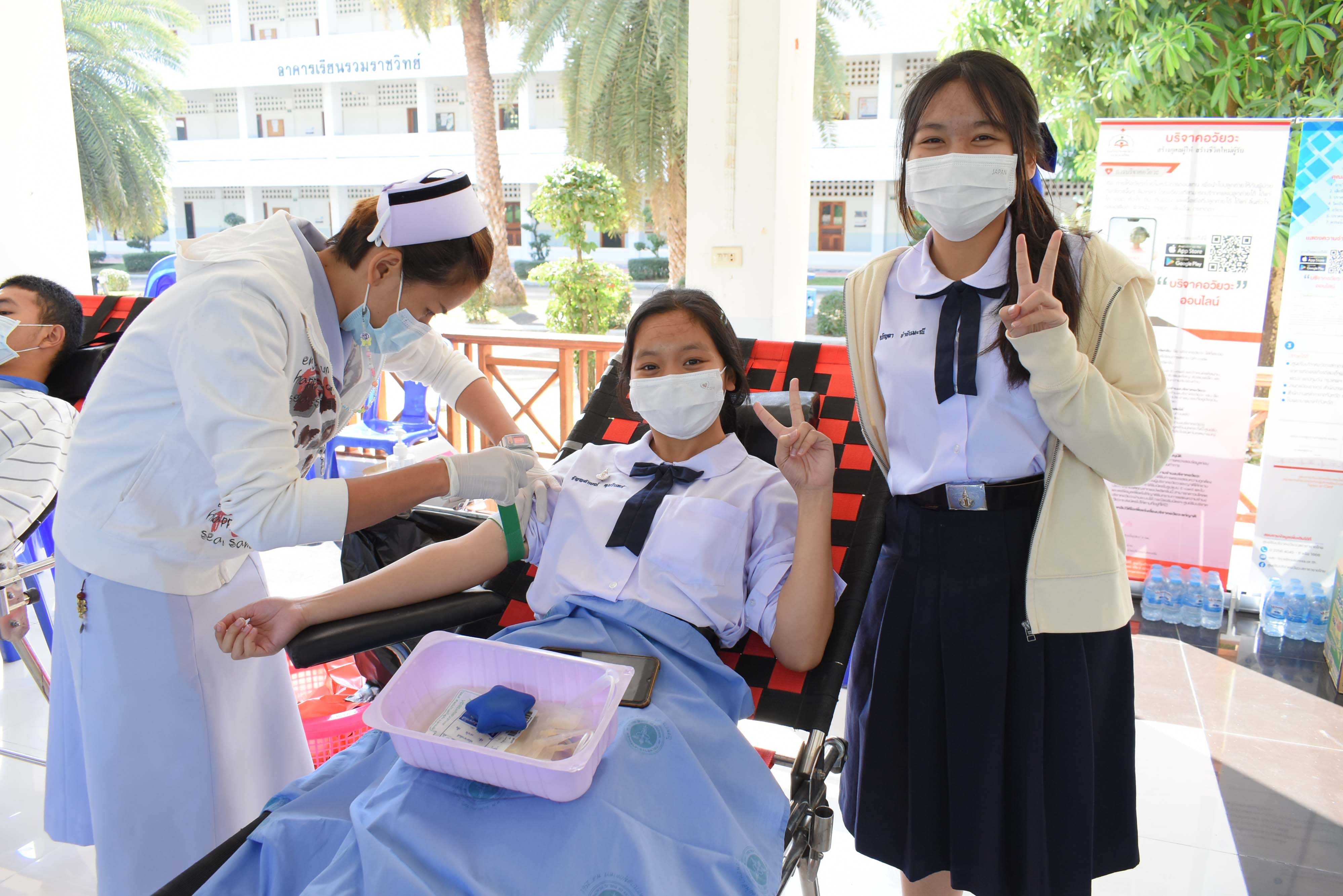 คณะครู บุคลากร และนักเรียนร่วมบริจาคโลหิตและอวัยวะกับหน่วยรับบริจาคสภากาชาดไทยจังหวดมุกดาหาร
