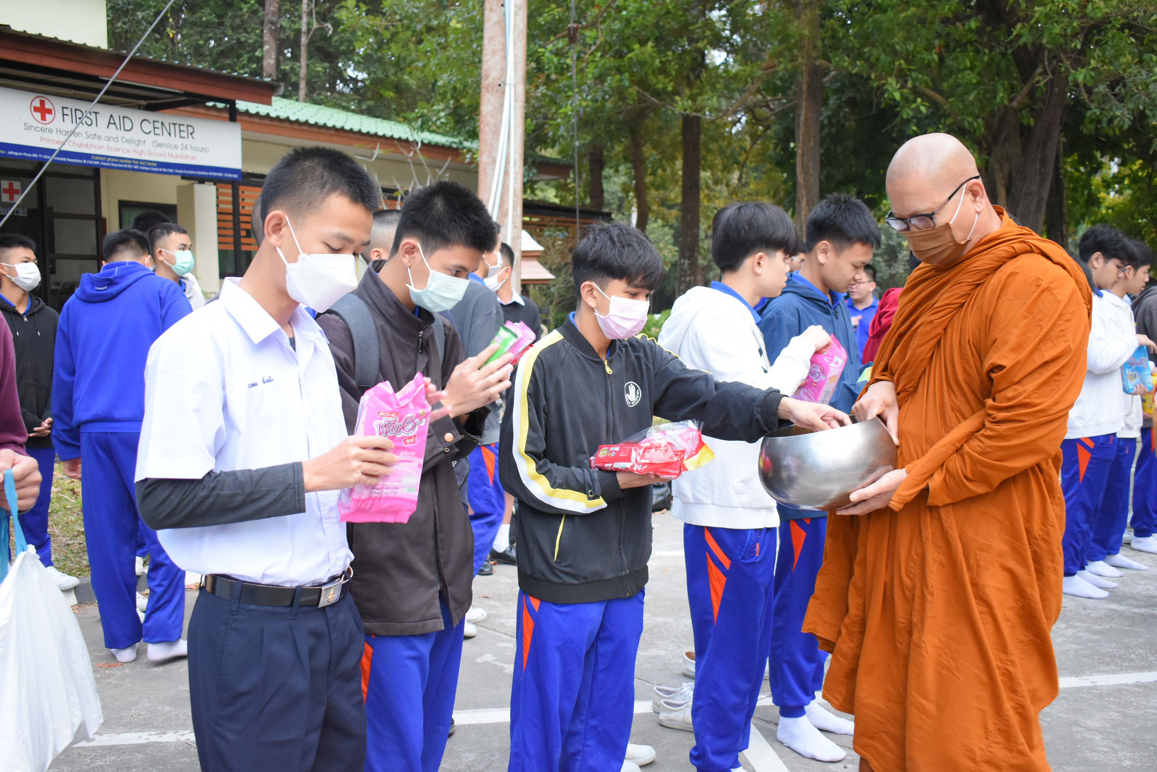 โรงเรียนวิทยาศาสตร์จุฬาภรณราชวิทยาลัย มุกดาหาร จัดกิจกรรมทำบุญตักบาตรเรือนพักนอนนักเรียนประจำ ปีการศึกษา 2565 ครั้งที่ 2 ในวันศุกร์ที่ 6 มกราคม 2565 เวลา 06.30 น. บริเวณสำนักกิจการนักเรียนประจำ