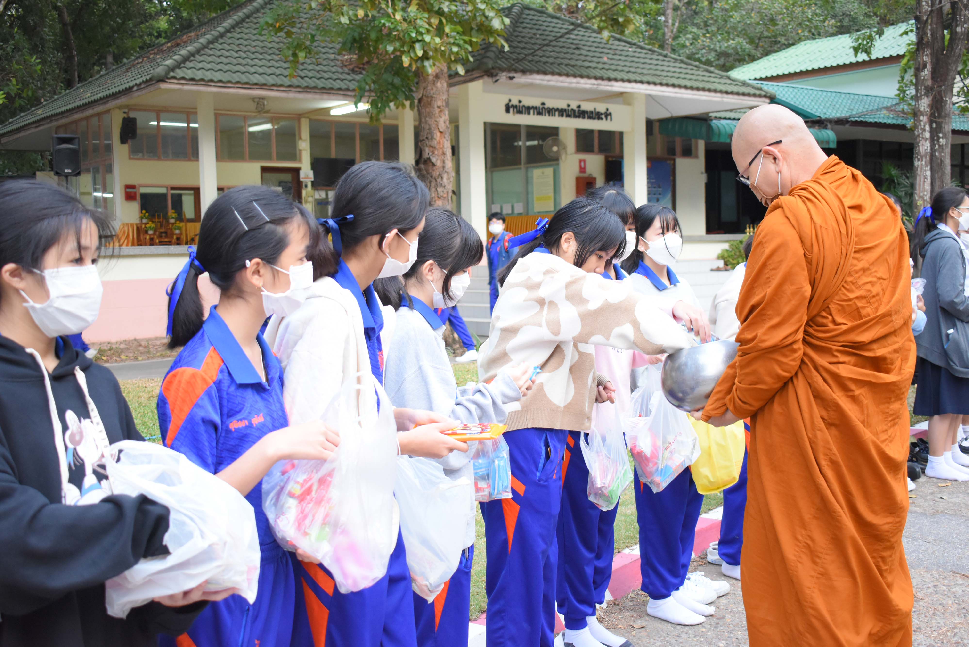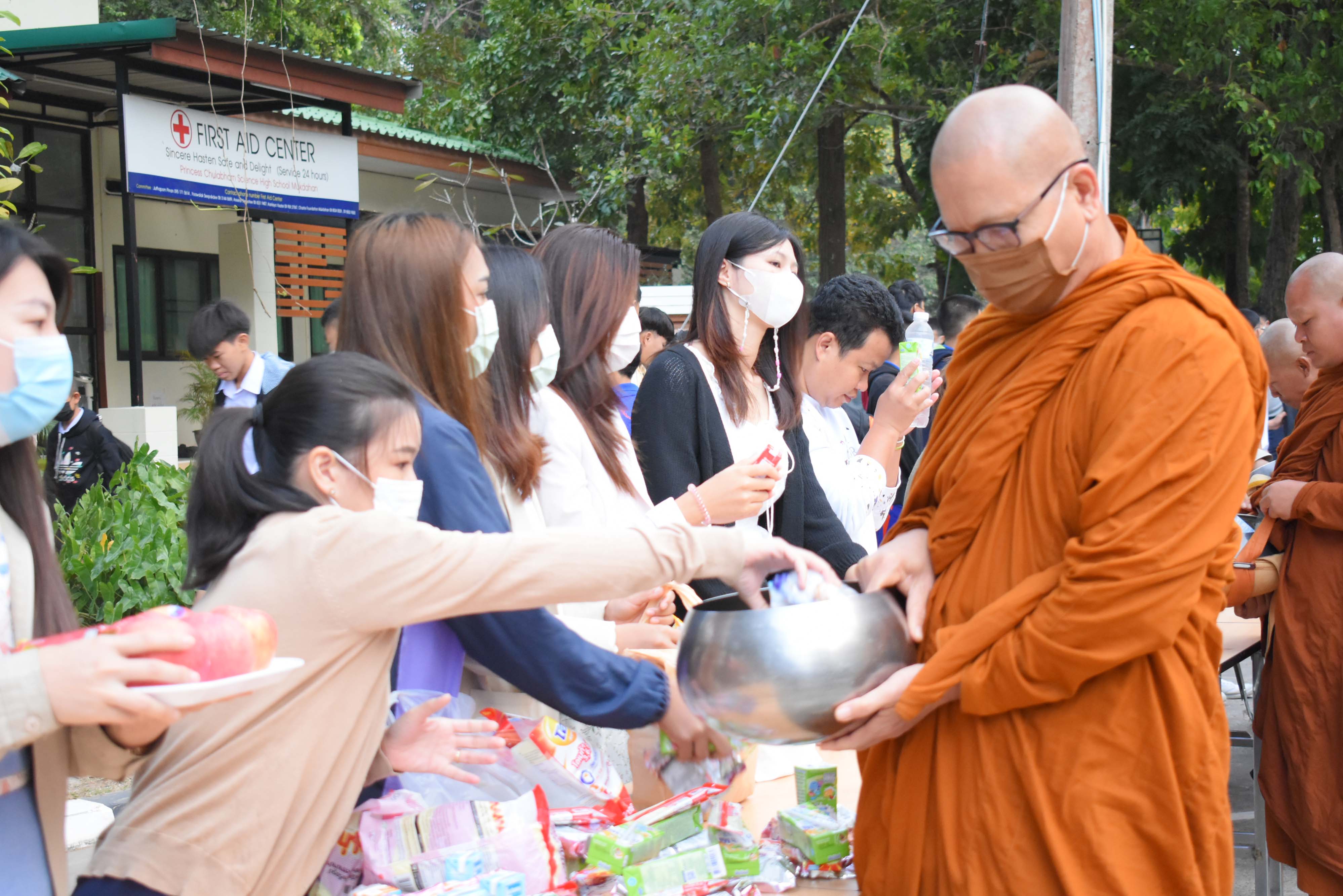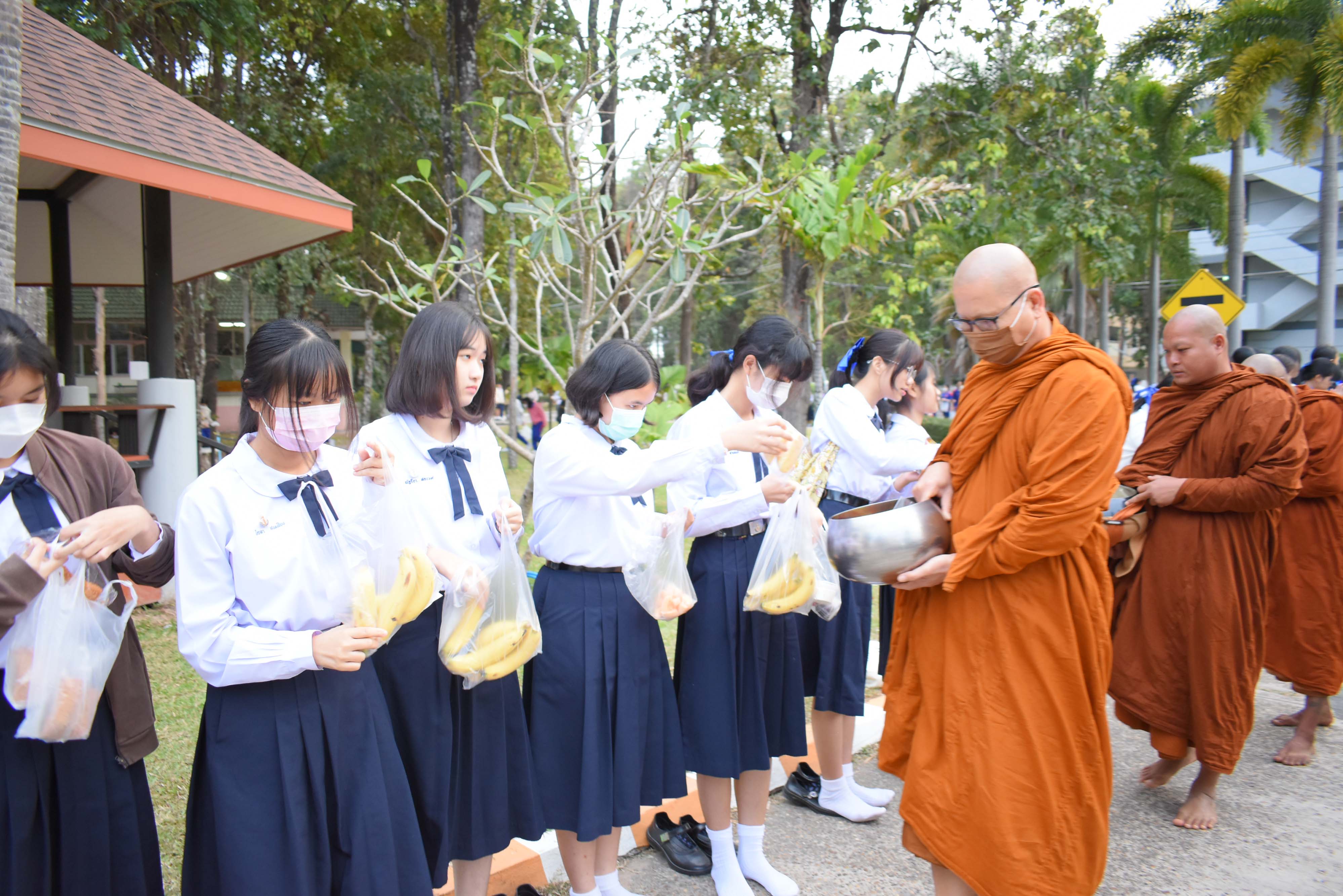 โรงเรียนวิทยาศาสตร์จุฬาภรณราชวิทยาลัย มุกดาหาร จัดกิจกรรมทำบุญตักบาตรเรือนพักนอนนักเรียนประจำ ปีการศึกษา 2565