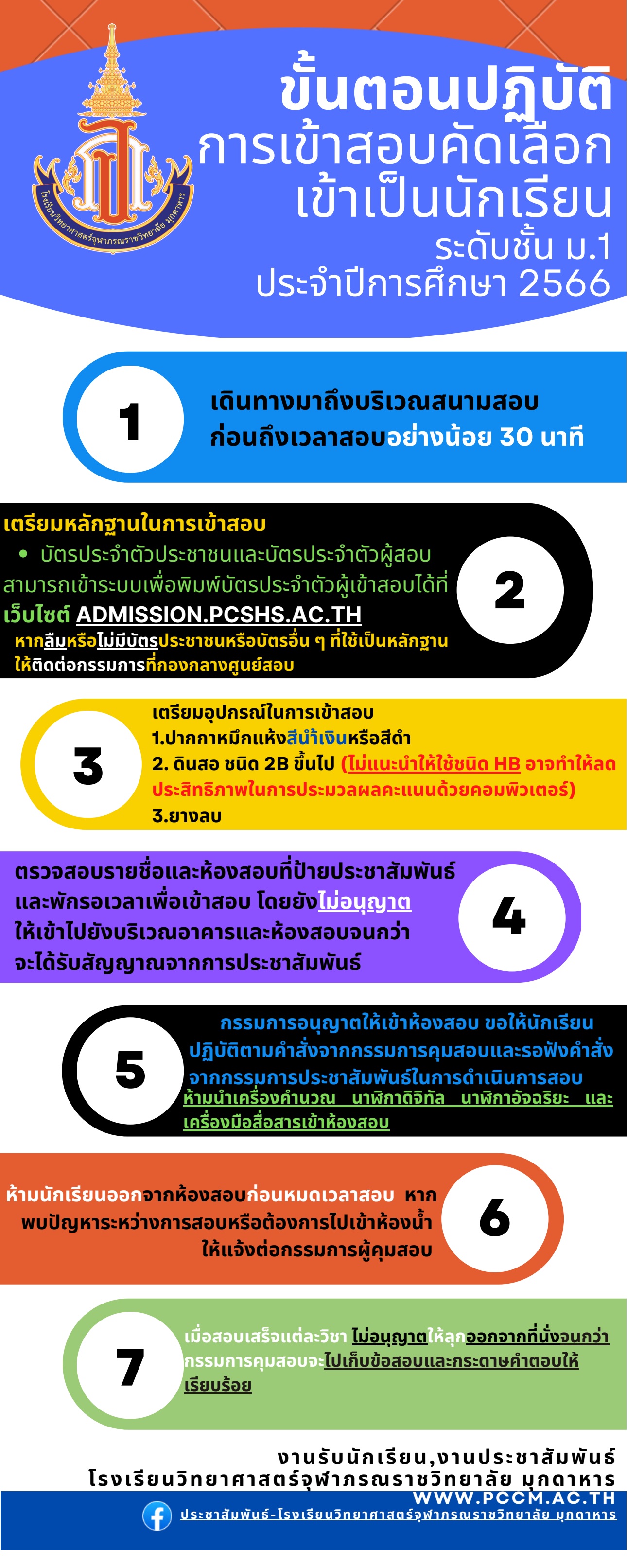 ระเบียบขั้นตอนปฏิบัติในการเข้าสอบคัดเลือกเข้าเป็นนักเรียนระดับชั้นมัธยมศึกษาปีที่ 1 ปีการศึกษา 2566