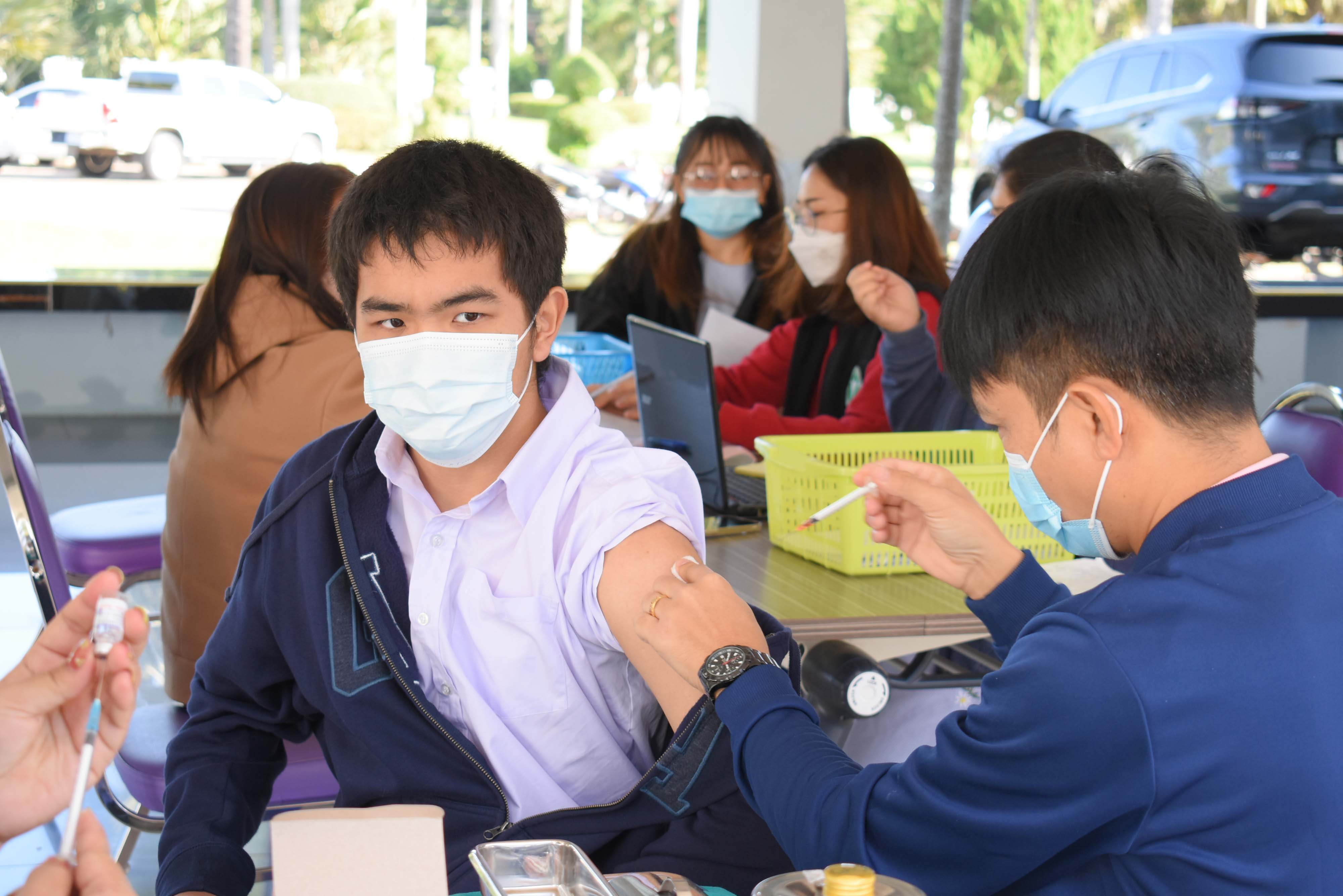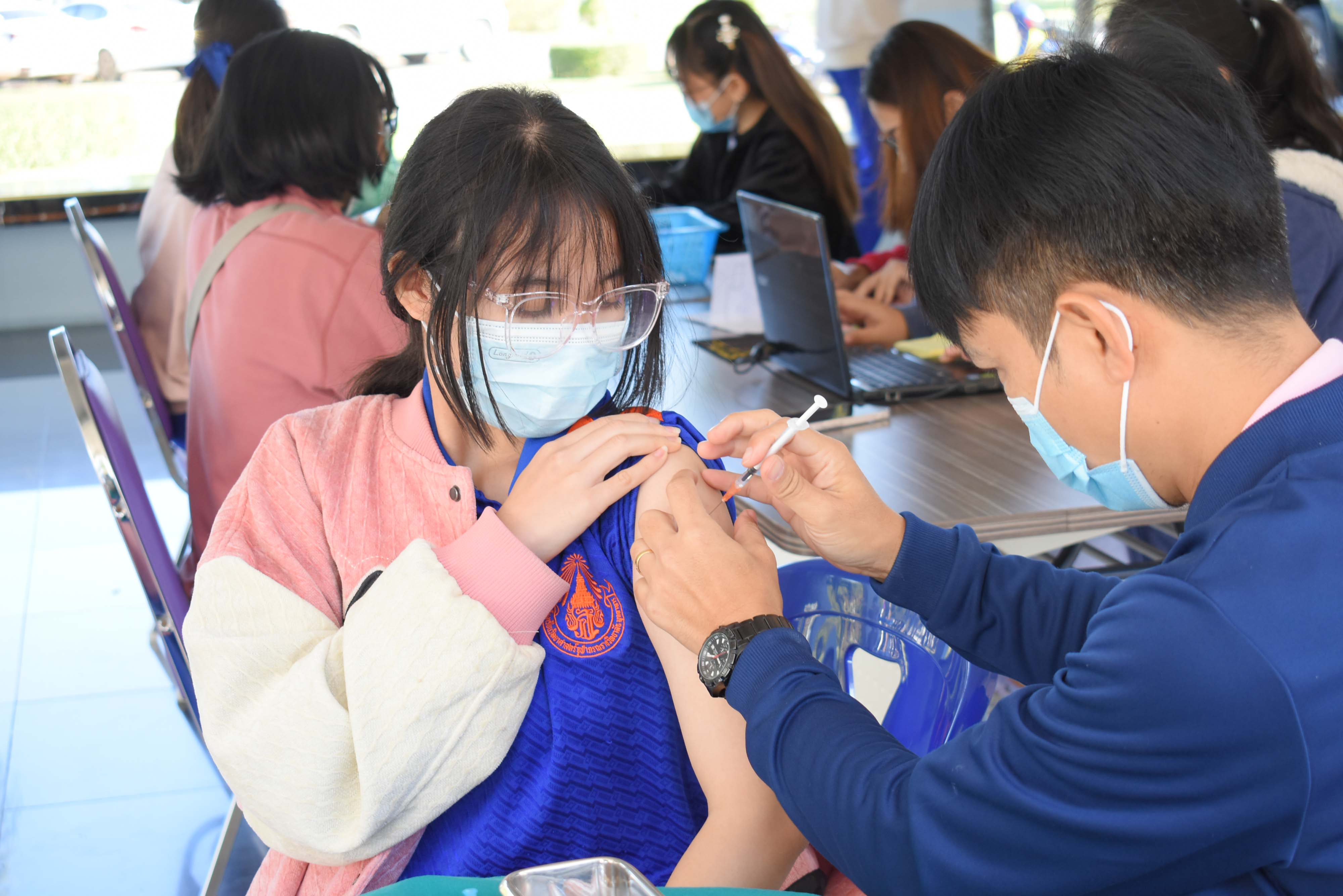 โรงเรียนวิทยาศาสตร์จุฬาภรณราชวิทยาลัย มุกดาหารร่วมกับสาธารณสุขจังหวัดมุกดาหารจัดหน่วยให้บริการฉีดวัคซีนแก่นักเรียน