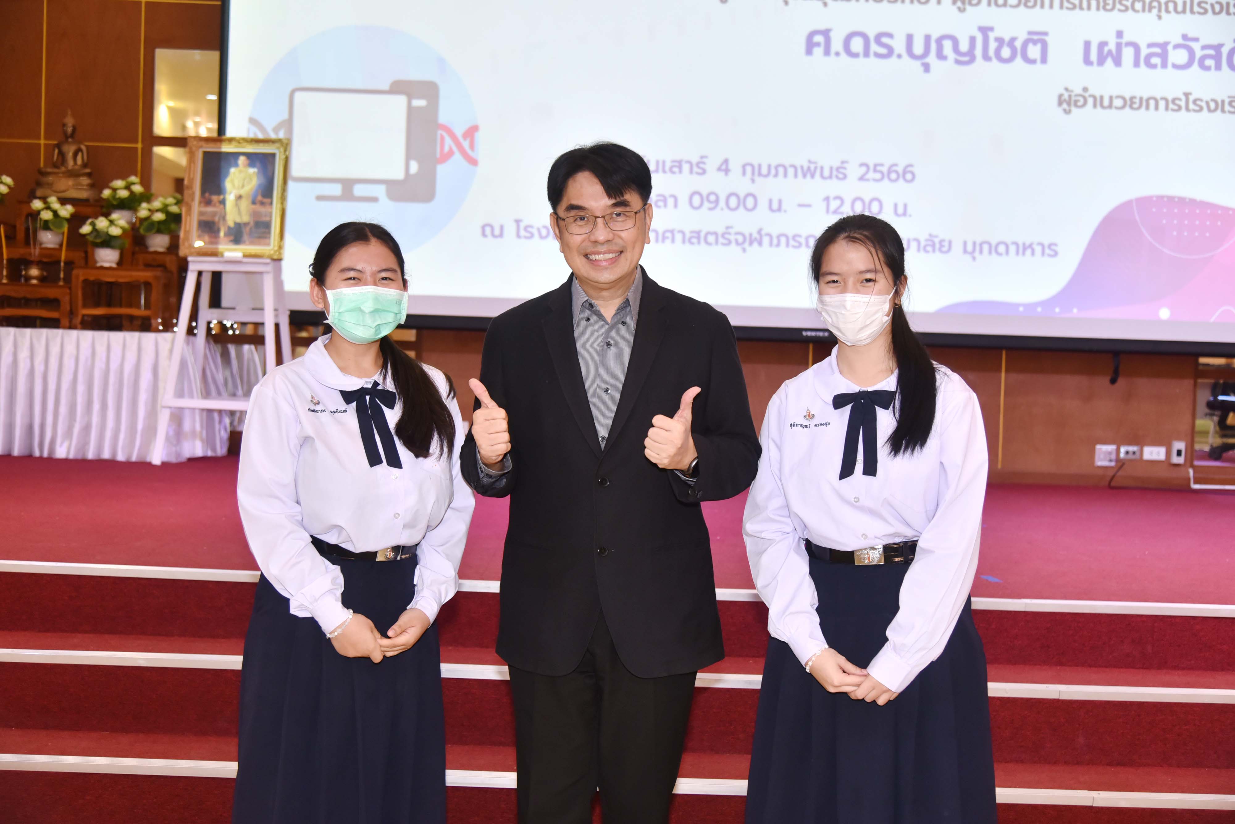 การประชุมผู้ปกครองนักเรียนและการฟังบรรยายพิเศษ โดยท่าน ดร.ธงชัย ชิวปรีชา ผู้ทรงคุณวุฒิที่ปรึกษา ผู้อำนวยการเกียรติคุณโรงเรียนกำเนิดวิทย์ ศ.ดร.บุญโชติ เผ่าสวัสดิ์ยรรยง ผู้อำนวยการโรงเรียนกำเนิดวิทย์ วันเสาร์ 4 กุมภาพันธ์ 2566 เวลา 09.00 น. – 12.00 น.ณ หอประชุมโรงเรียนวิทยาศาสตร์จุฬาภรณราชวิทยาลัย มุกดาหารและผ่านช่องทางออนไลน์