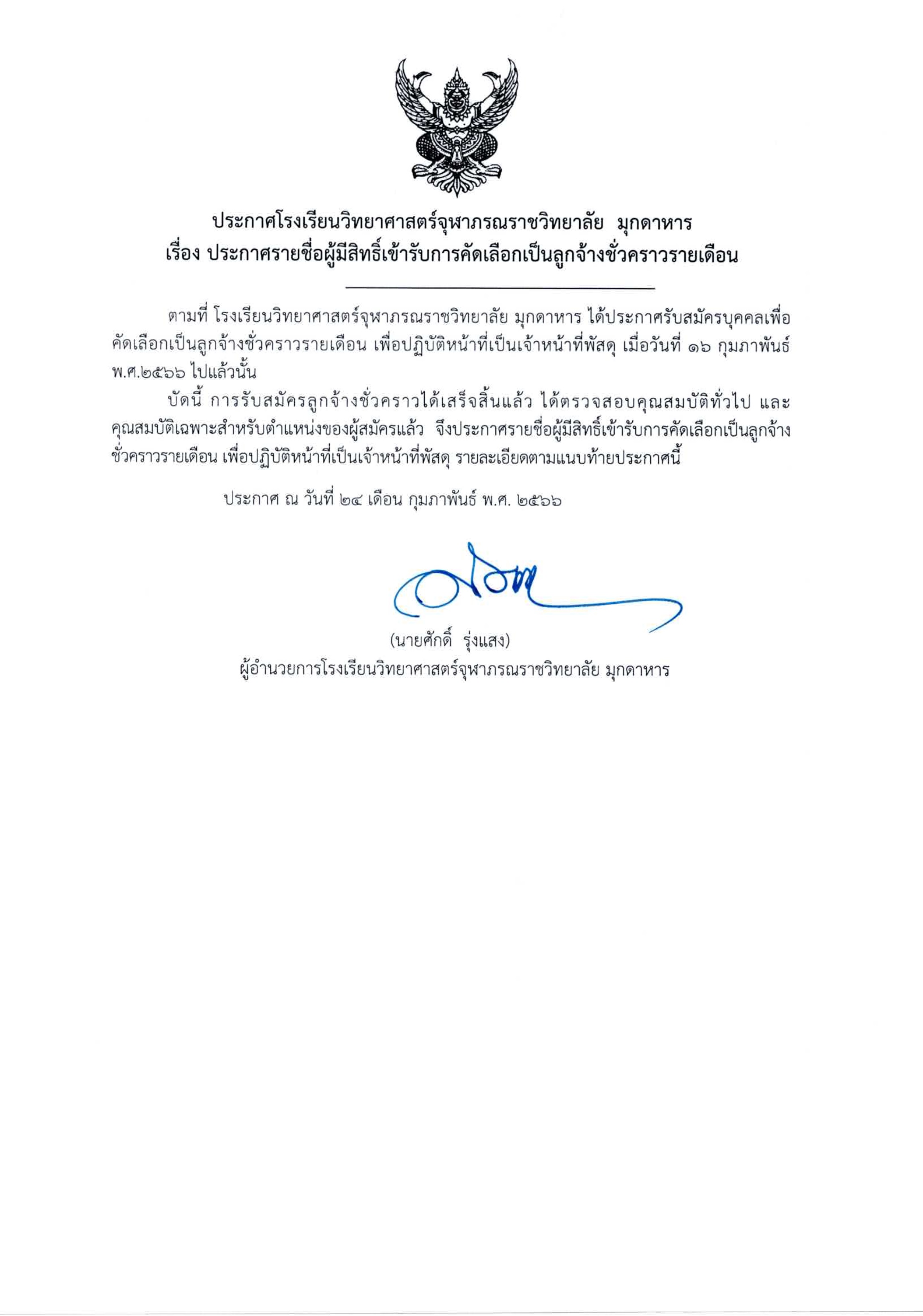 ประกาศรายชื่อผู้มีสิทธิ์เข้ารับการคัดเลือกเป็นลูกจ้างชั่วคราว ตำแหน่งเจ้าหน้าที่พัสดุ