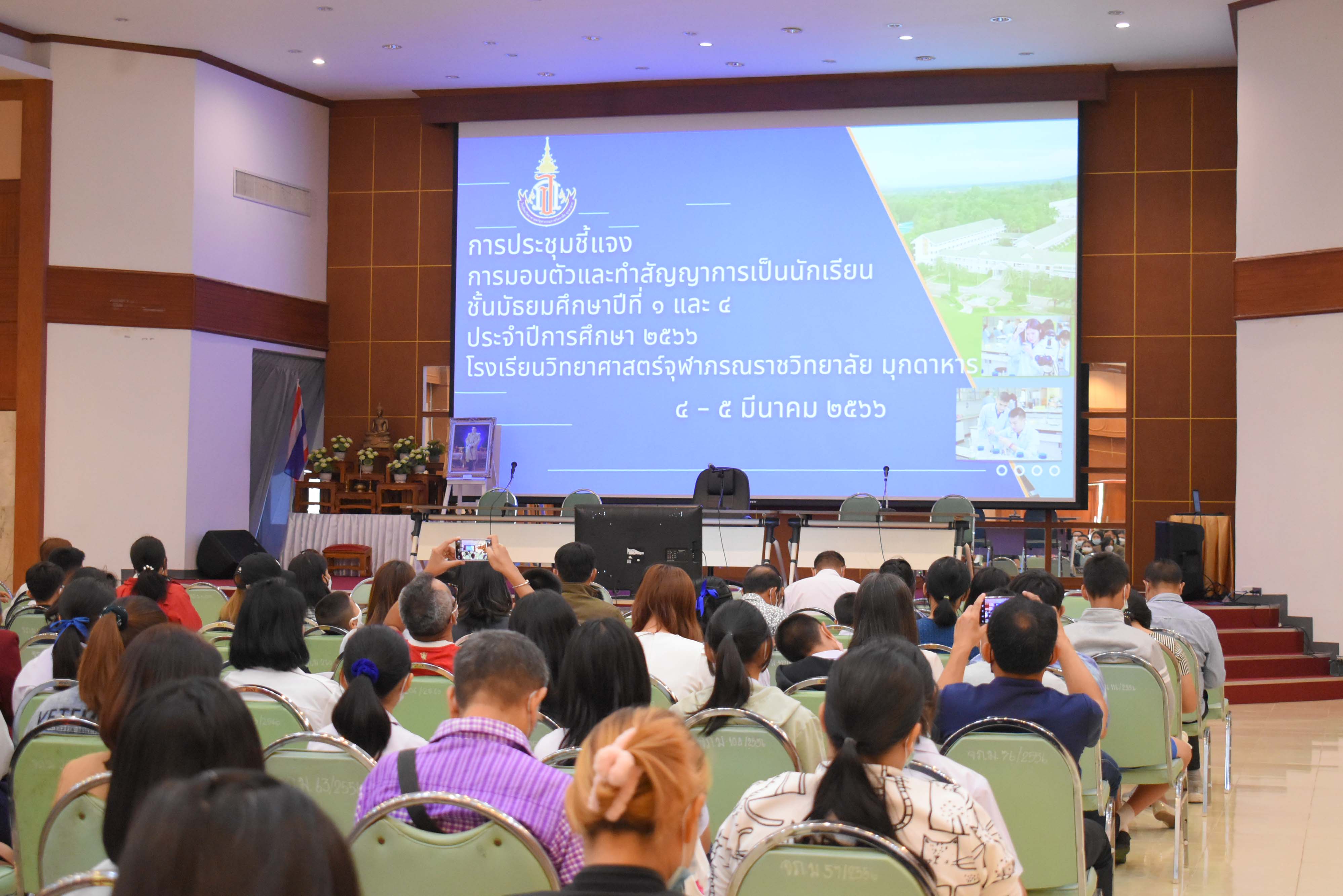 บรรยากาศการรายงานตัวเข้าเรียนชั้น ม.1 และ ม.4 โรงเรียนวิทยาศาสตร์จุฬาภรณราชวิทยาลัย มุกดาหาร ปีการศึกษา 2566