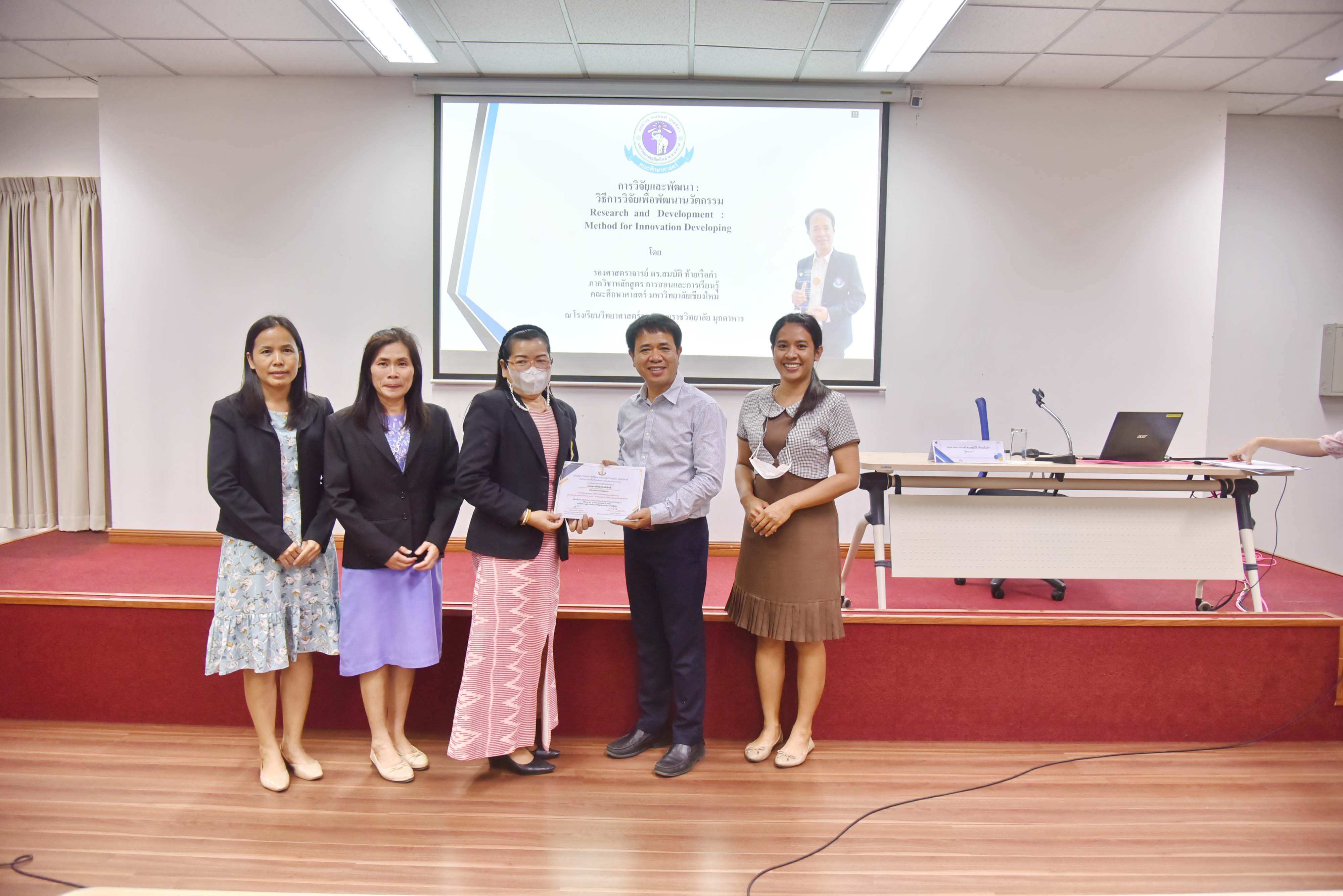 การอบรมเชิงปฏิบัติการเรื่องการวิจัยและพัฒนา วิธีการวิจัยเพื่อพัฒนานวัตกรรม โดย รศ.ดร.สมบัติ ท้ายเรือคำ