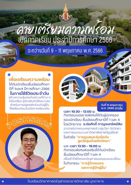 กิจกรรมค่ายเตรียมความพร้อมก่อนเปิดภาคเรียน ประจำปีการศึกษา 2566 ของนักเรียนชั้นมัธยมศึกษาปีที่ 1 และ มัธยมศึกษาปีที่ 4 ระหว่างวันที่ 9 ถึง 11 พฤษภาคม 2566