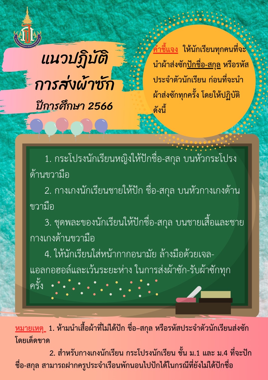 แนวปฏิบัติการส่งผ้าซัก ปีการศึกษา 2566 โรงเรียนวิทยาศาสตร์จุฬาภรณราชวิทยาลัย มุกดาหาร