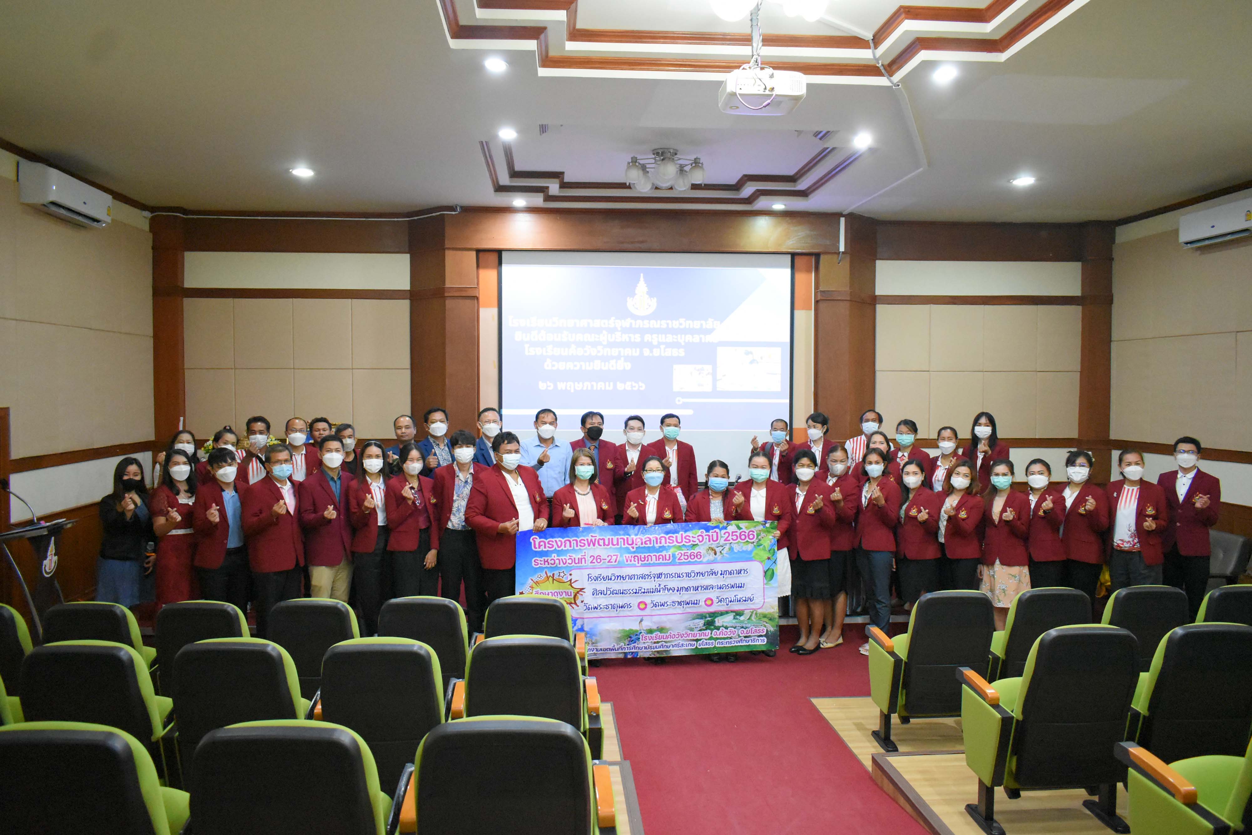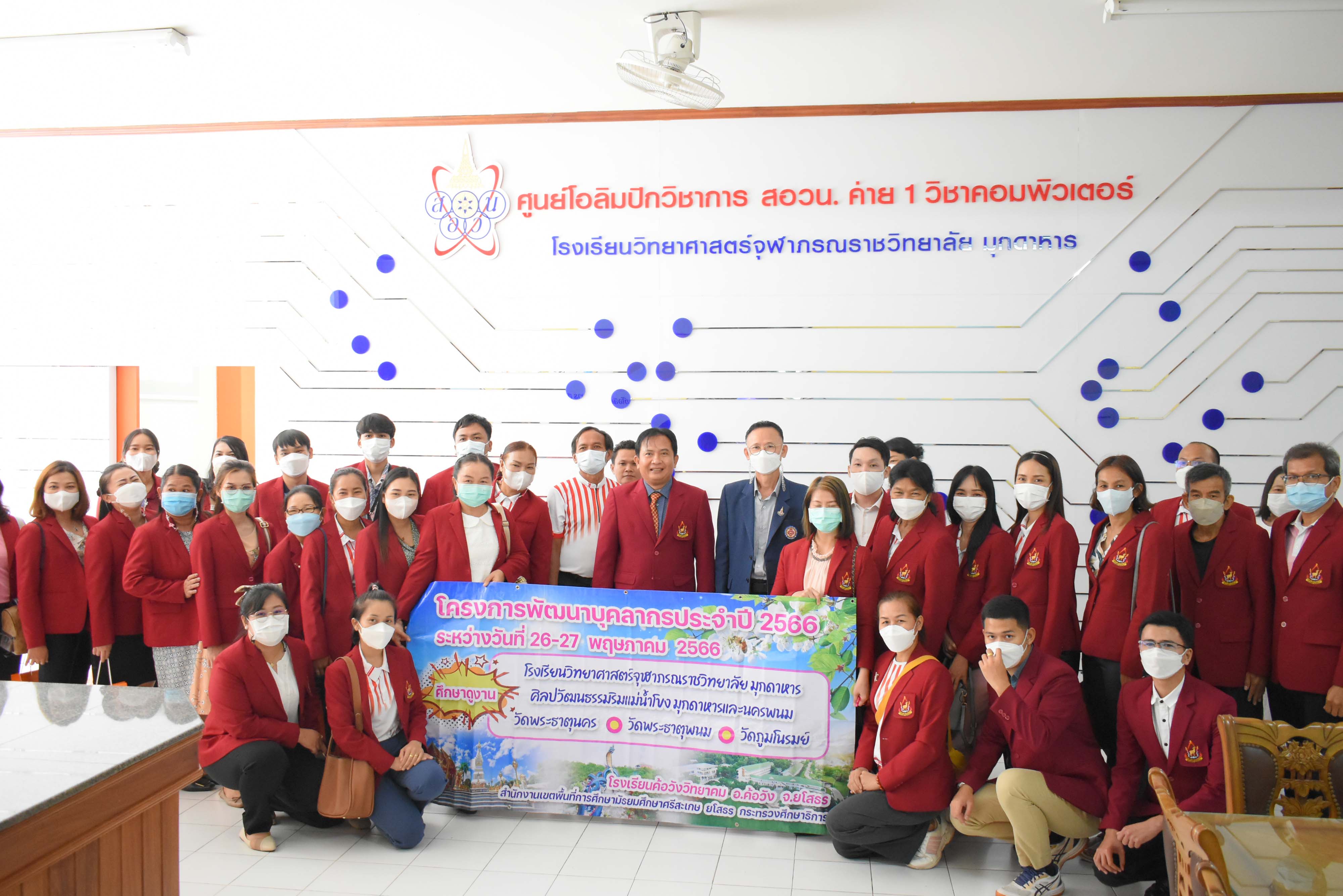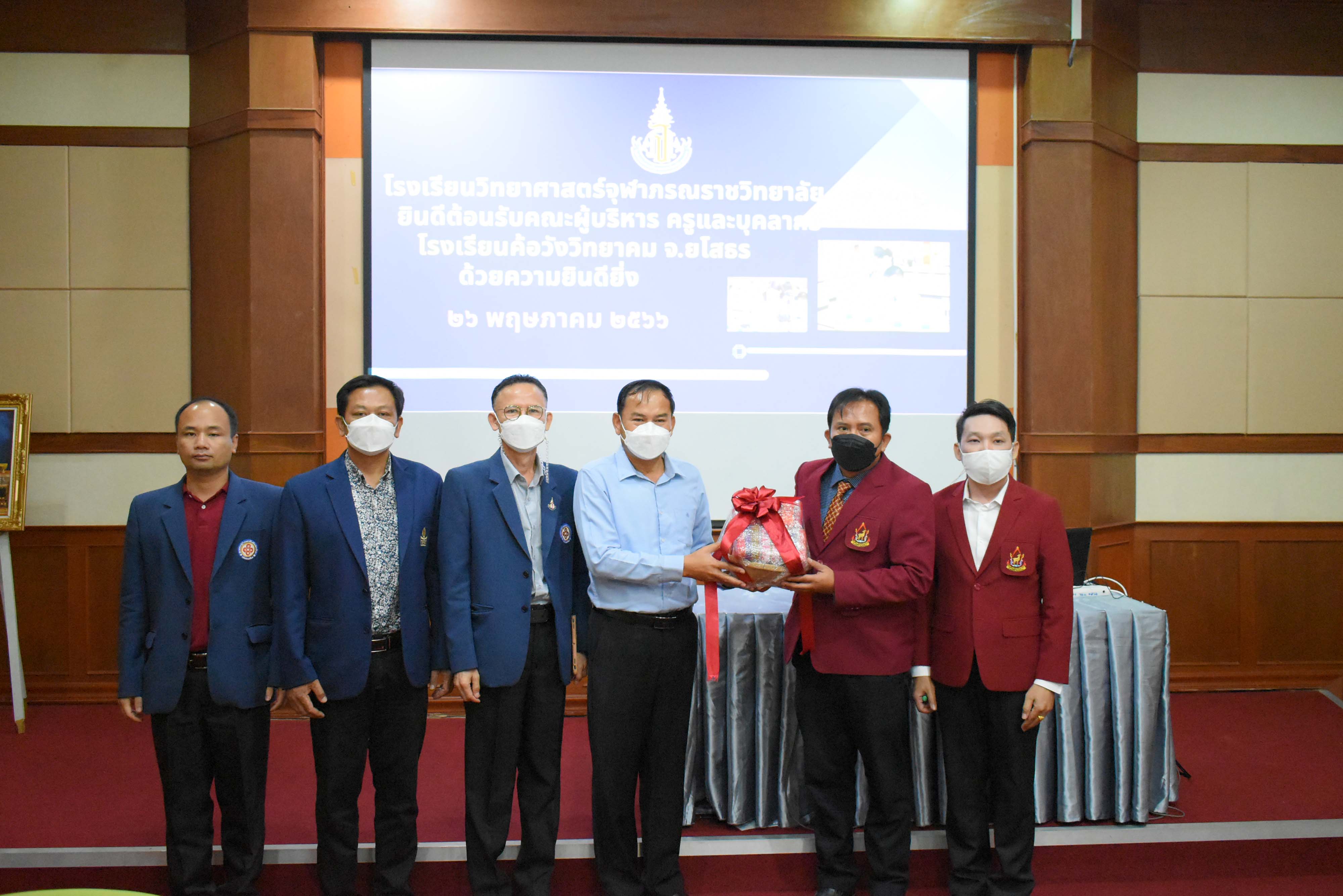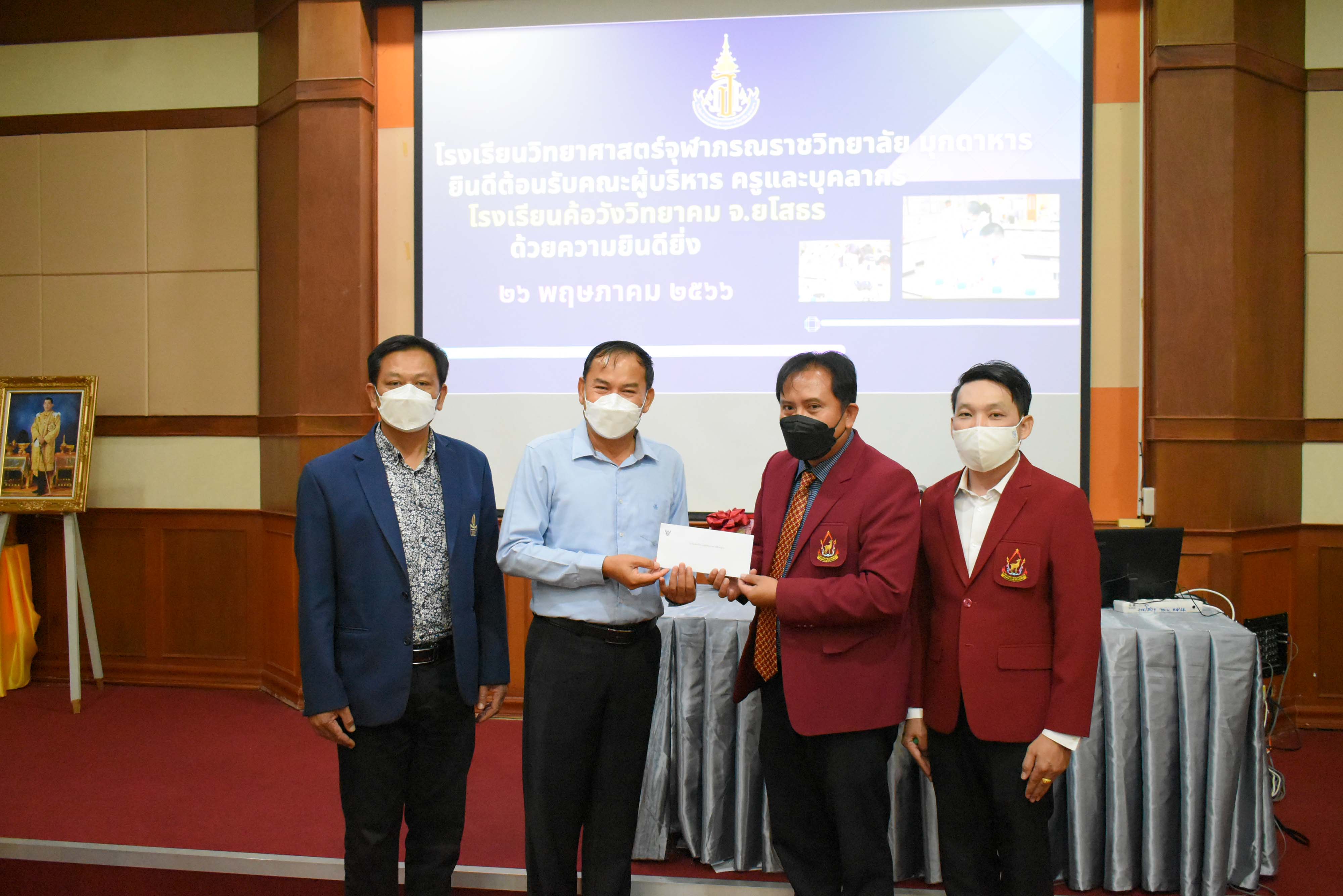 คณะผู้บริหาร ครู และบุคลากรโรงเรียนวิทยาศาสตร์จุฬาภรณราชวิทยาลัย มุกดาหาร ร่วมต้อนรับคณะผู้เข้าศึกษาดูงานจากโรงเรียนค้อวังวิทยาคม จังหวัดยโสธร ในวันศุกร์ที่ 26 พฤษภาคม 2566 เวลา 09.00-11.00 น. ณ ห้องฉายภาพยนต์ อาคารปฏิบัติการคอมพิวเตอร์
