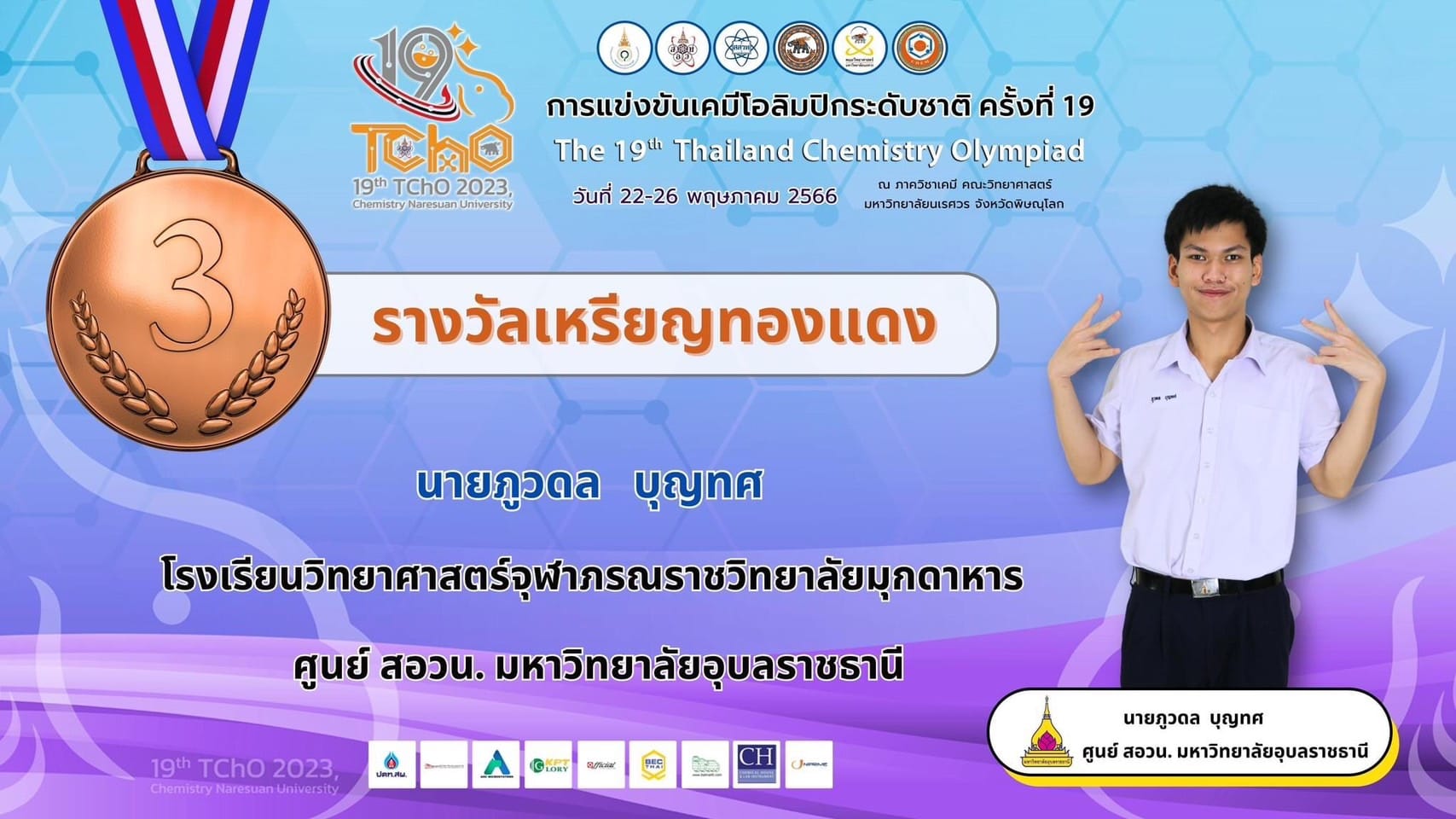 - เหรียญทองแดง นายภูวดล บุญทศ นักเรียนชั้นมัธยมศึกษาปีที่ 6