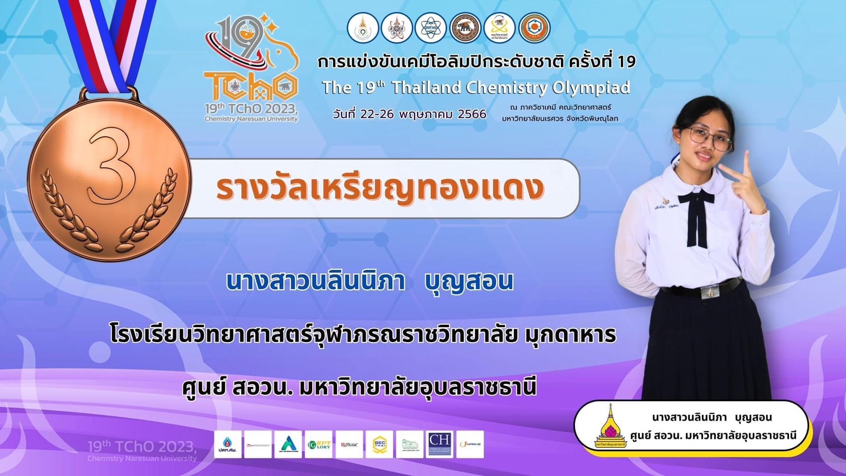 - เหรียญทองแดง นางสาวนลินนิภา บุญสอน นักเรียนชั้นมัธยมศึกษาปีที่ 6