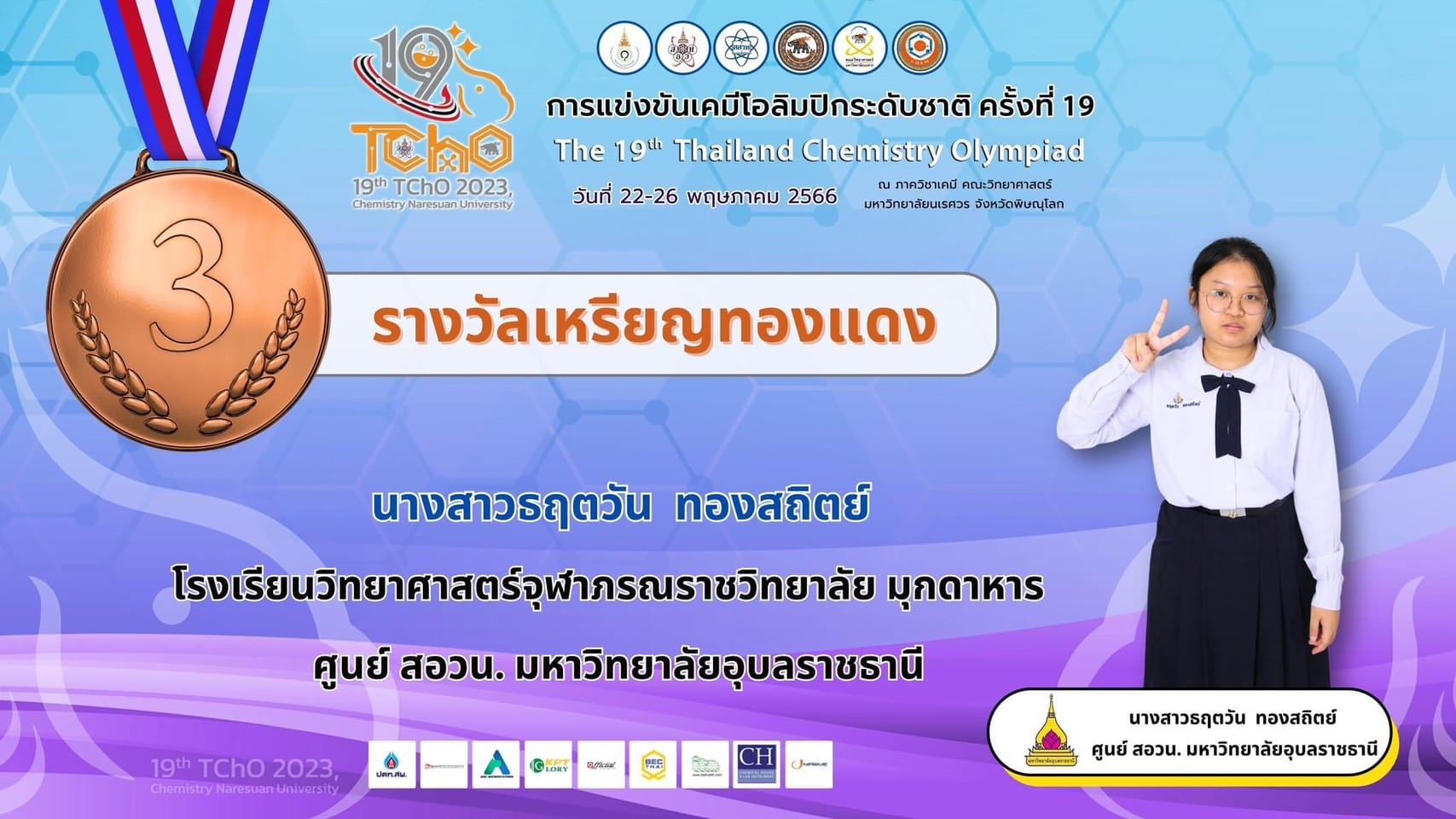 - เหรียญทองแดง นางสาวธฤตวัน ทองสถิตย์ นักเรียนชั้นมัธยมศึกษาปีที่ 6