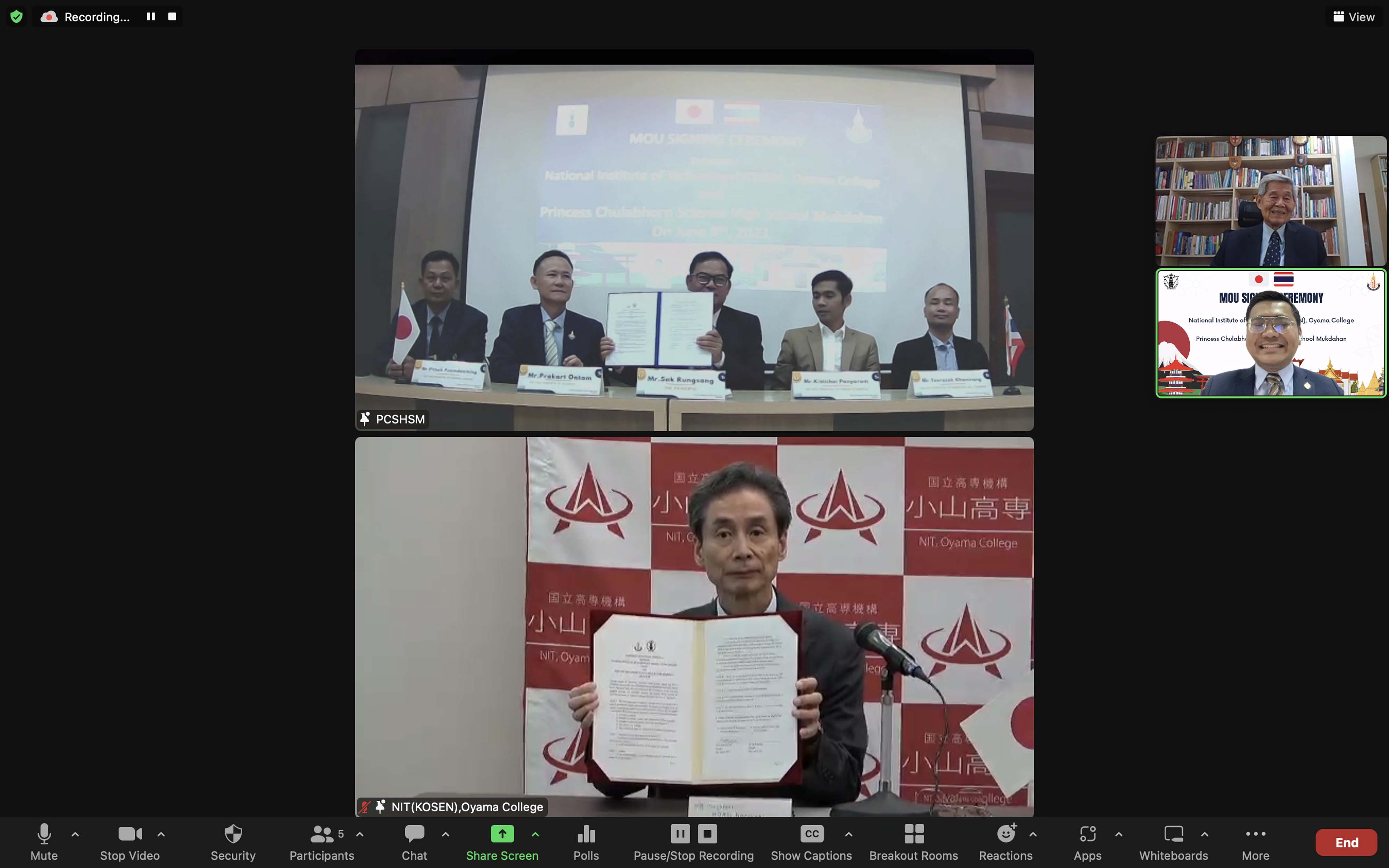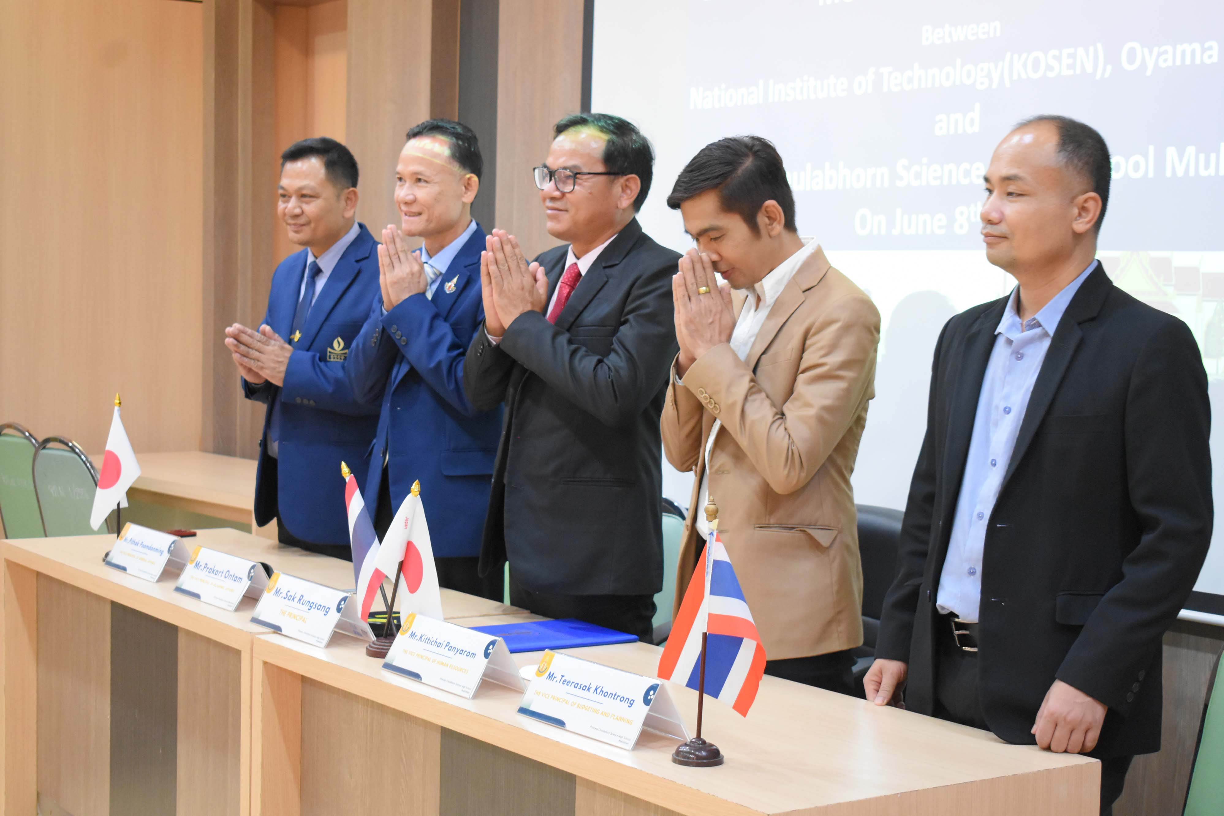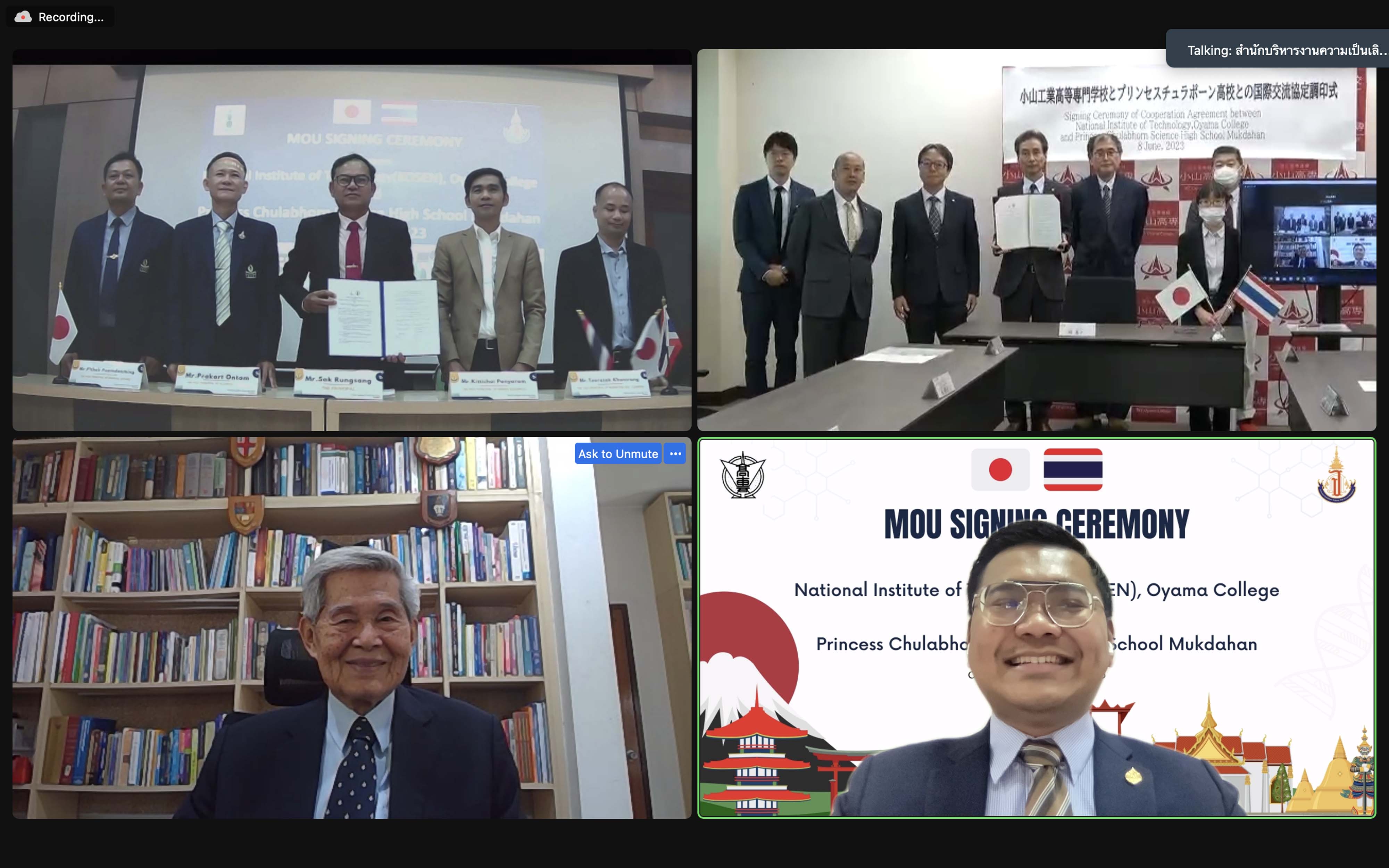 โรงเรียนวิทยาศาสตร์จุฬาภรณราชวิทยาลัย มุกดาหาร ร่วมลงนามความร่วมมือทางวิชาการกับสถาบัน OYAMA KOSEN ประเทศญี่ปุ่น ผ่านการประชุมทางวีดีโอออนไลน์ ในวันพฤหัสบดีที่ 8 มิถุนายน 2566 เวลา 13.00 น. ตามเวลาในประเทศไทย