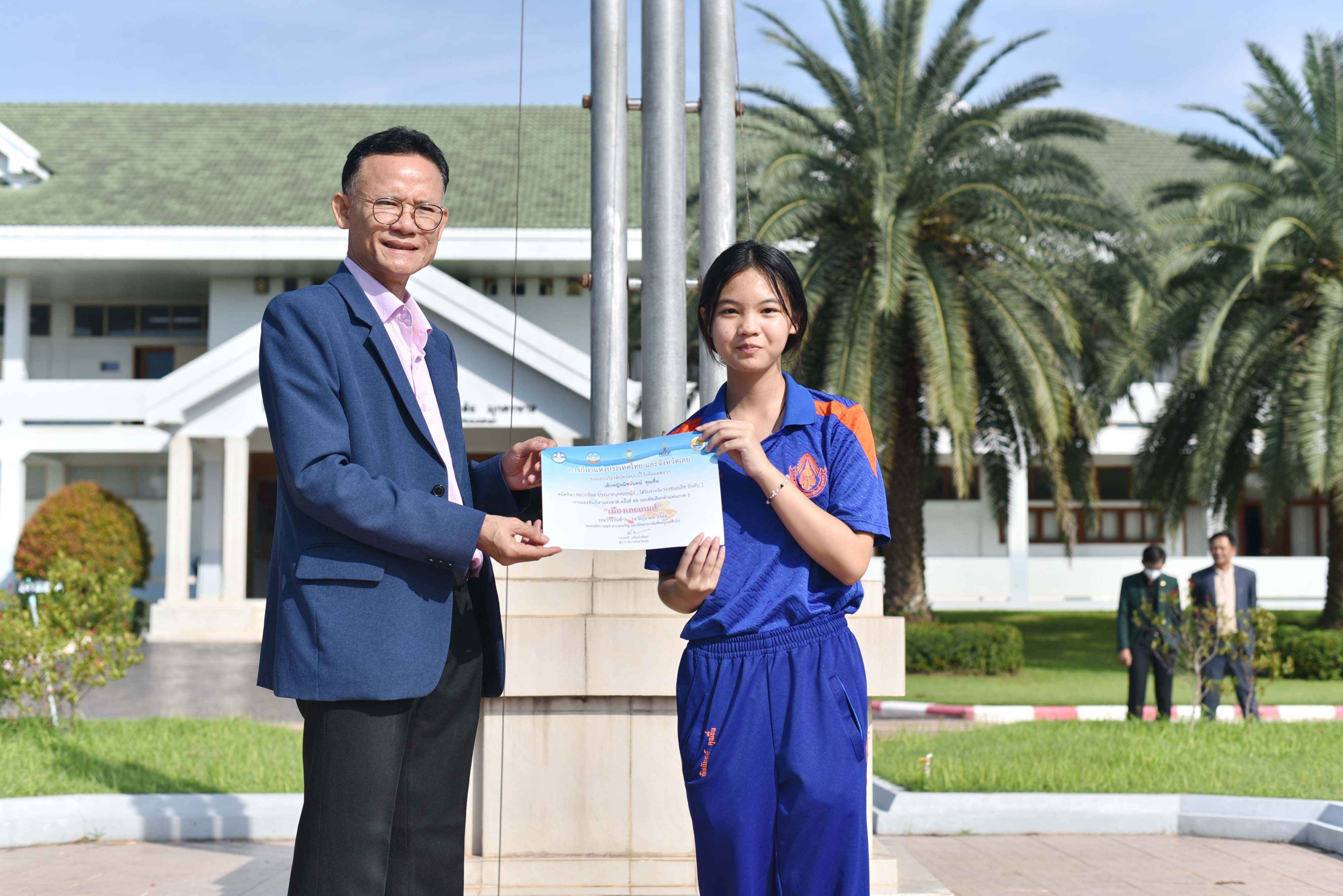 แสดงความยินดีกับนักเรียนที่ได้รับรางวัลการแข่งขันกีฬา บาสเกตบอล วูซูยุทธลีลา และหมากล้อม