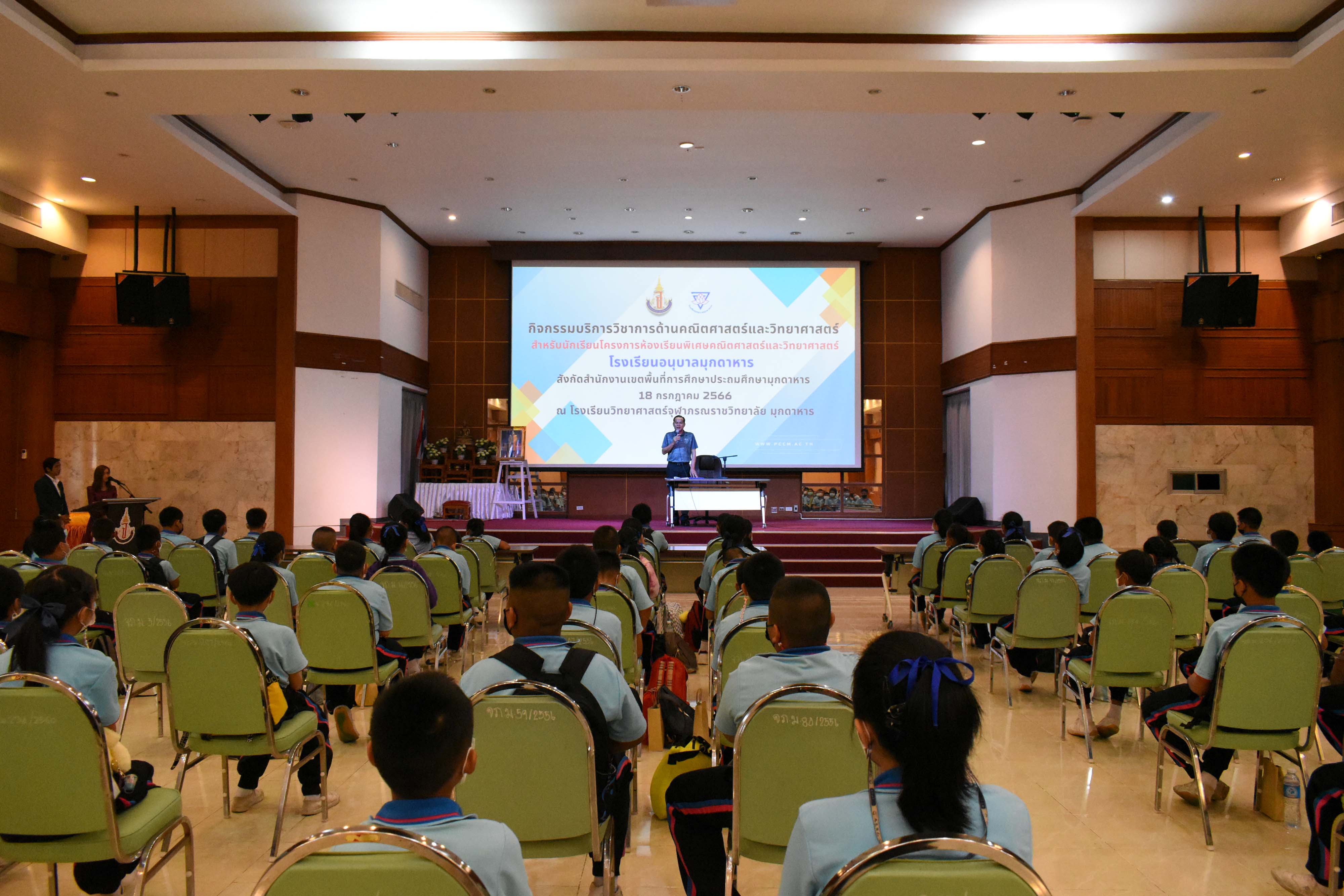 กิจกรรมบริการวิชาการด้านคณิตศาสตร์และวิทยาศาสตร์ สำหรับนักเรียนโรงเรียนอนุบาลมุกดาหาร จังหวัดมุกดาหาร ในวันอังคารที่ 18 กรกฎาคม 2566 เวลา 08.30-16.00 น.