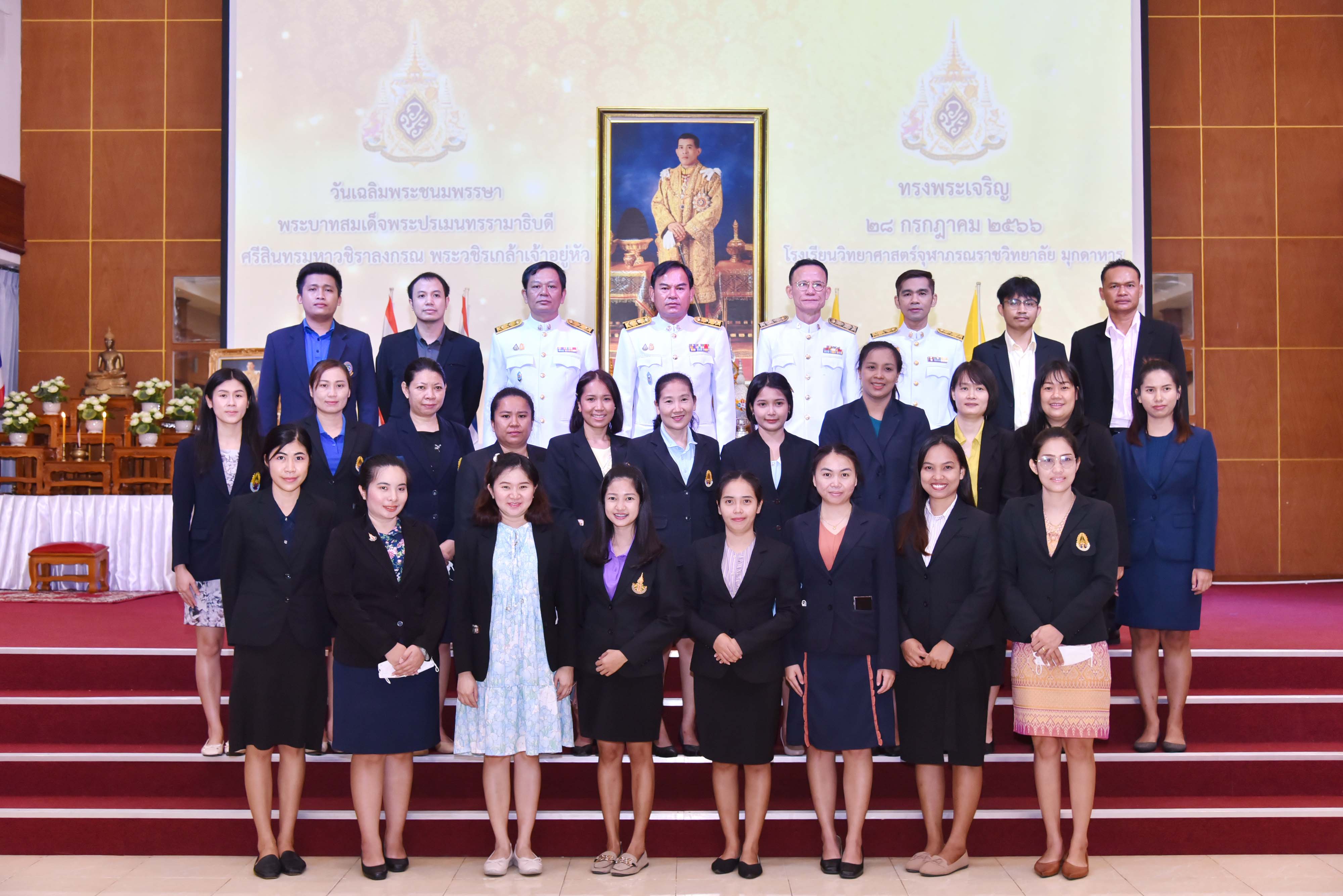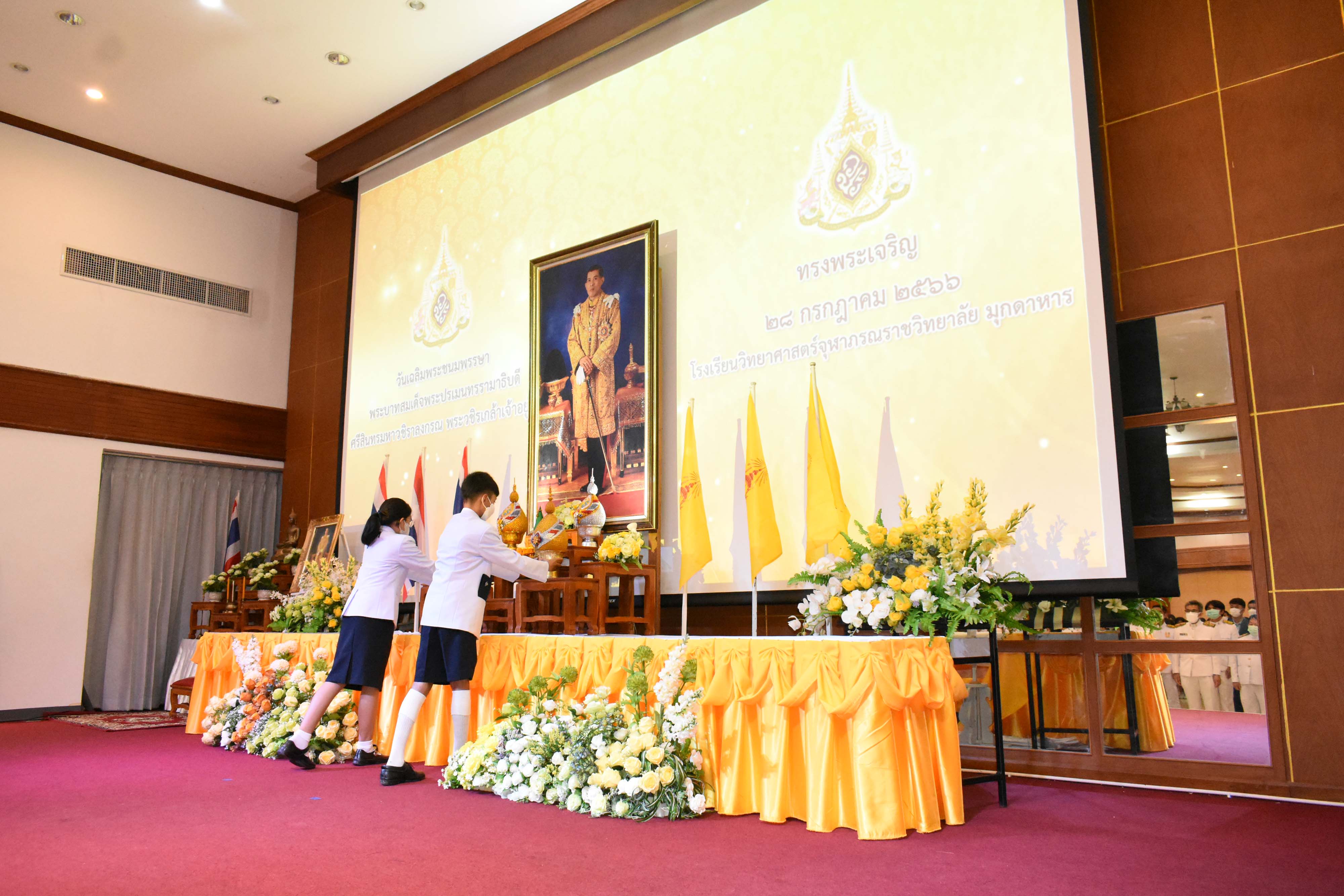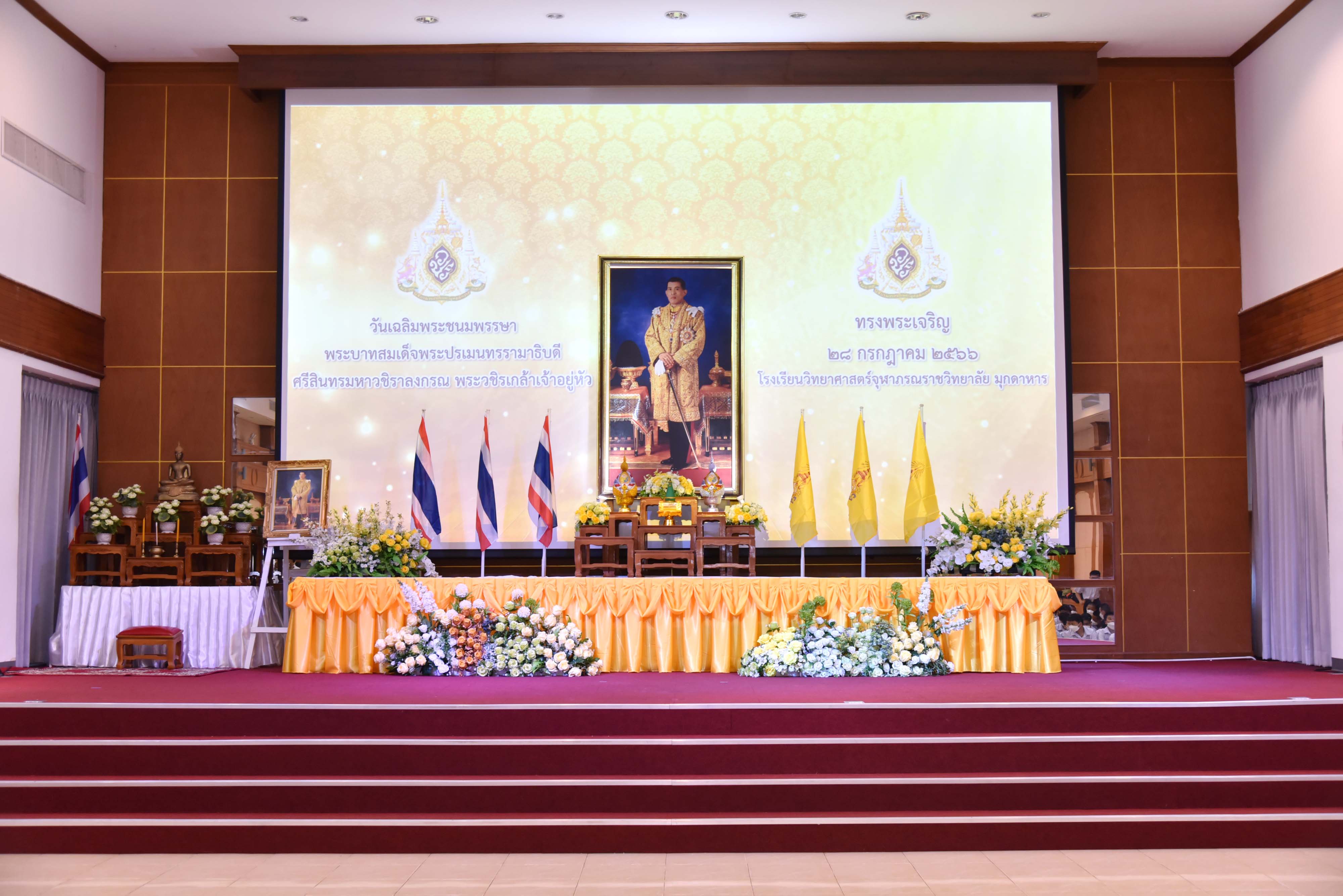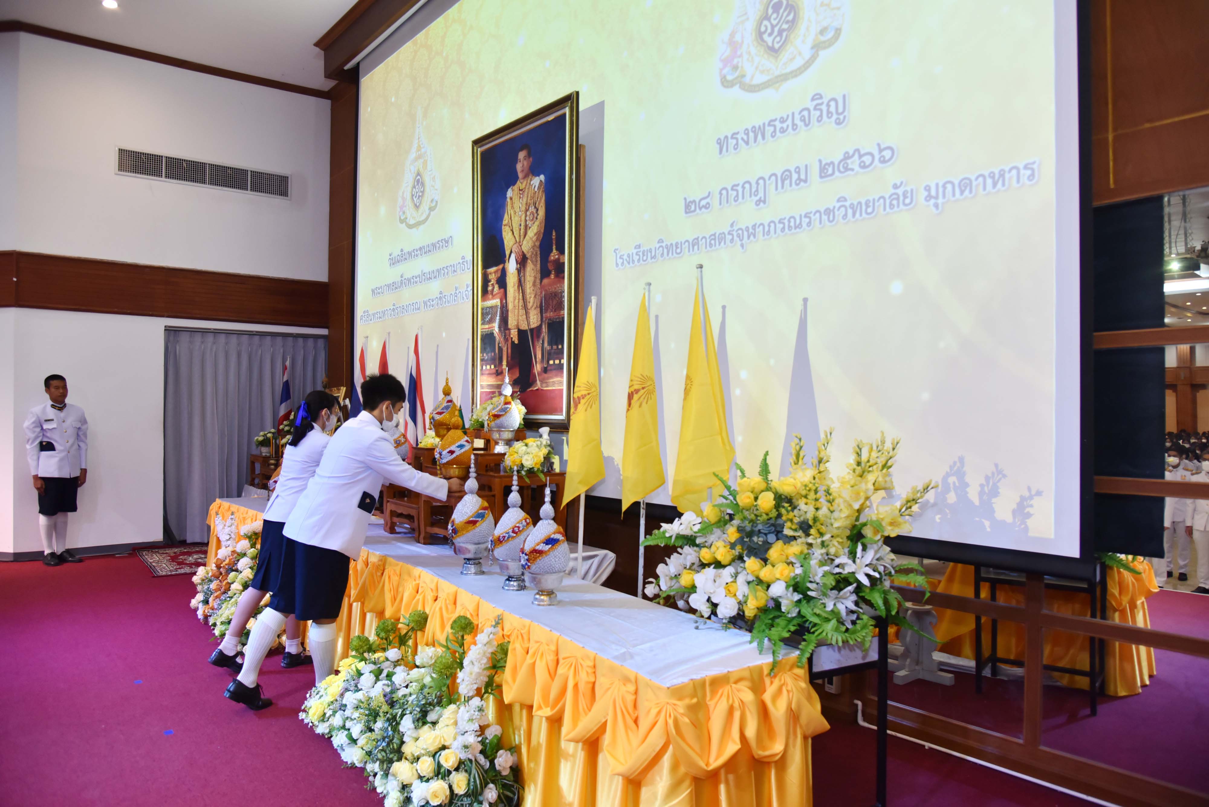 กิจกรรมวันเฉลิมพระชนมพรรษาพระบาทสมเด็จพระปรเมนทรรามาธิบดีศรีสินทรมหาวชิราลงกรณ พระวชิรเกล้าเจ้าอยู่หัว ประจำปีพุทธศักราช 2566 เพื่อเป็นการถวายความจงรักภักดีและสำนักในพระมหากรุณาธิคุณที่ทรงมีต่อประชาชนชาวไทย ซึ่งได้จัดกิจกรรมขึ้นในวันพฤหัสบดีที่ 27 กรกฎาคม 2566 เวลา 08.00 น. ณ อาคารหอประชุมโรงเรียนวิทยาศาสตร์จุฬาภรณราชวิทยาลัย มุกดาหาร