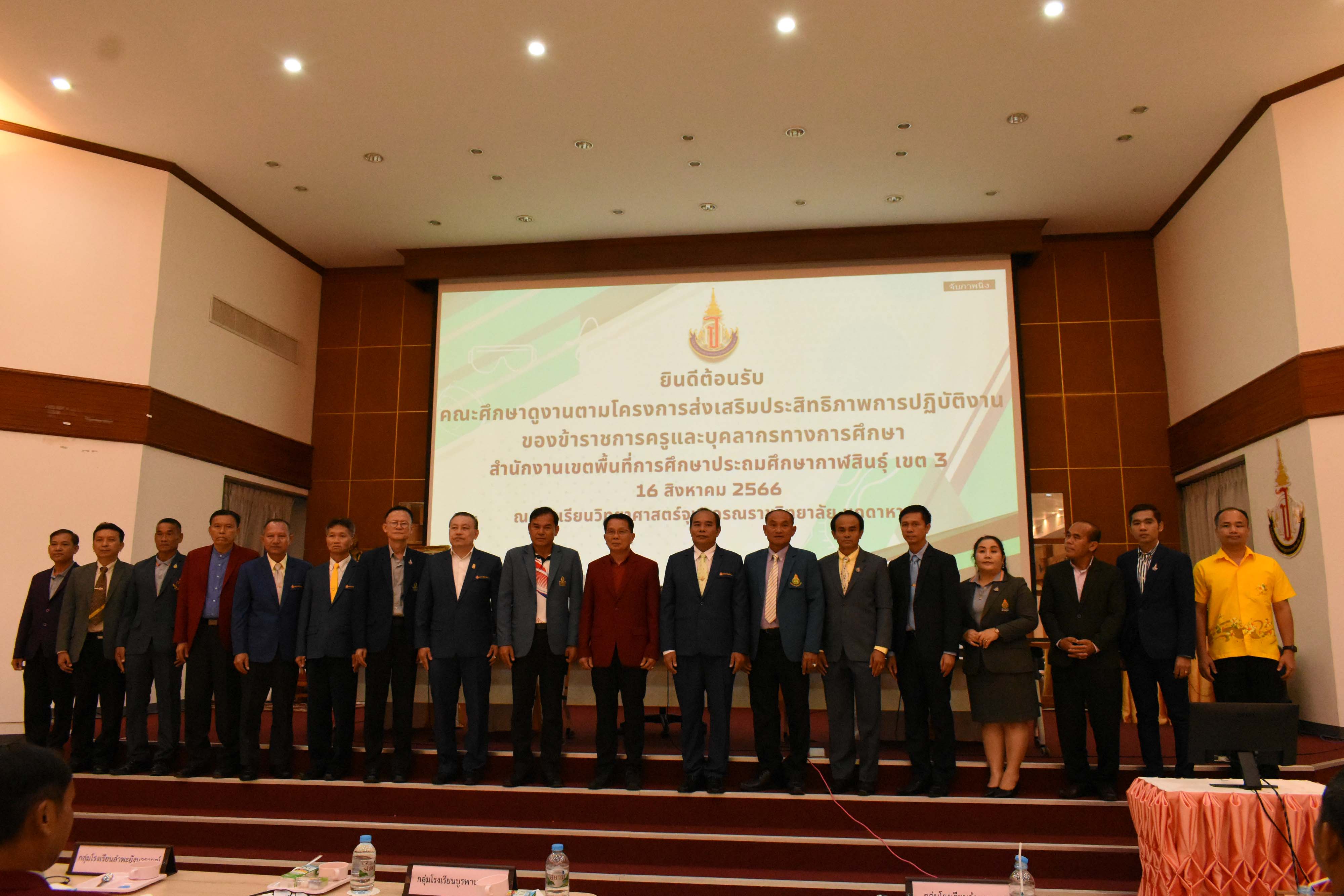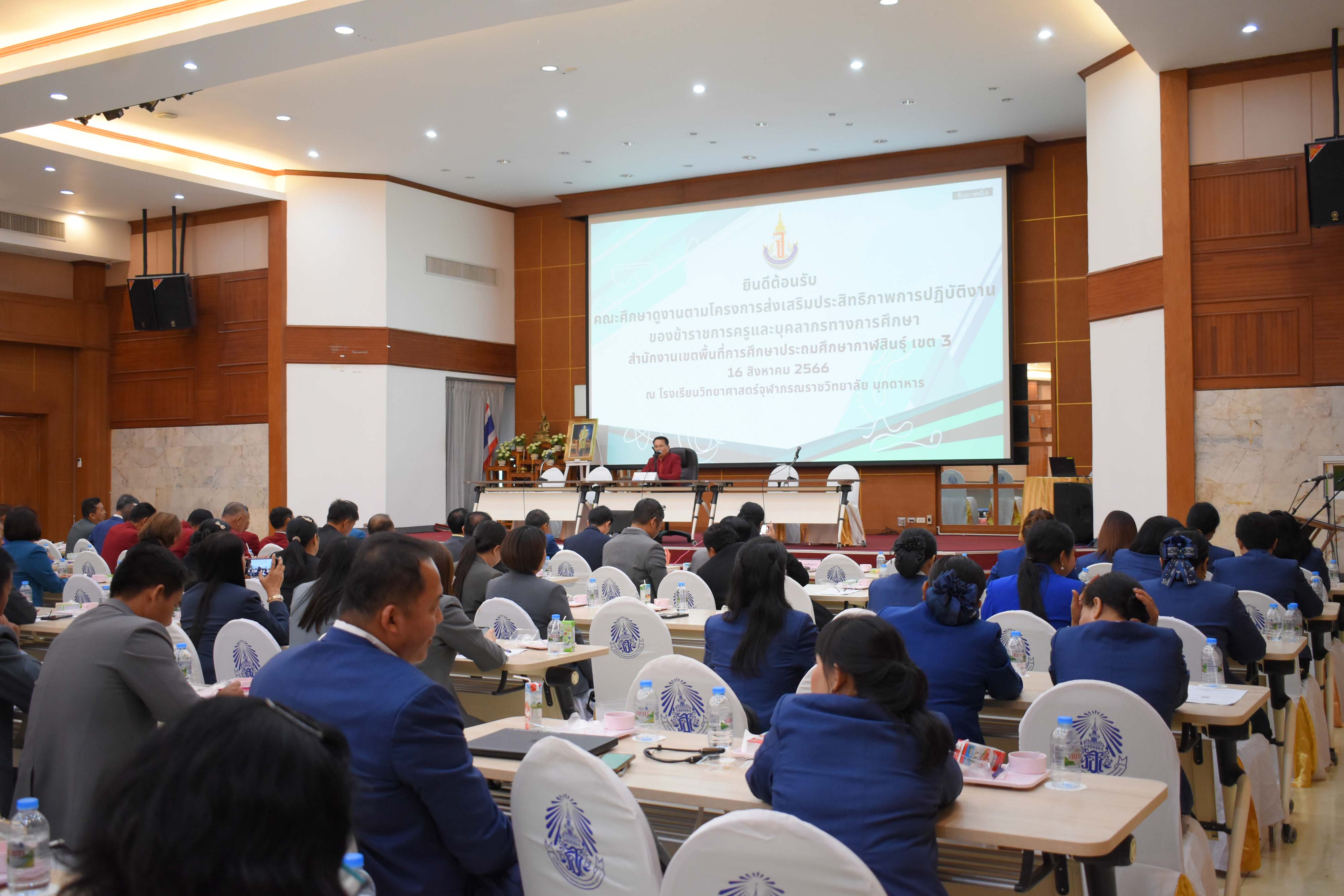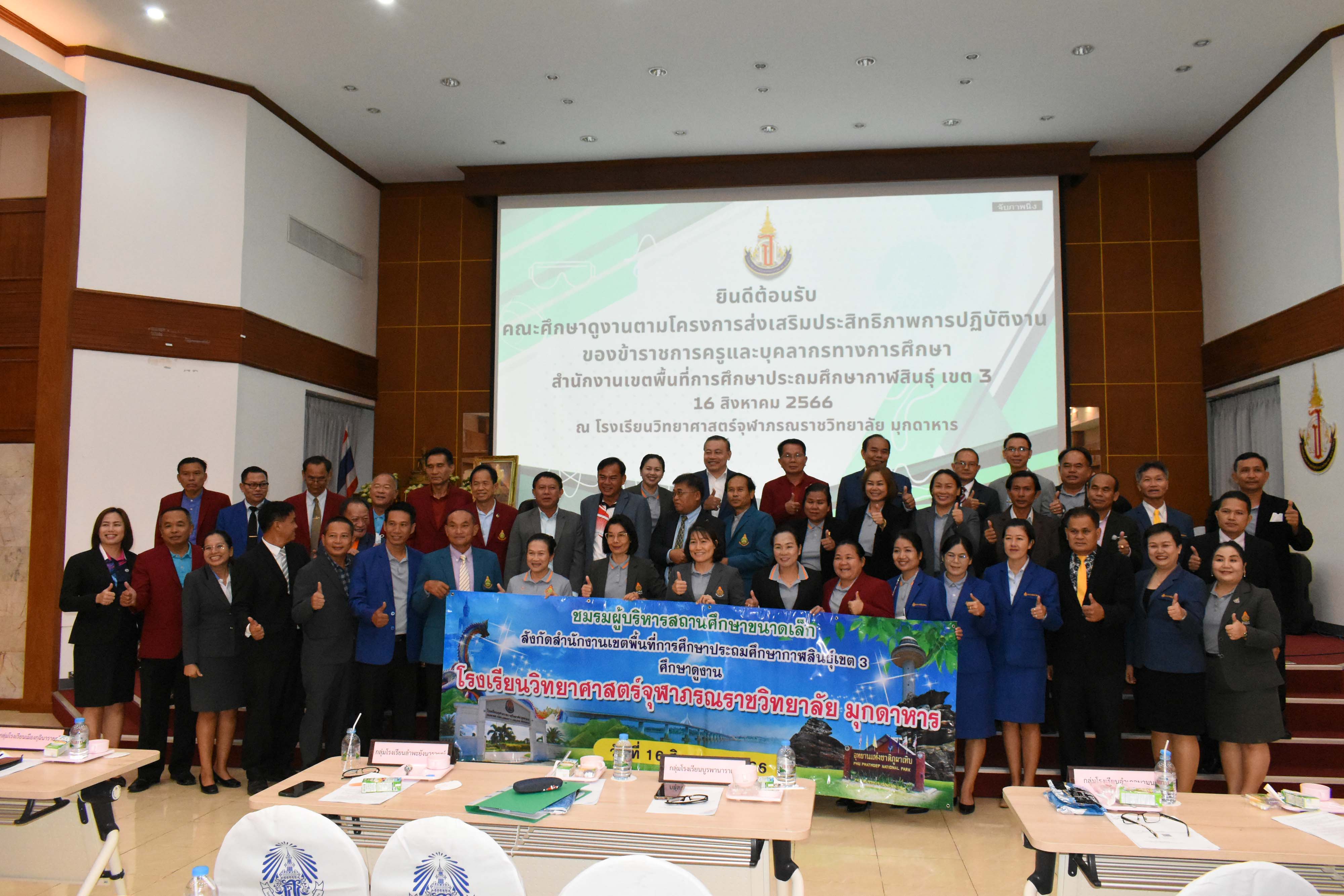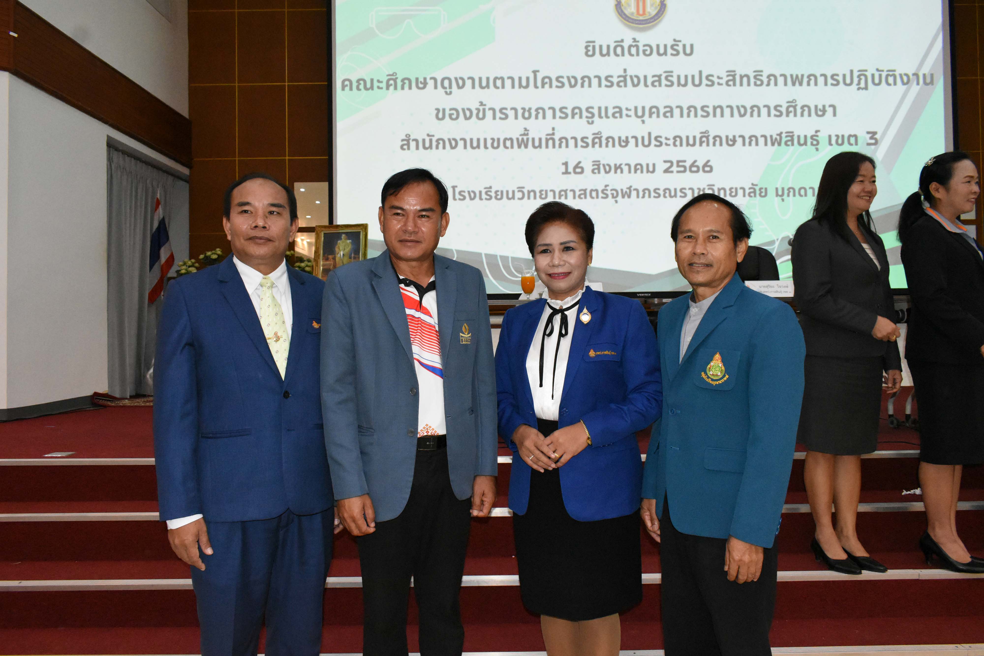 ต้อนรับคณะศึกษาดูงานตามโครงการส่งเสริมประสิทธิภาพการปฏิบัติงานของข้าราชการครูและบุคลากรทางการศึกษา สำนักงานเขตพื้นที่การศึกษาประถมศึกษากาฬสินธ์ เขต 3 ในวันที่ 16 สิงหาคม 2566 เวลา 08.00-12.00 น. ณ หอประชุมโรงเรียนวิทยาศาสตร์จุฬาภรณราชวิทยาลัย มุกดาหาร