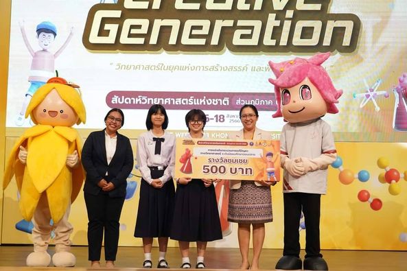 ในงานสัปดาห์วิทยาศาสตร์แห่งชาติ คณะวิทยาศาสตร์ มหาวิทยาลัยนครพนม นักเรียนที่ร่วมการแข่งขัน น.ส.กานต์สิริ สมคิด