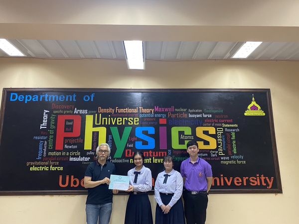 ในงานสัปดาห์วิทยาศาสตร์ คณะวิทยาศาสตร์ มหาวิทยาลัยอุบลราชธานี นักเรียนที่ร่วมการแข่งขันนายธนพงศ์ สุรางค์กุล นักเรียนชั้น ม.6, นางสาวน.ส.น่านฟ้า สายสมบัติ นักเรียนชั้น ม.6