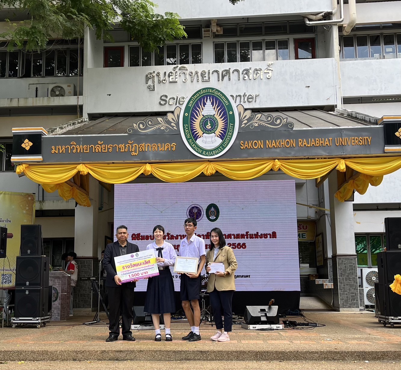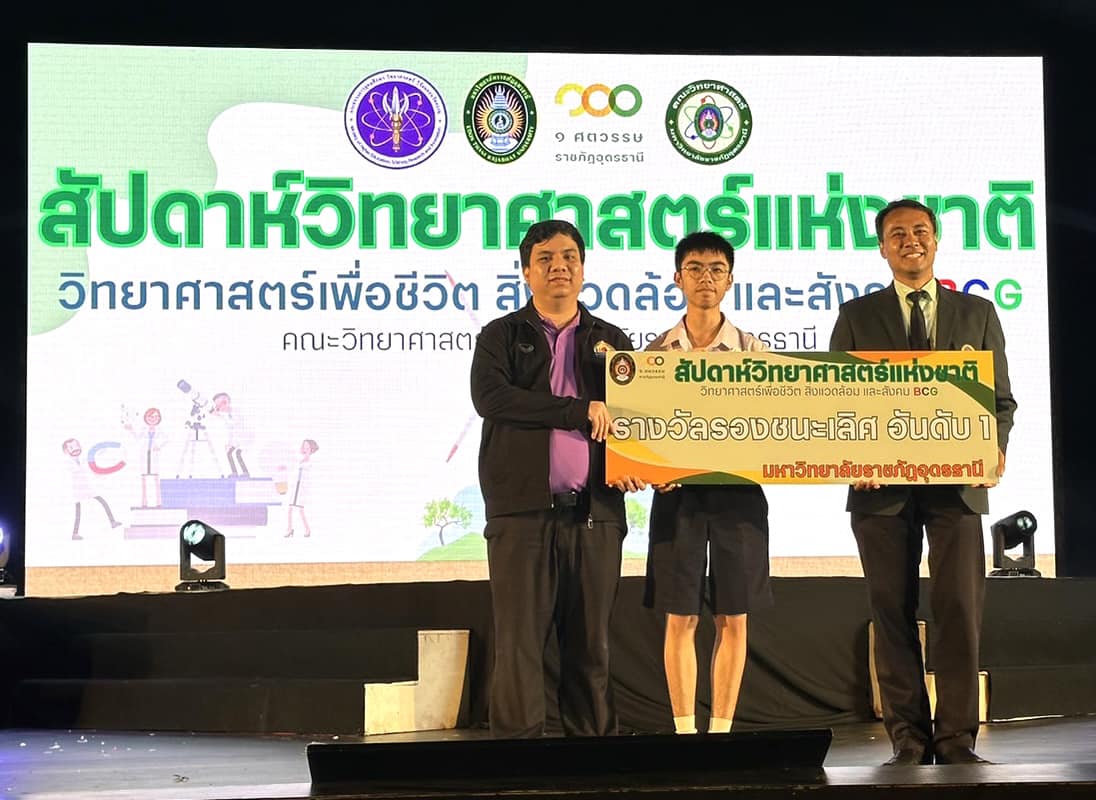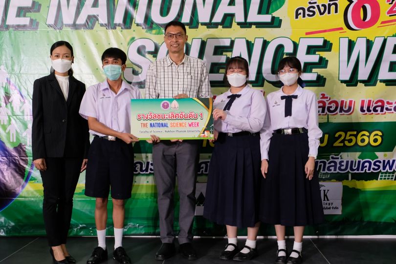ในงานสัปดาห์วิทยาศาสตร์แห่งชาติ คณะวิทยาศาสตร์ มหาวิทยาลัยนครพนม นักเรียนที่ร่วมการแข่งขัน นางสาวปวรรณประภา โสมอินทร์ ครูที่ปรึกษา นายทิชชานนท์ ระดาฤทธิ์