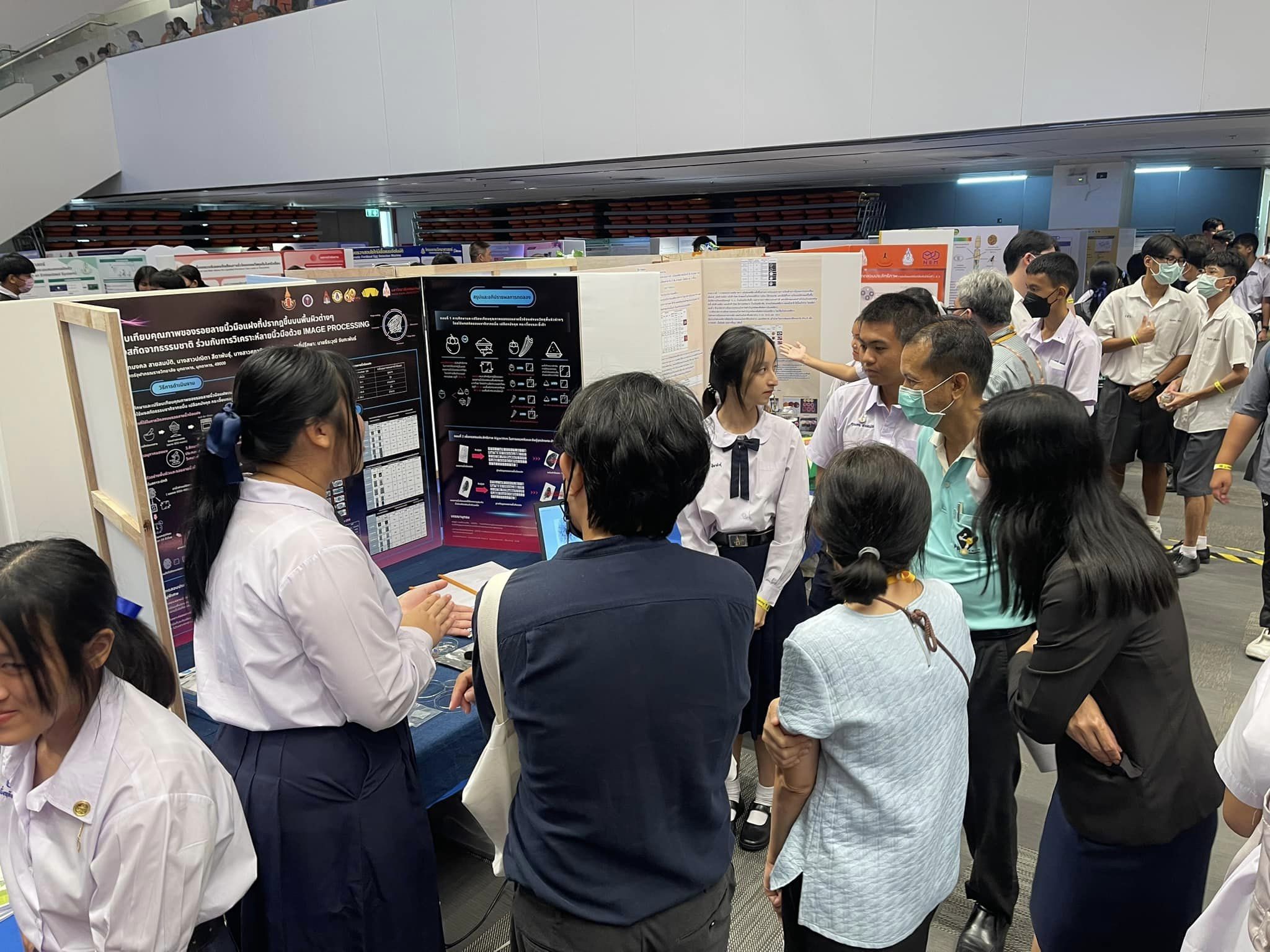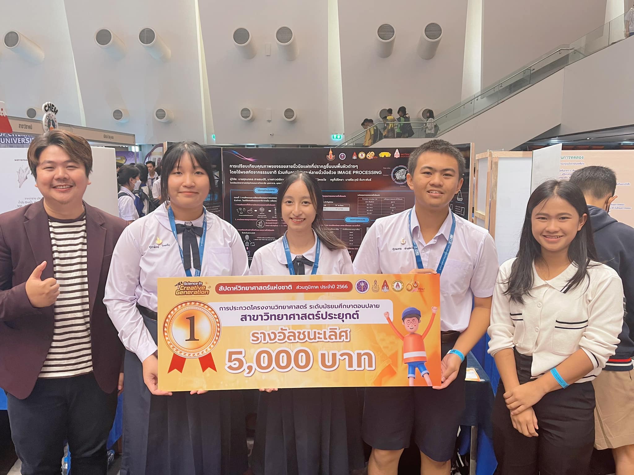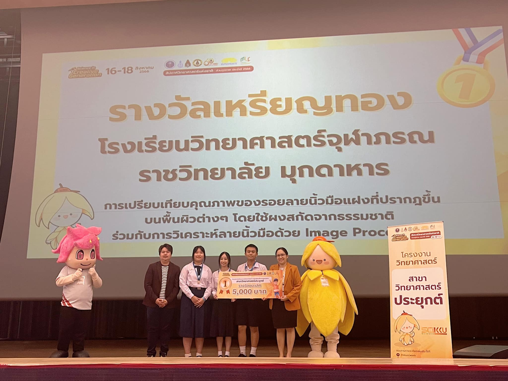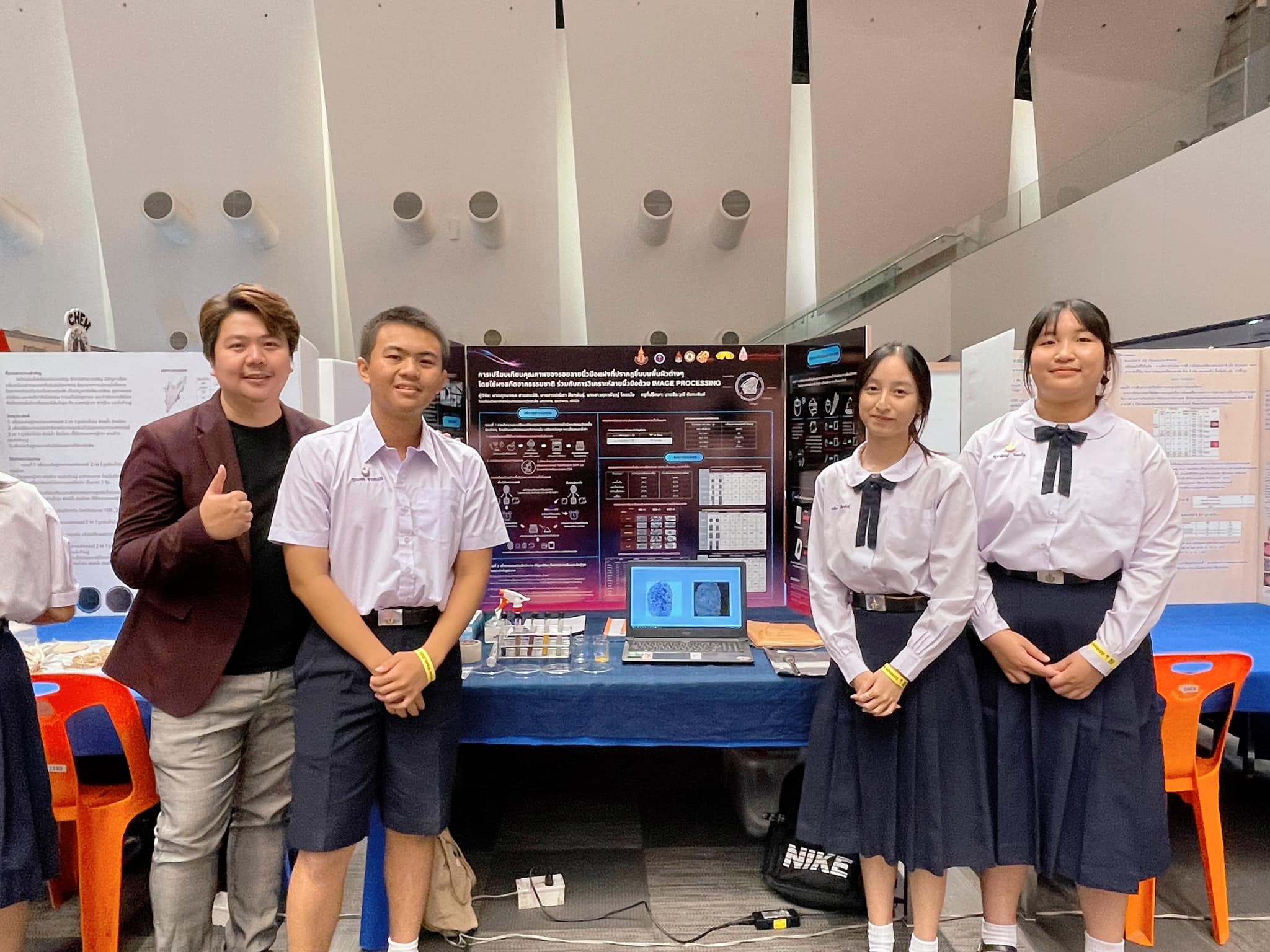การประกวดโครงงานสมาคมวิทยาศาสตร์แห่งประเทศไทย เนื่องในสัปดาห์วันวิทยาศาสตร์ คณะวิทยาศาสตร์ มหาวิทยาลัยขอนแก่น โครงงานเรื่อง การเปรียบเทียบคุณภาพของรอยลายนิ้วมือแฝงที่ปรากฏขึ้นบนพื้นผิวต่างๆ โดยใช้ผงสกัดจากธรรมชาติ ร่วมกับการวิเคราะห์ลายนิ้วมือด้วย Image Processing จัดทำโดย นายศุภมงคล สายสมบัติ, นางสาวปณิตา สีดาพันธุ์, นางสาวศุภาพิชญ์ โคตรโย