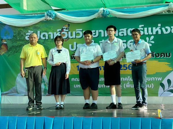ในงานสัปดาห์วิทยาศาสตร์แห่งชาติ คณะวิทยาศาสตร์ มหาวิทยาลัยนครพนม นักเรียนที่ร่วมการแข่งขัน น.ส.ธัญรดา แสงพิศาล นักเรียนชั้น ม.6, น.ส.กุลปภา จิรัปปภา นักเรียนชั้น ม.6, นายจารุพัจน์ ประภาแก้ว นักเรียนชั้น ม.6