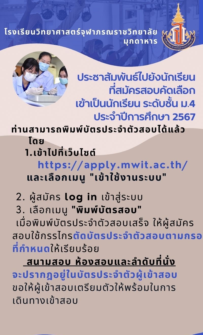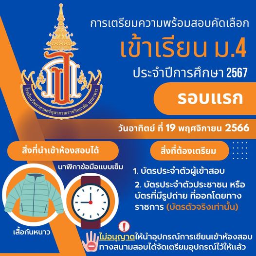 การเตรียมความพร้อมเพื่อเข้าสอบคัดเลือกเข้าเป็นนักเรียนชั้น ม.4 ปีการศึกษา 2567(รอบแรก)