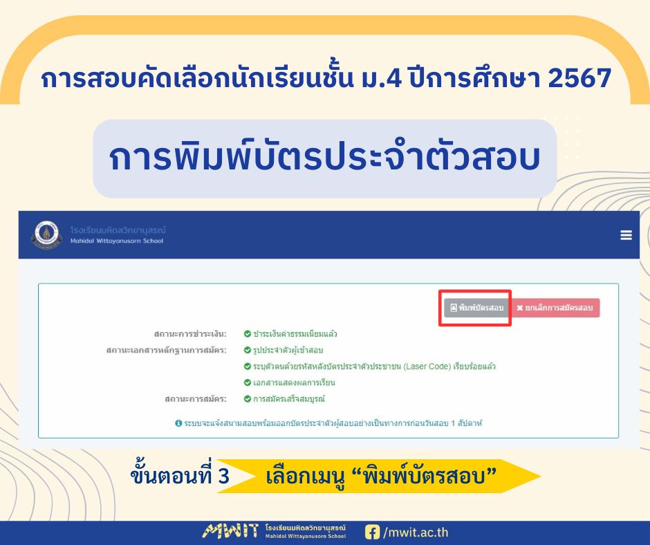 การพิมพ์บัตรประจำตัวสอบ คลิกที่นี่>>