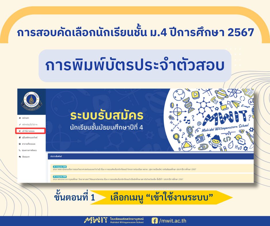การเตรียมความพร้อมเพื่อสอบคัดเลือกเข้าเป็นนักเรียนชั้น ม.4 ปีการศึกษา 2567